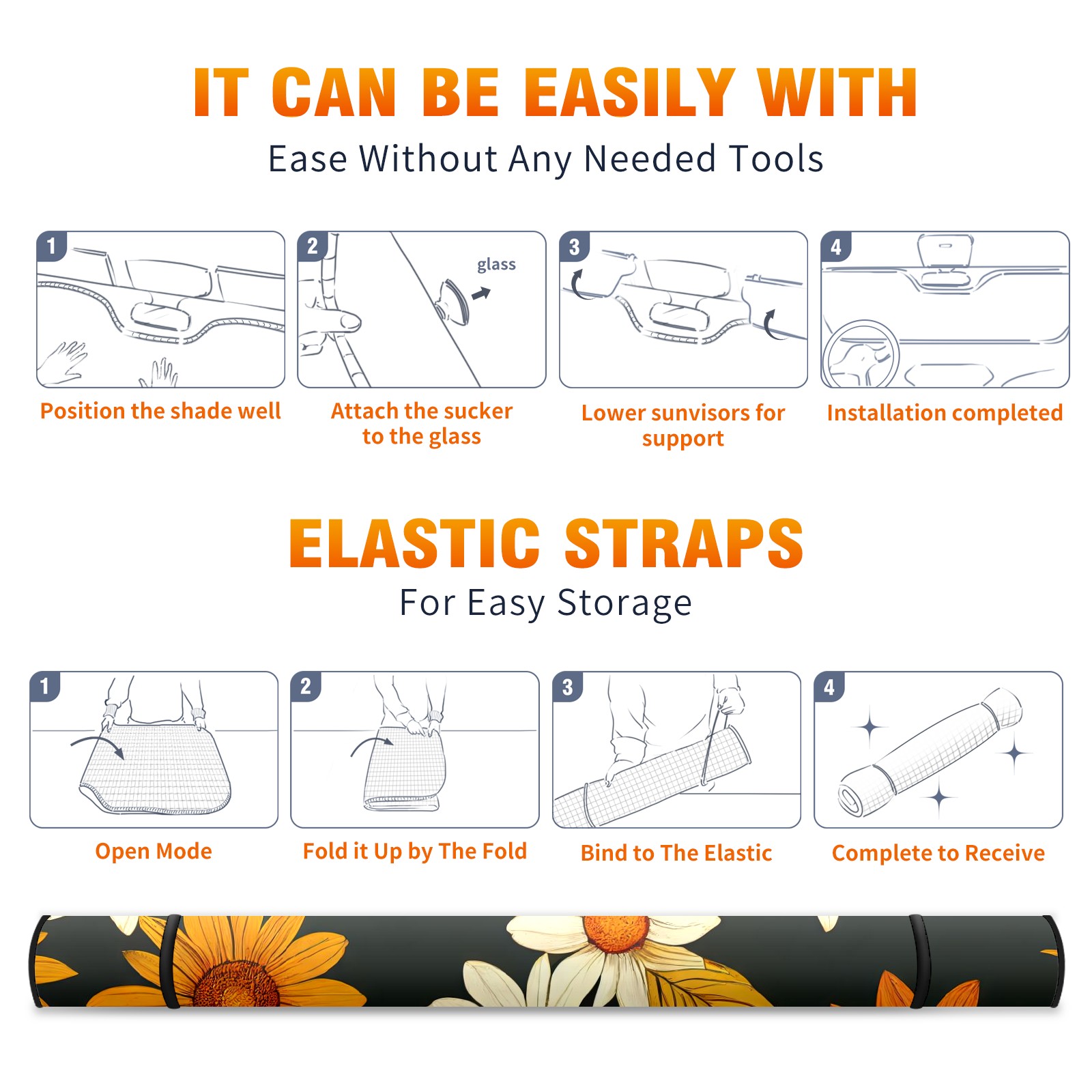 Car Windshield Sun Shade For Front Window Flower Romantic Foldable Vehicle Windshield Car Sun Visor Covers Automotive Window Protector Car Camping Privacy Sun Blocker