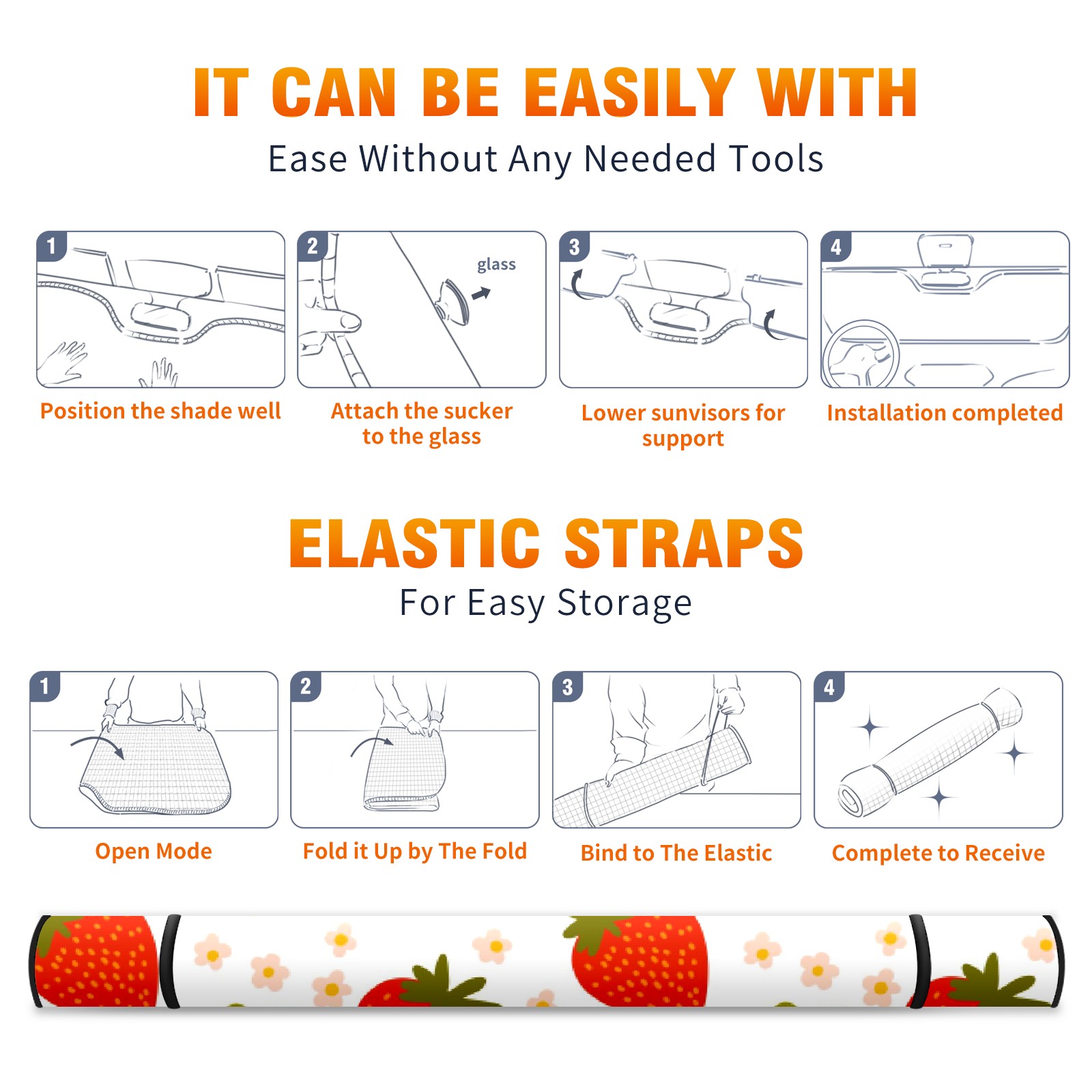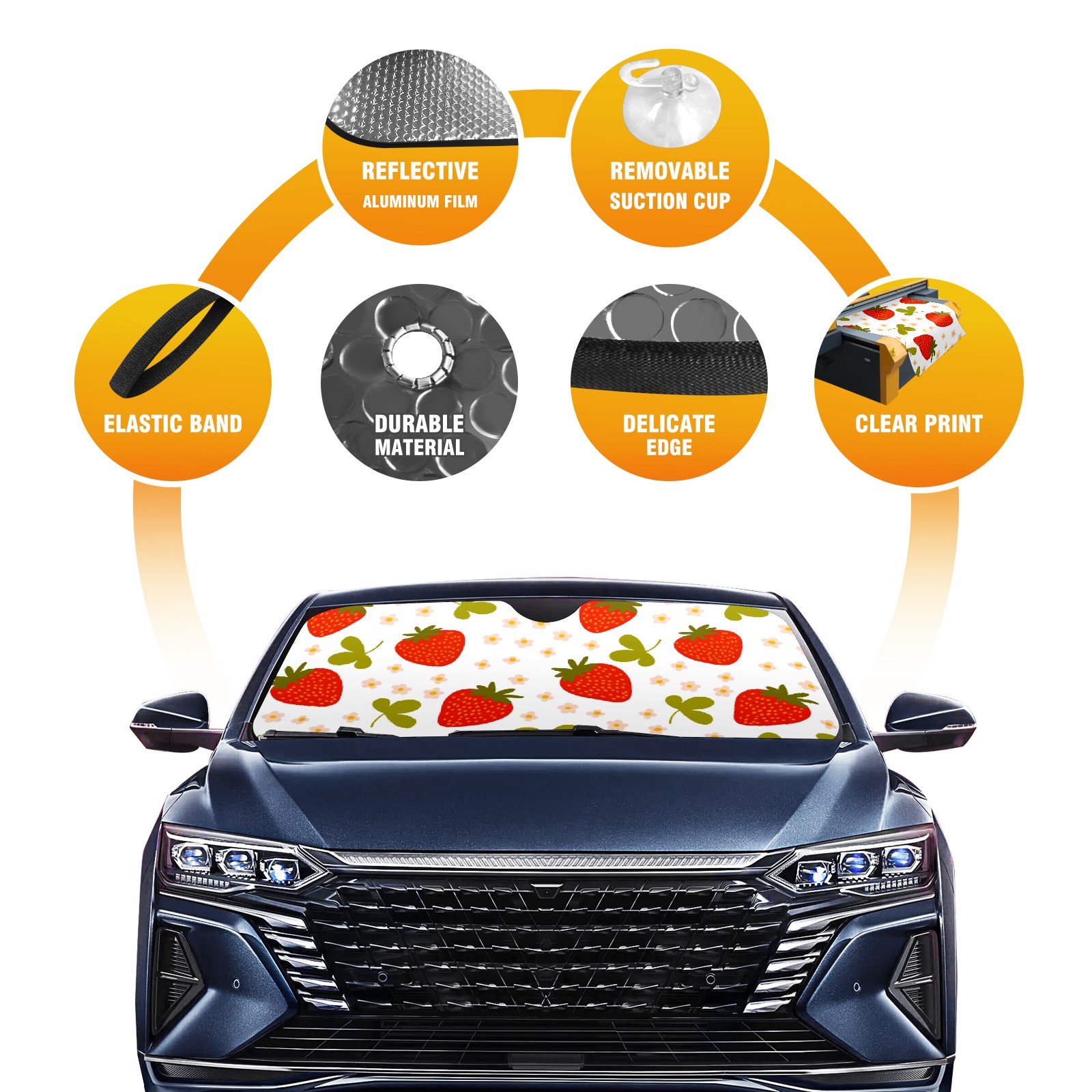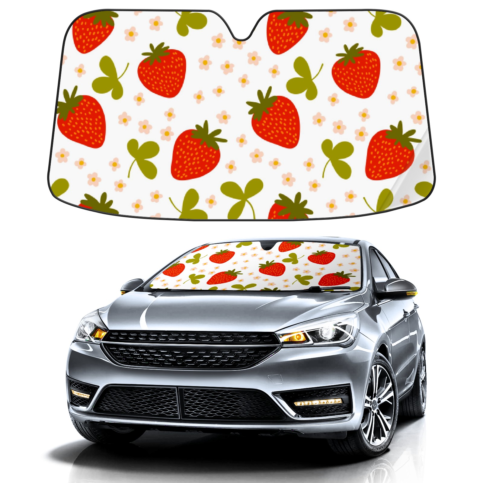 Car Windshield Sun Shade For Front Window Sweet Red Fruit Berry Pattern Foldable Vehicle Windshield Car Sun Visor Covers Automotive Window Protector Car Camping Privacy Sun Blocker