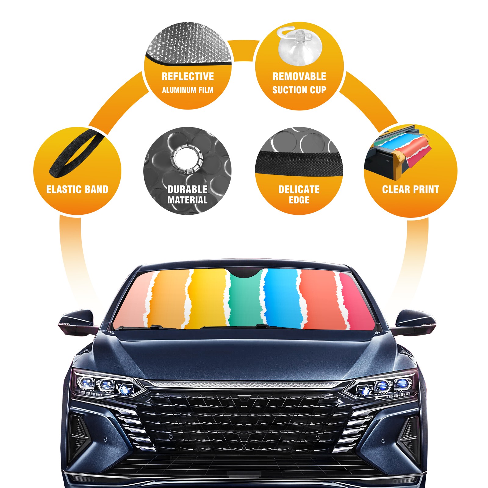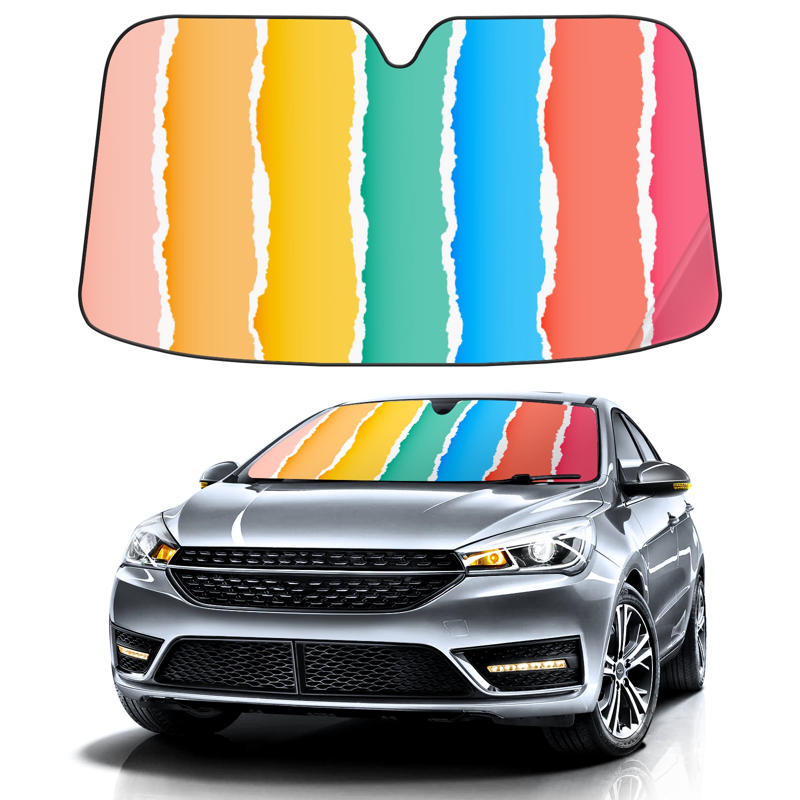 Car Windshield Sun Shade For Front Window Rainbow Colorful Background Foldable Vehicle Windshield Car Sun Visor Covers Automotive Window Protector Car Camping Privacy Sun Blocker