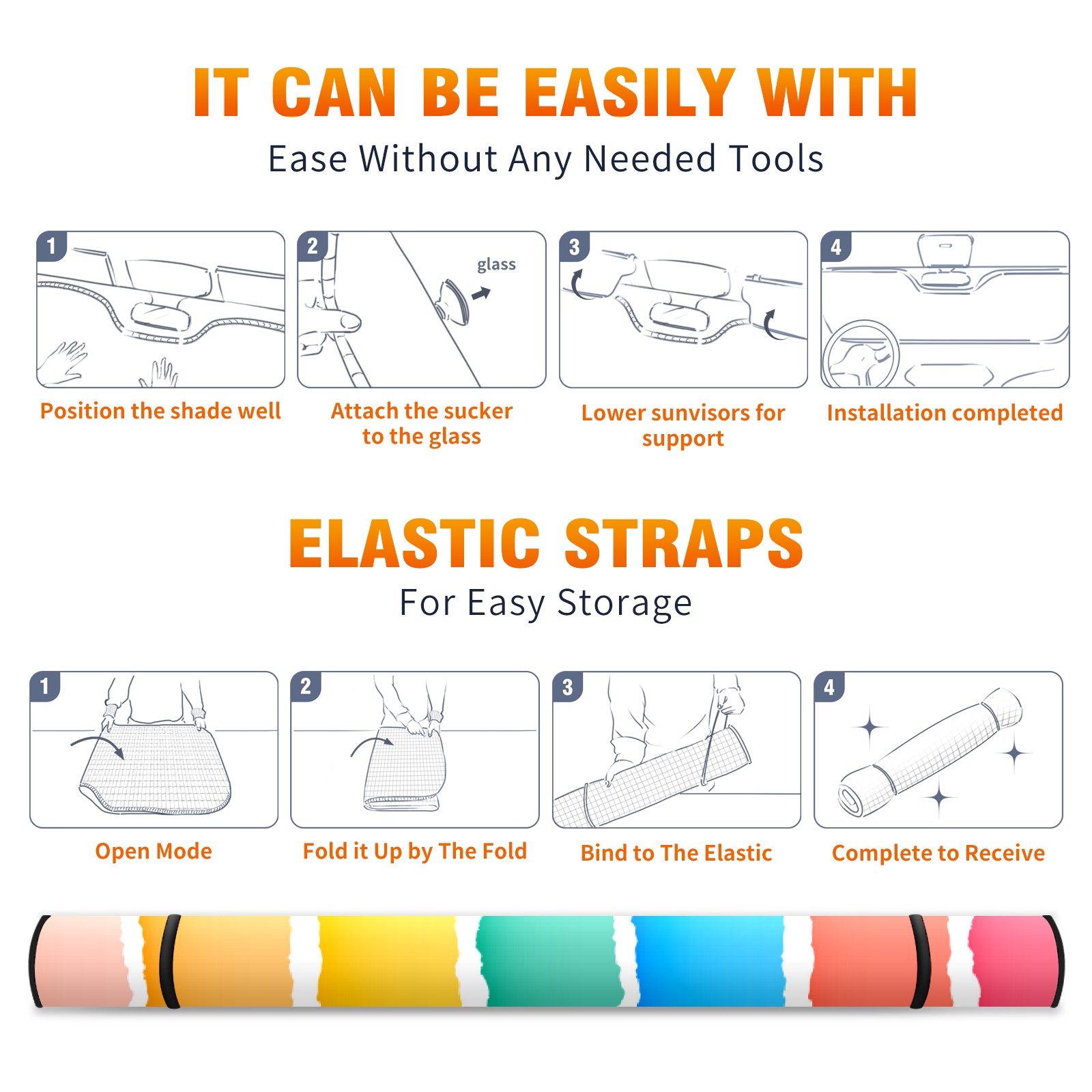 • Diameter /Size 63"L x 33.5"W Made from excellent materials which makes it sturdy and protects the car from the sun. Easy to use and pack. Makes the interior of the car cooler.You can easily stash the sunshade in the storage bag or store long term.It open and closes easy. Also the leather storage bag is durable and easy to put the umbrella back into.This windshield sunshade provides complete coverage and keeps your car interior cool under direct sun. It is easy to open and position under the windshield and around the rear-view mirror. Makes Your Car Easy To Identify, Perfect For Finding Your Car In Crowded Parking Lots And Garages.Great Choice: It Is A Great Gift For Dad, Boyfriend, Brother, Brother And Uncle, Friends, Classmates, Family And So On. Notice: Due To Difference Computer Monitors, The Color Maybe Slightly Different From Picture. As Different Measurement Methods, Measurement Data Will Float Within 2%.I Hope You Understand. If You Have Any Question About The Item Please Do Not Hesitate To Contact Us Immediately And We Will Give You A Satisfactory Reply Within 24 Hours.