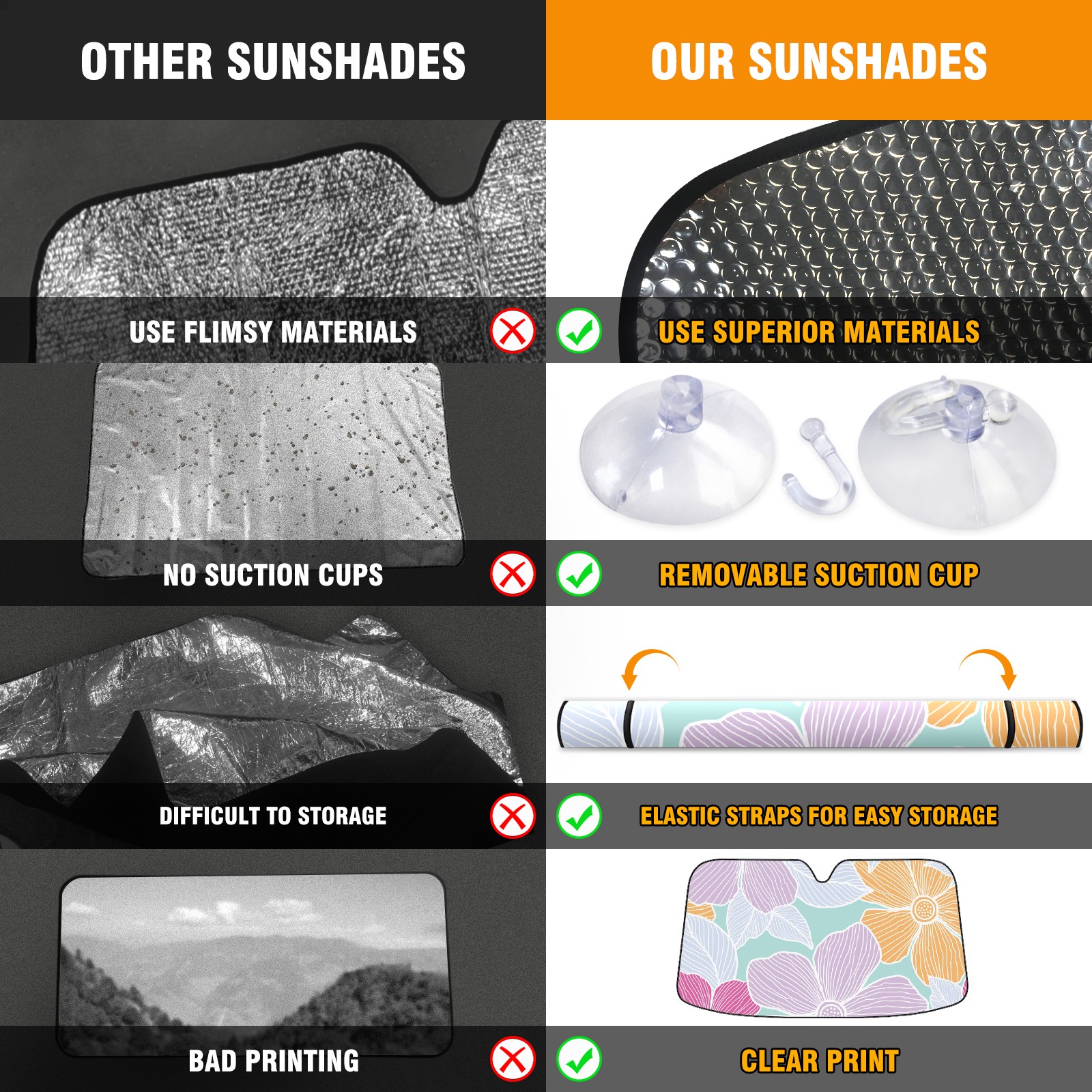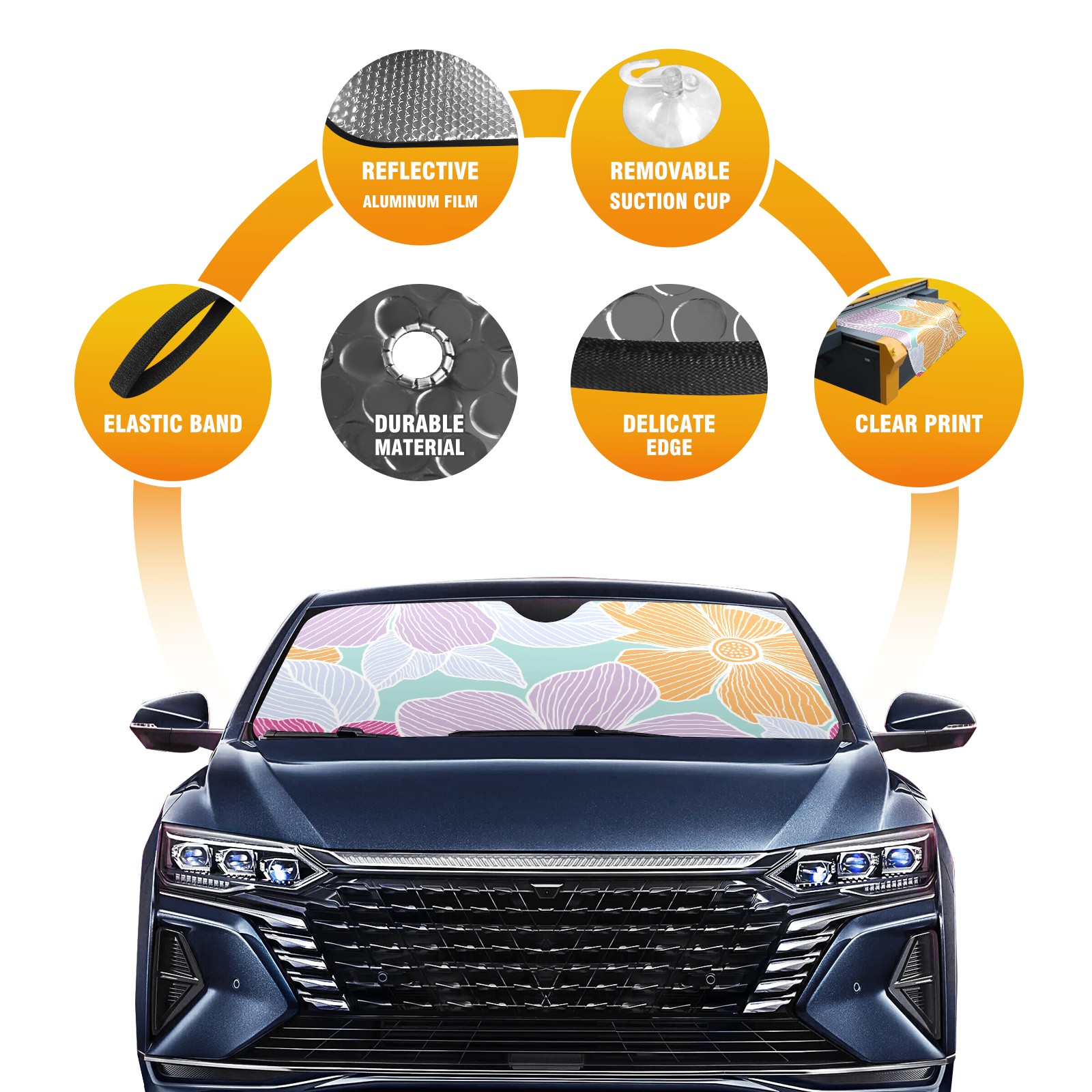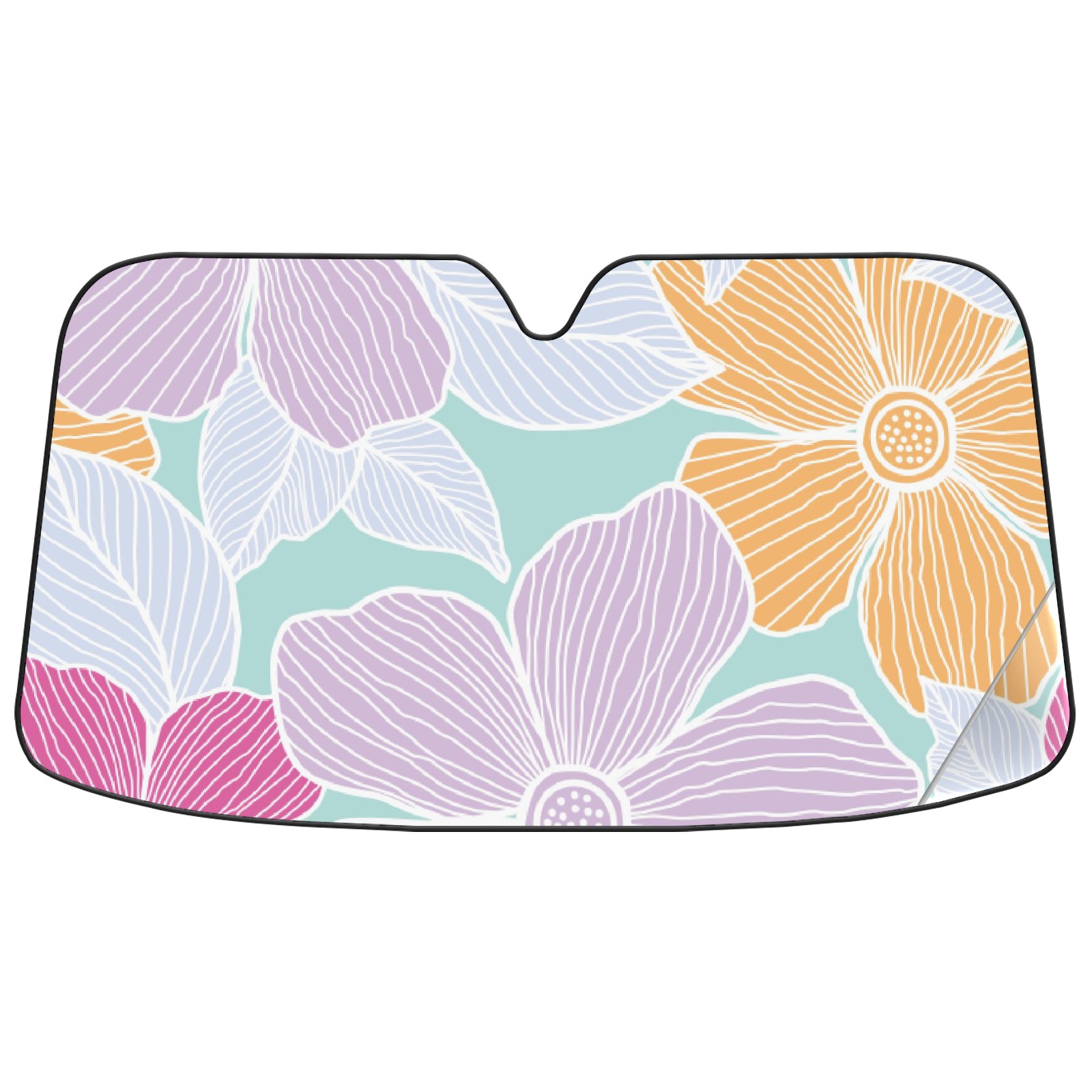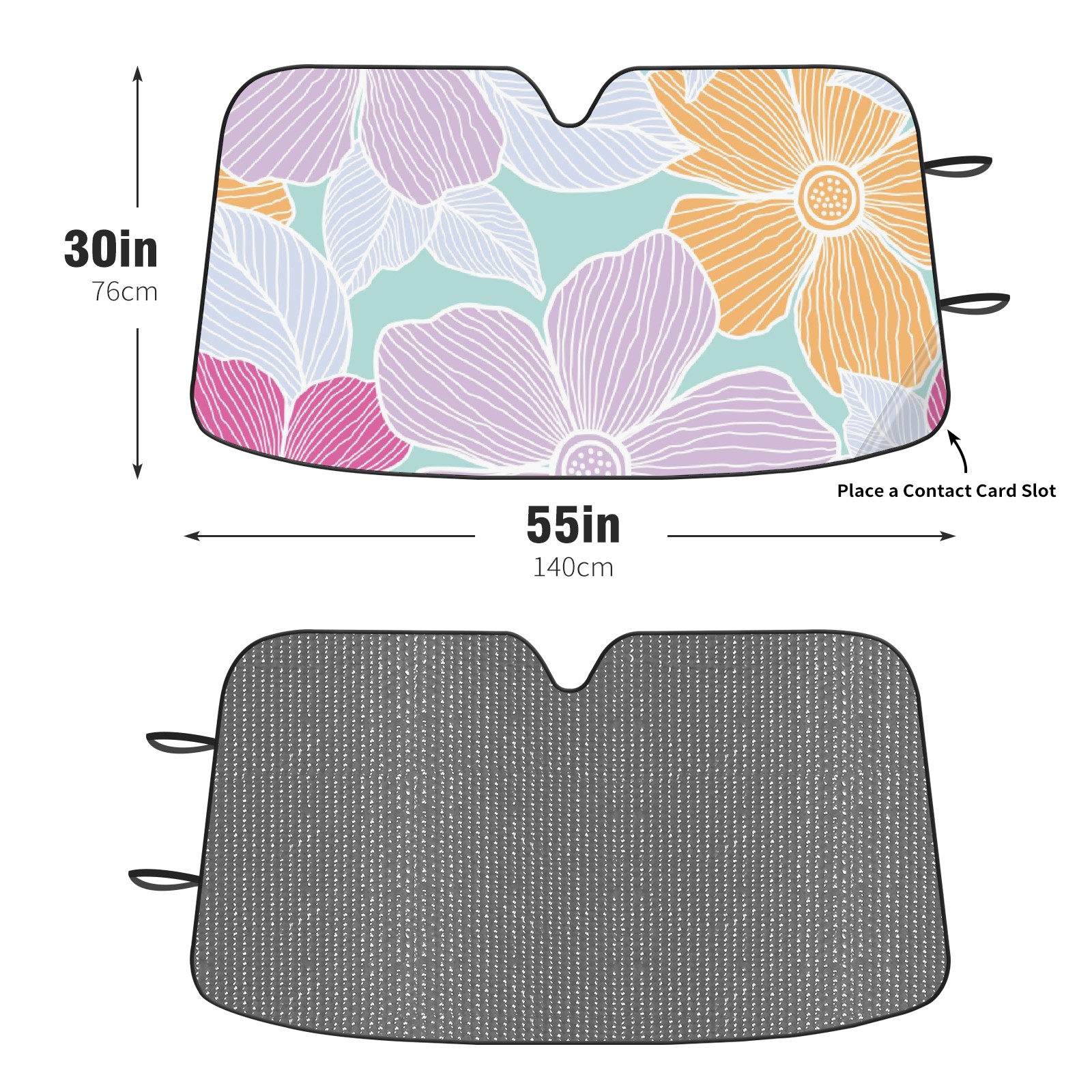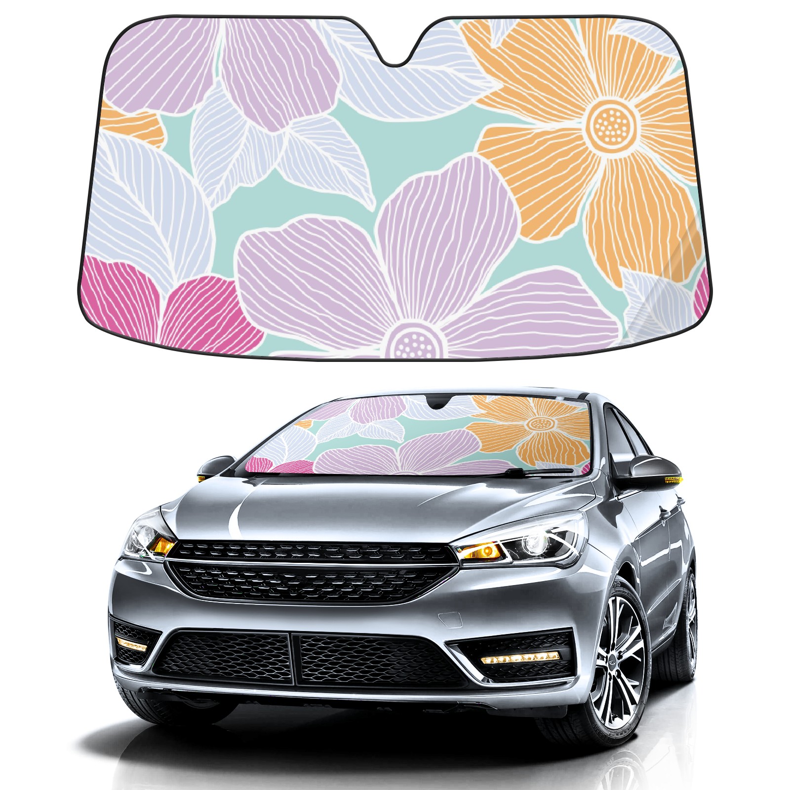 Car Windshield Sun Shade For Front Window Purple Flowers Pattern Foldable Vehicle Windshield Car Sun Visor Covers Automotive Window Protector Car Camping Privacy Sun Blocker