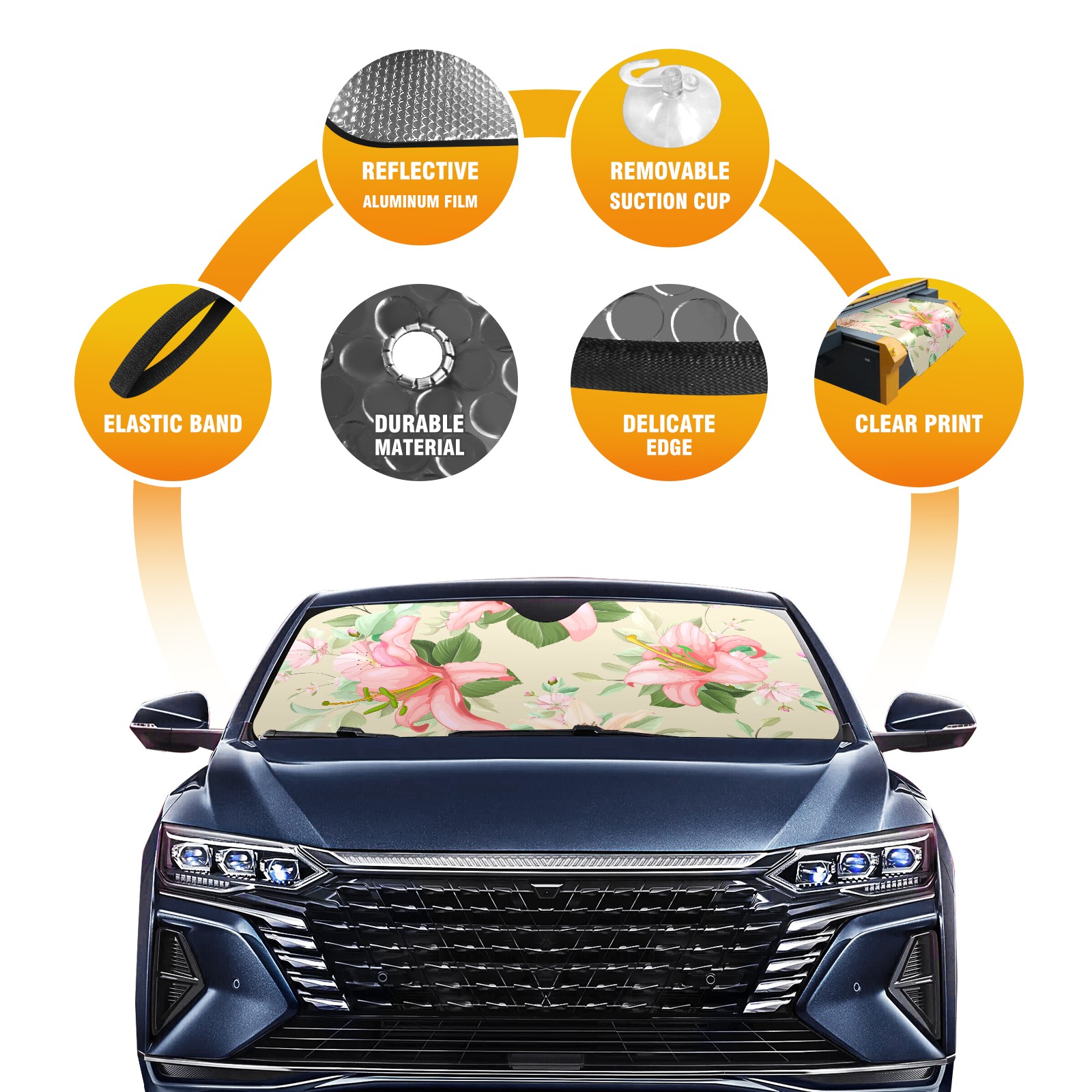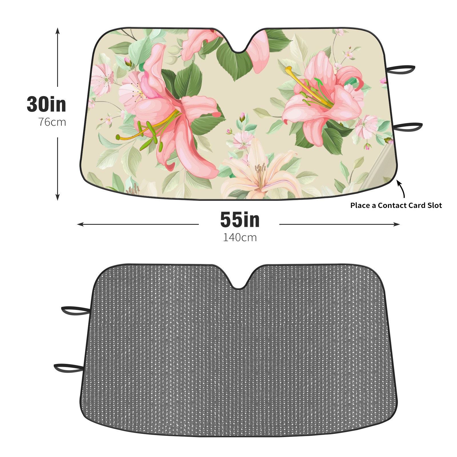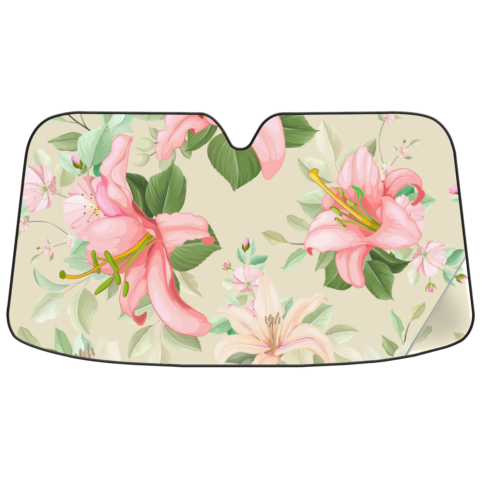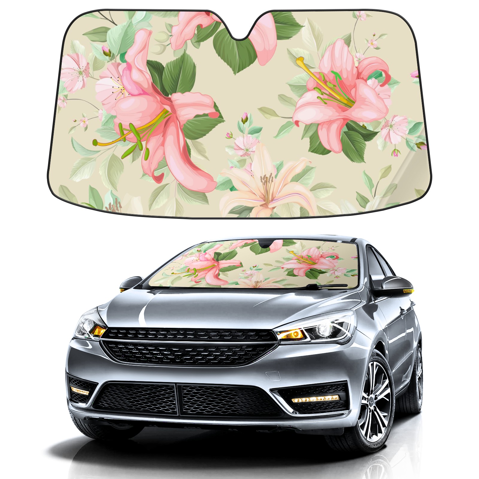 Car Windshield Sun Shade For Front Window Lily Floral Leaves Pattern Foldable Vehicle Windshield Car Sun Visor Covers Automotive Window Protector Car Camping Privacy Sun Blocker