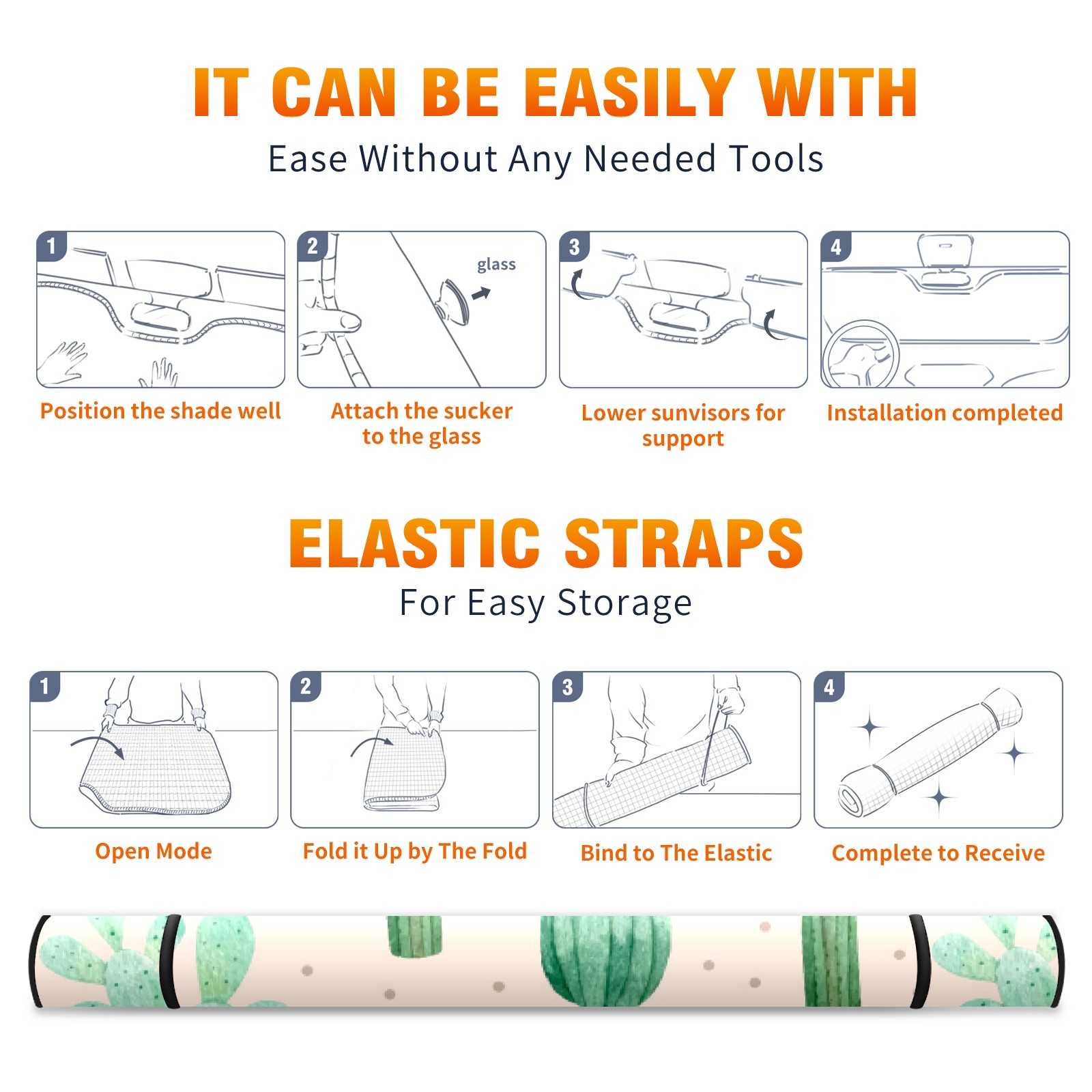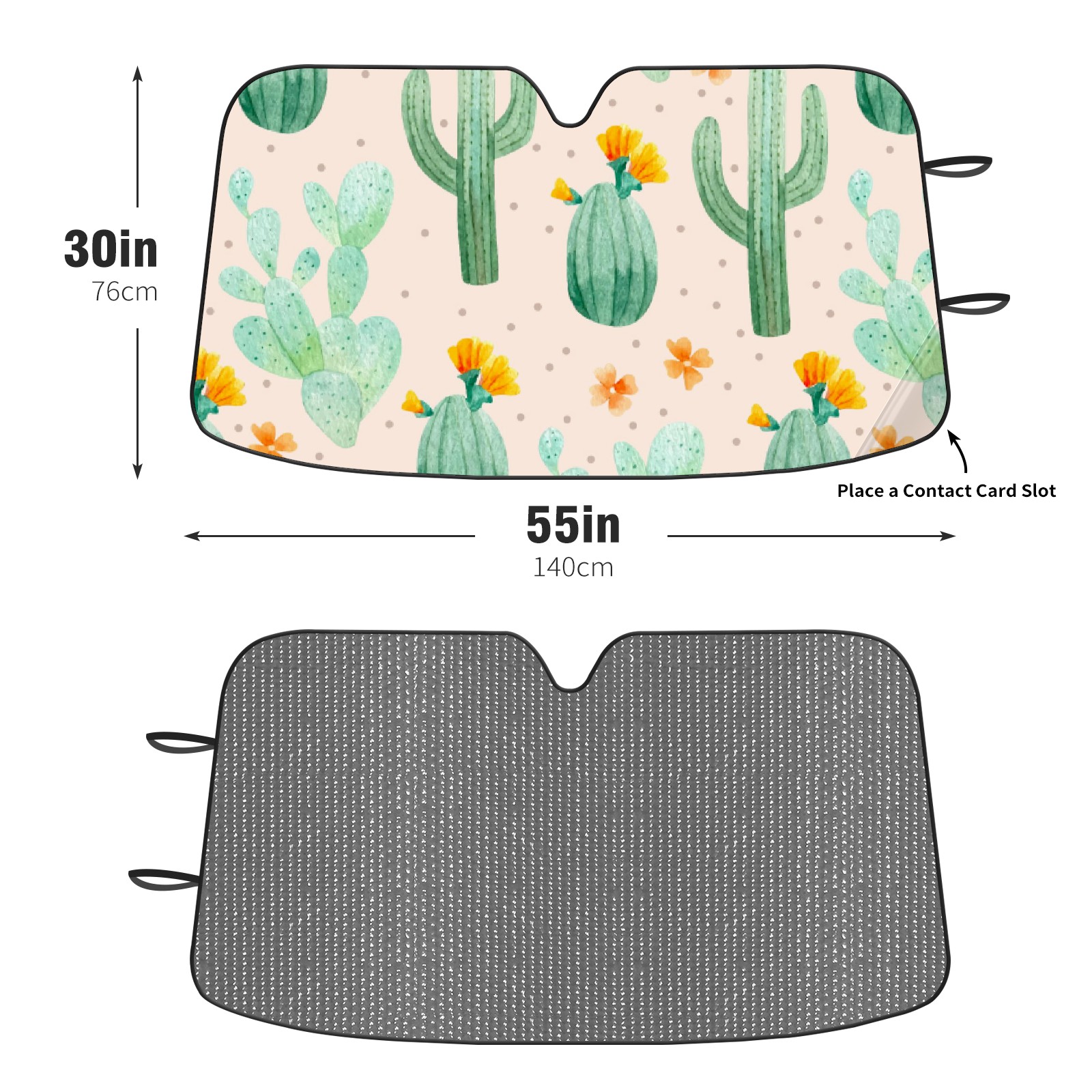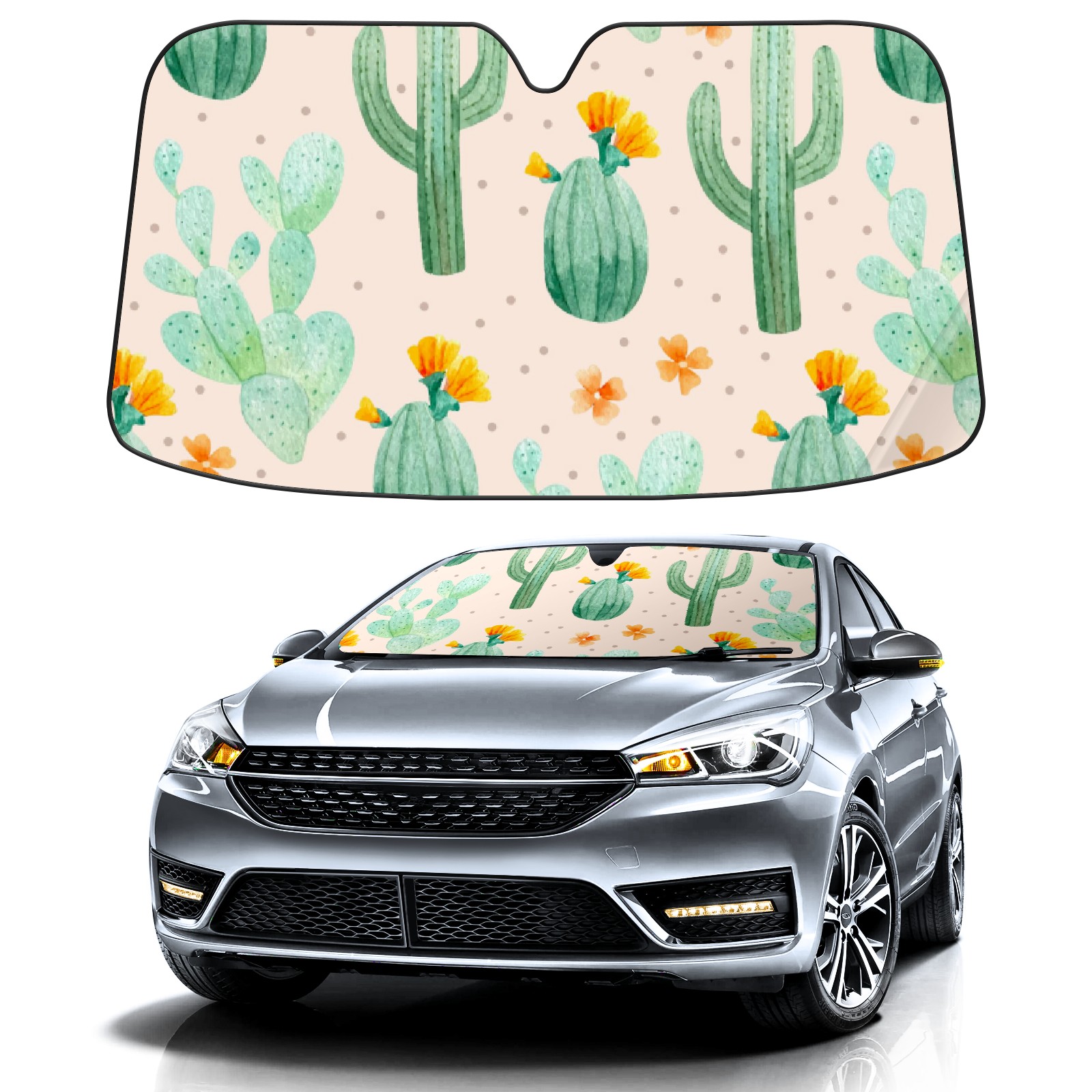 Car Windshield Sun Shade For Front Window Cartoon Cactus Plants Pattern Foldable Vehicle Windshield Car Sun Visor Covers Automotive Window Protector Car Camping Privacy Sun Blocker