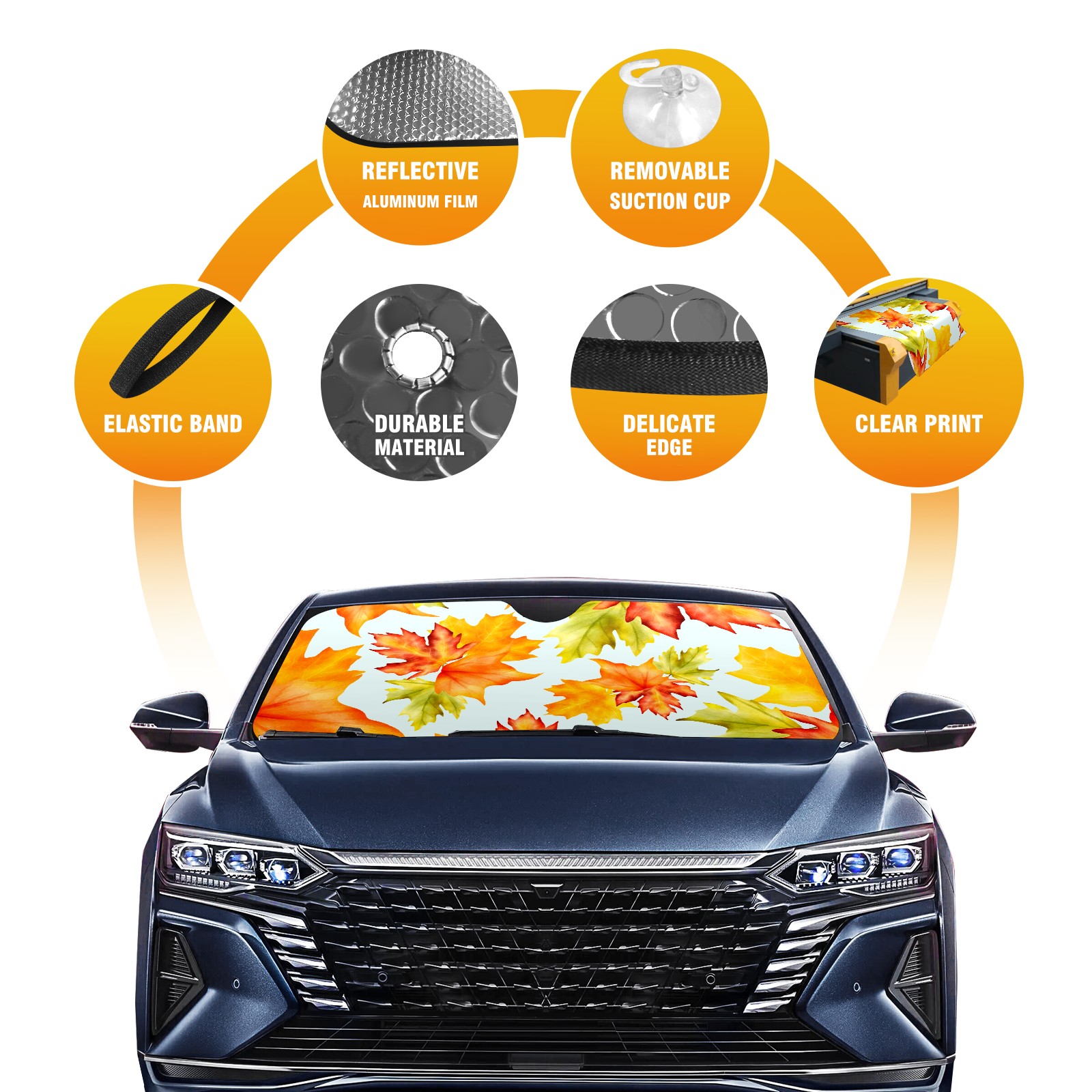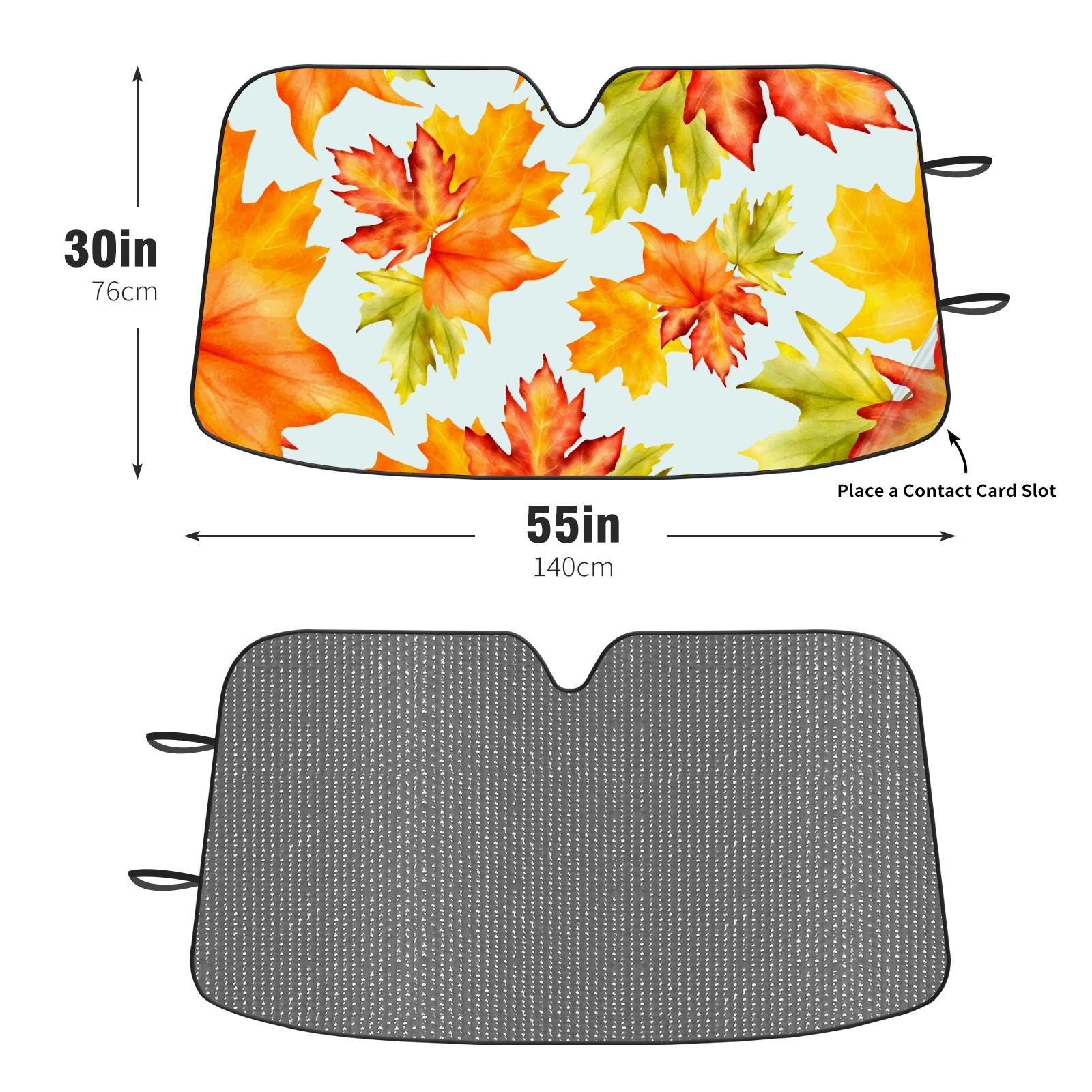 Diameter /Size 63"L x 33.5"W Made from excellent materials which makes it sturdy and protects the car from the sun. Easy to use and pack. Makes the interior of the car cooler.You can easily stash the sunshade in the storage bag or store long term.It open and closes easy. Also the leather storage bag is durable and easy to put the umbrella back into.This windshield sunshade provides complete coverage and keeps your car interior cool under direct sun. It is easy to open and position under the windshield and around the rear-view mirror. Makes Your Car Easy To Identify, Perfect For Finding Your Car In Crowded Parking Lots And Garages.Great Choice: It Is A Great Gift For Dad, Boyfriend, Brother, Brother And Uncle, Friends, Classmates, Family And So On. Notice: Due To Difference Computer Monitors, The Color Maybe Slightly Different From Picture. As Different Measurement Methods, Measurement Data Will Float Within 2%.I Hope You Understand. If You Have Any Question About The Item Please Do Not Hesitate To Contact Us Immediately And We Will Give You A Satisfactory Reply Within 24 Hours.
