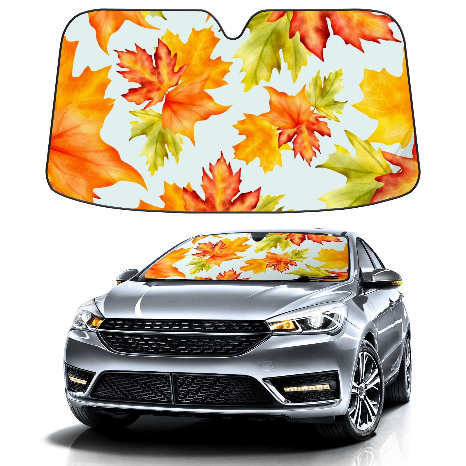 Car Windshield Sun Shade For Front Window Beautiful Watercolor Maple Leaves Pattern Foldable Vehicle Windshield Car Sun Visor Covers Automotive Window Protector Car Camping Privacy Sun Blocker