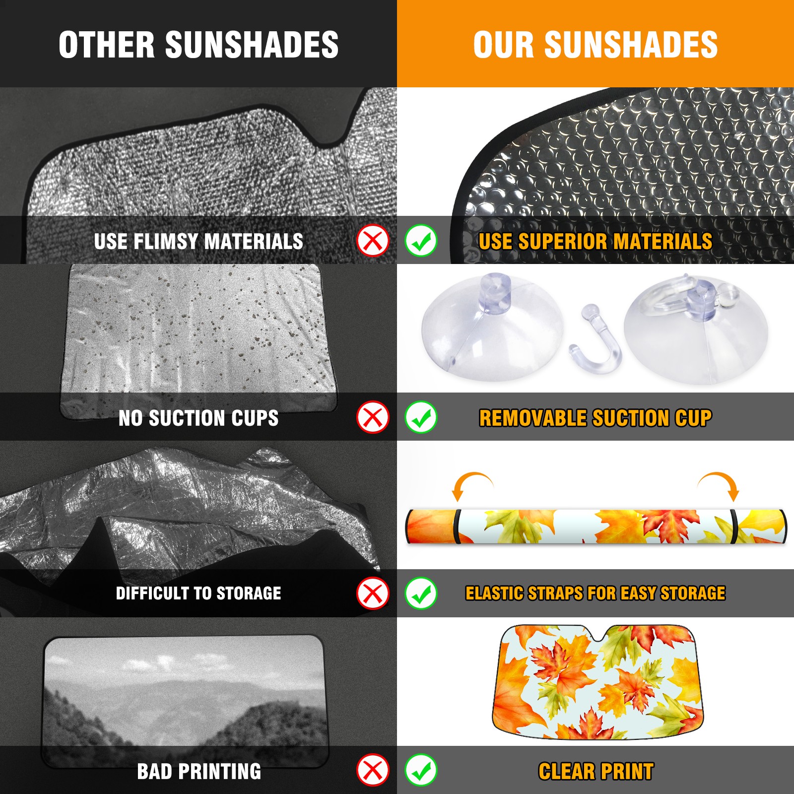 • Diameter /Size 63"L x 33.5"W Made from excellent materials which makes it sturdy and protects the car from the sun. Easy to use and pack. Makes the interior of the car cooler.You can easily stash the sunshade in the storage bag or store long term.It open and closes easy. Also the leather storage bag is durable and easy to put the umbrella back into.This windshield sunshade provides complete coverage and keeps your car interior cool under direct sun. It is easy to open and position under the windshield and around the rear-view mirror. Makes Your Car Easy To Identify, Perfect For Finding Your Car In Crowded Parking Lots And Garages.Great Choice: It Is A Great Gift For Dad, Boyfriend, Brother, Brother And Uncle, Friends, Classmates, Family And So On. Notice: Due To Difference Computer Monitors, The Color Maybe Slightly Different From Picture. As Different Measurement Methods, Measurement Data Will Float Within 2%.I Hope You Understand. If You Have Any Question About The Item Please Do Not Hesitate To Contact Us Immediately And We Will Give You A Satisfactory Reply Within 24 Hours.