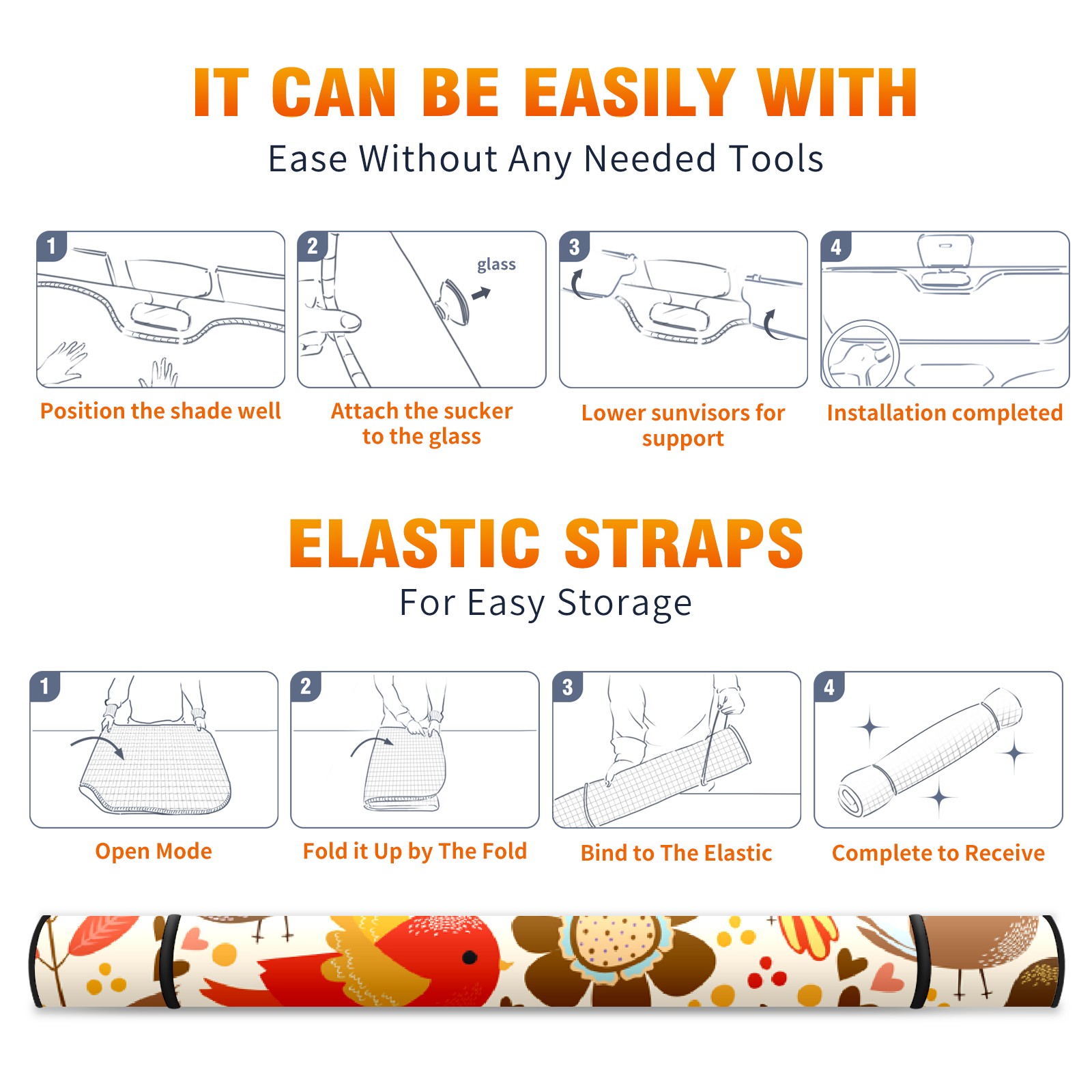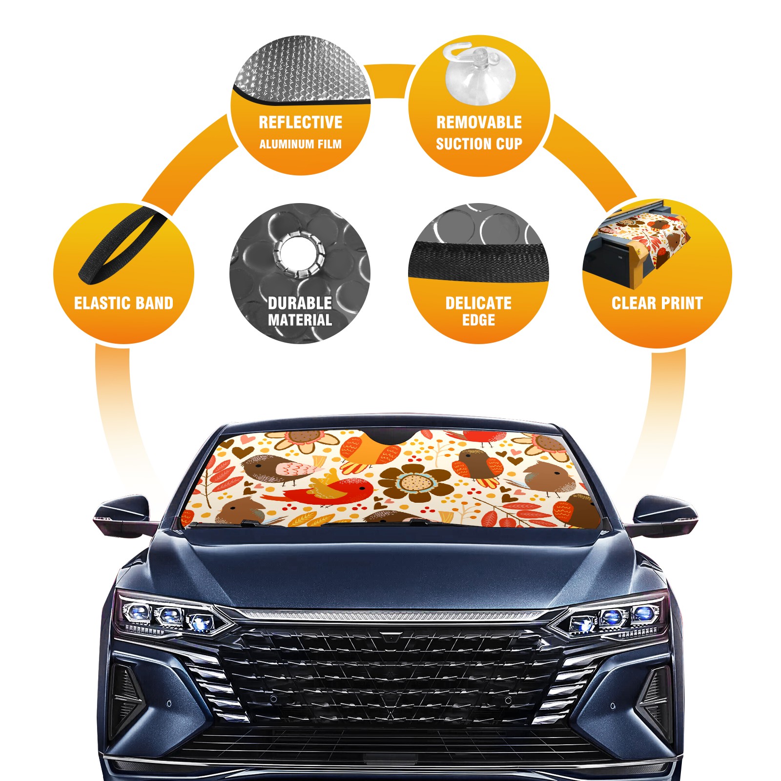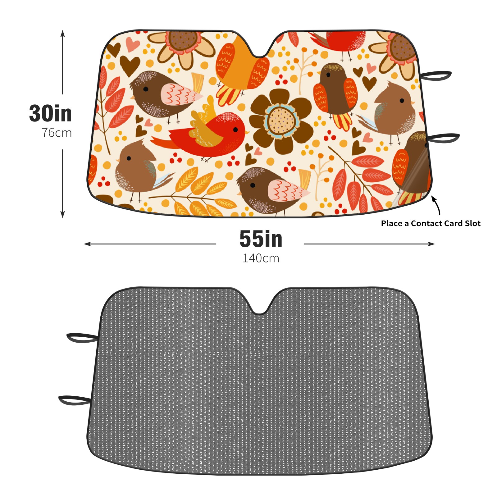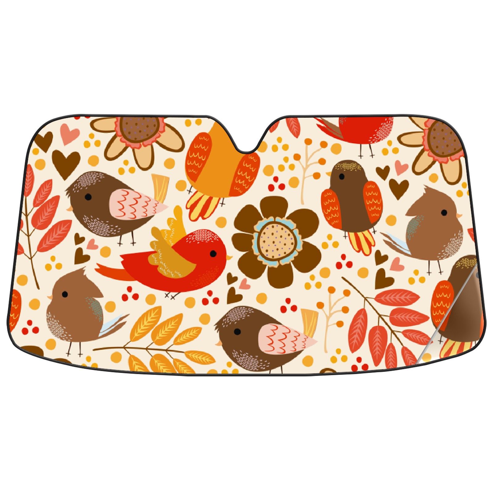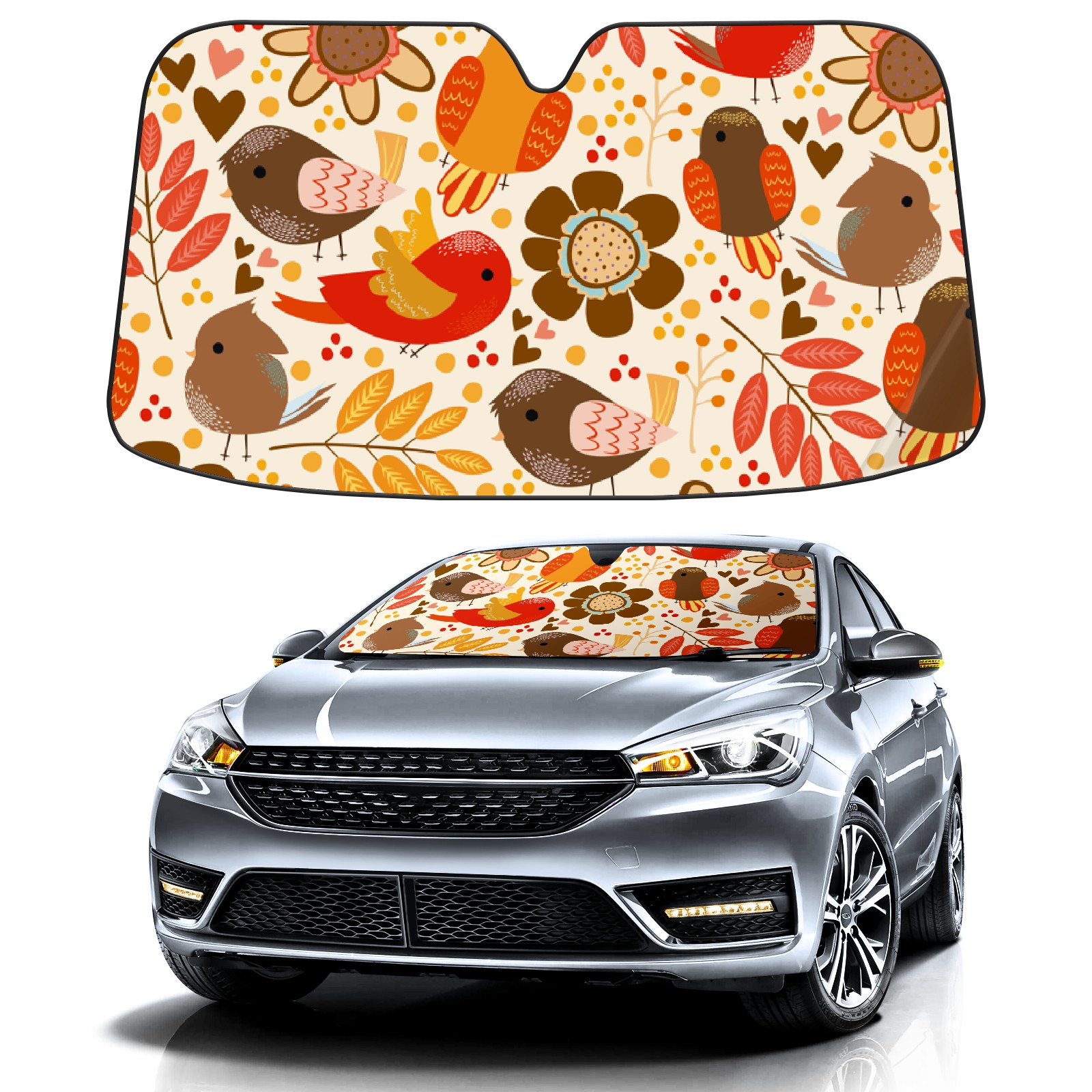 Car Windshield Sun Shade For Front Window Autumn Orange Birds Pattern Foldable Vehicle Windshield Car Sun Visor Covers Automotive Window Protector Car Camping Privacy Sun Blocker