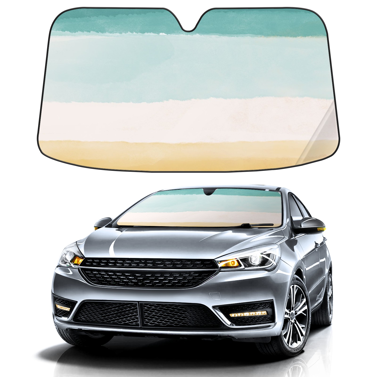 Car Windshield Sun Shade For Front Window Abstract Watercolor Yellow Blue Pattern Foldable Vehicle Windshield Car Sun Visor Covers Automotive Window Protector Car Camping Privacy Sun Blocker