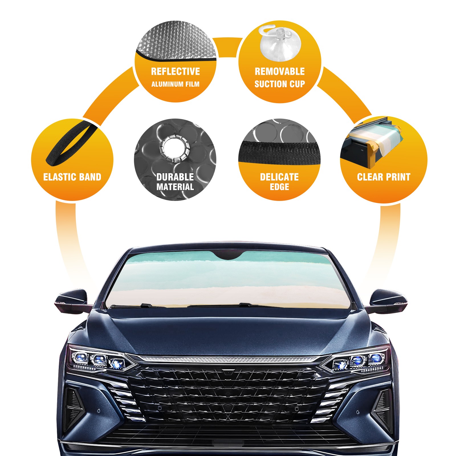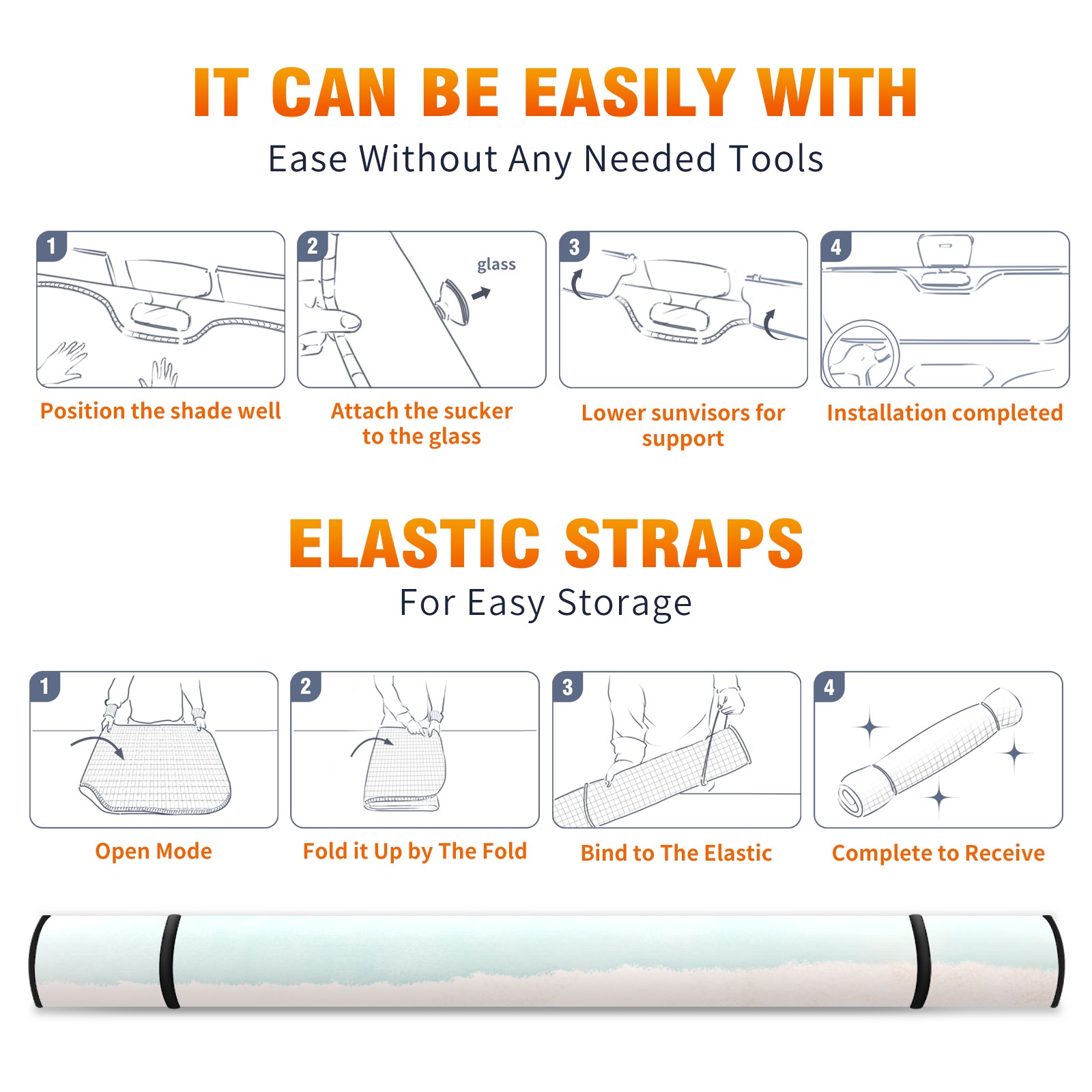 • Diameter /Size 63"L x 33.5"W Made from excellent materials which makes it sturdy and protects the car from the sun. Easy to use and pack. Makes the interior of the car cooler.You can easily stash the sunshade in the storage bag or store long term.It open and closes easy. Also the leather storage bag is durable and easy to put the umbrella back into.This windshield sunshade provides complete coverage and keeps your car interior cool under direct sun. It is easy to open and position under the windshield and around the rear-view mirror. Makes Your Car Easy To Identify, Perfect For Finding Your Car In Crowded Parking Lots And Garages.Great Choice: It Is A Great Gift For Dad, Boyfriend, Brother, Brother And Uncle, Friends, Classmates, Family And So On. Notice: Due To Difference Computer Monitors, The Color Maybe Slightly Different From Picture. As Different Measurement Methods, Measurement Data Will Float Within 2%.I Hope You Understand. If You Have Any Question About The Item Please Do Not Hesitate To Contact Us Immediately And We Will Give You A Satisfactory Reply Within 24 Hours.