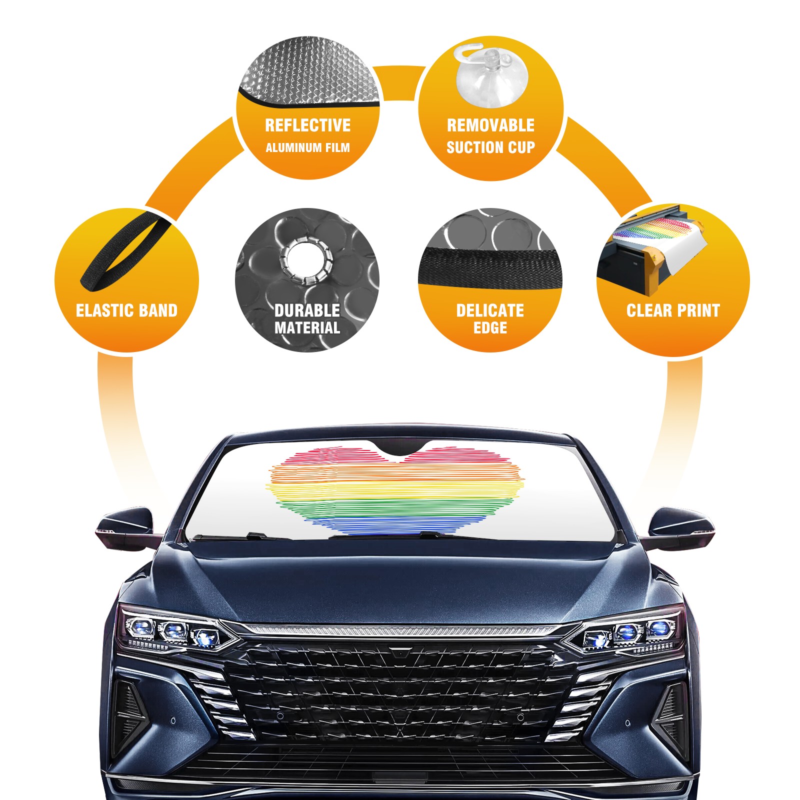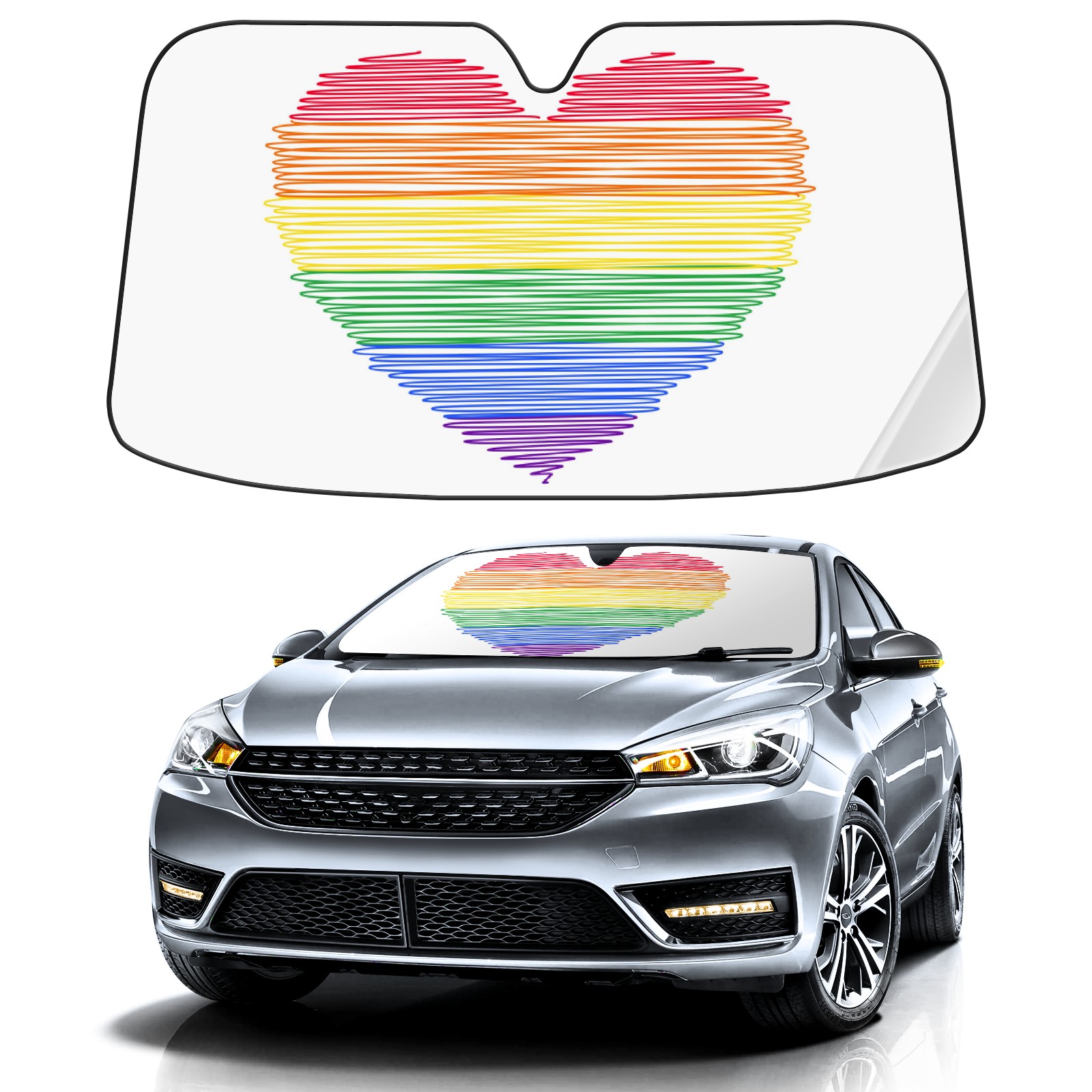 Car Windshield Sun Shade For Front Window Rainbow Doodle Heart Shape Pattern Foldable Vehicle Windshield Car Sun Visor Covers Automotive Window Protector Car Camping Privacy Sun Blocker