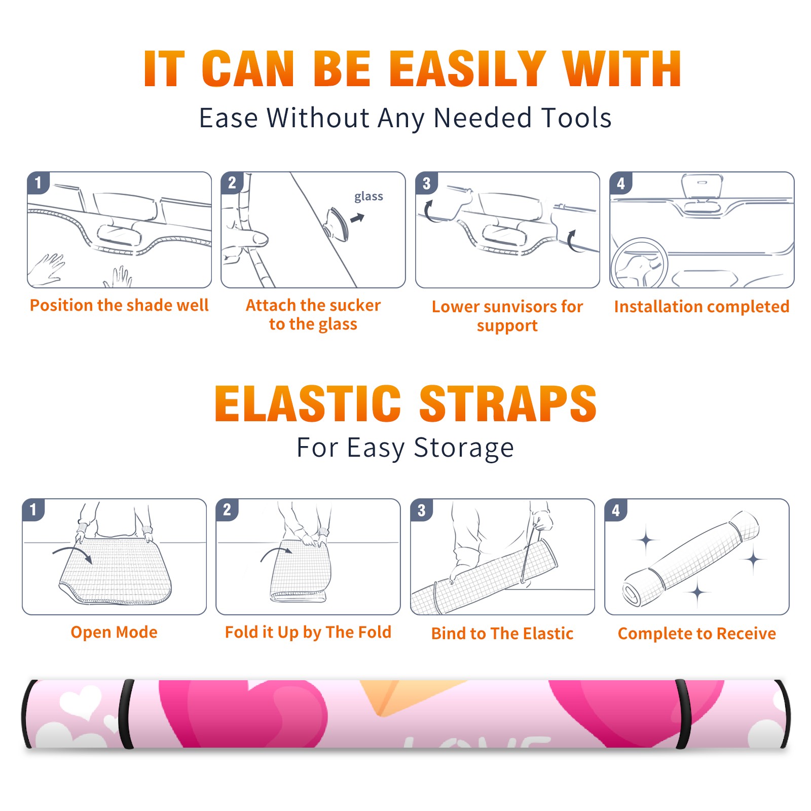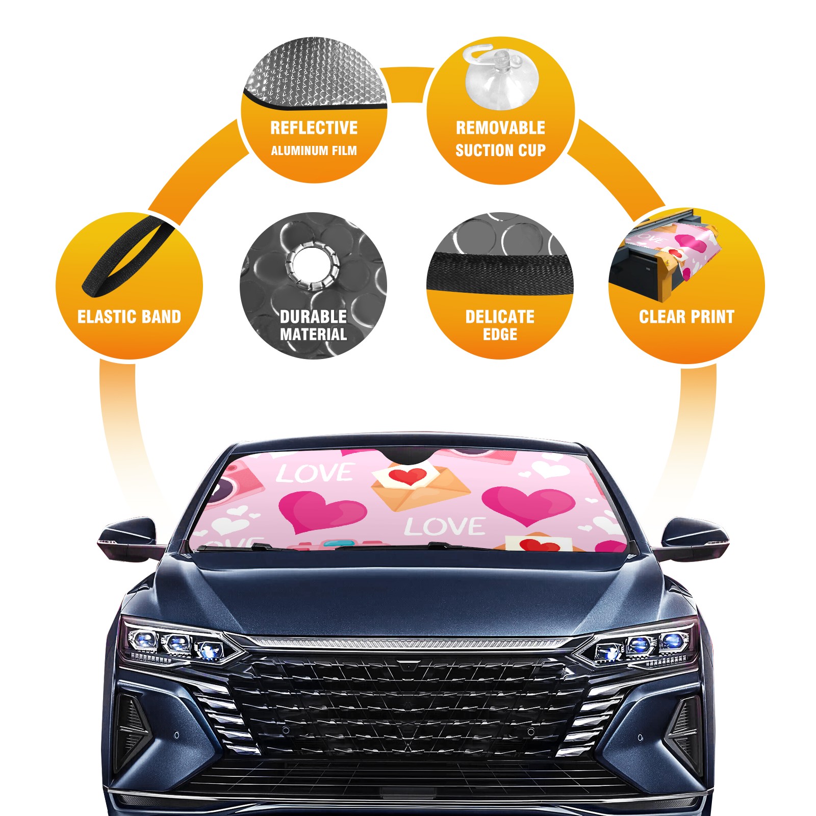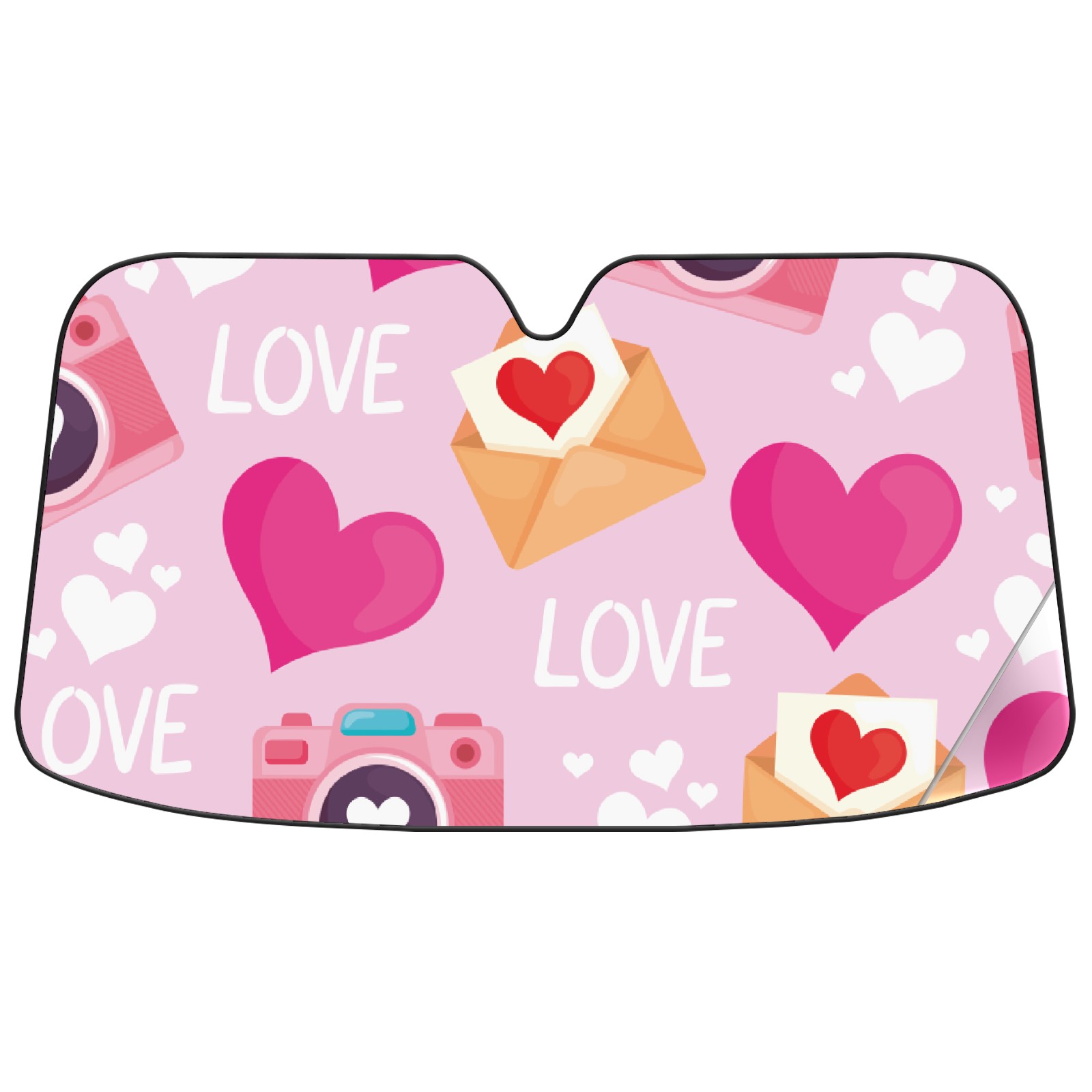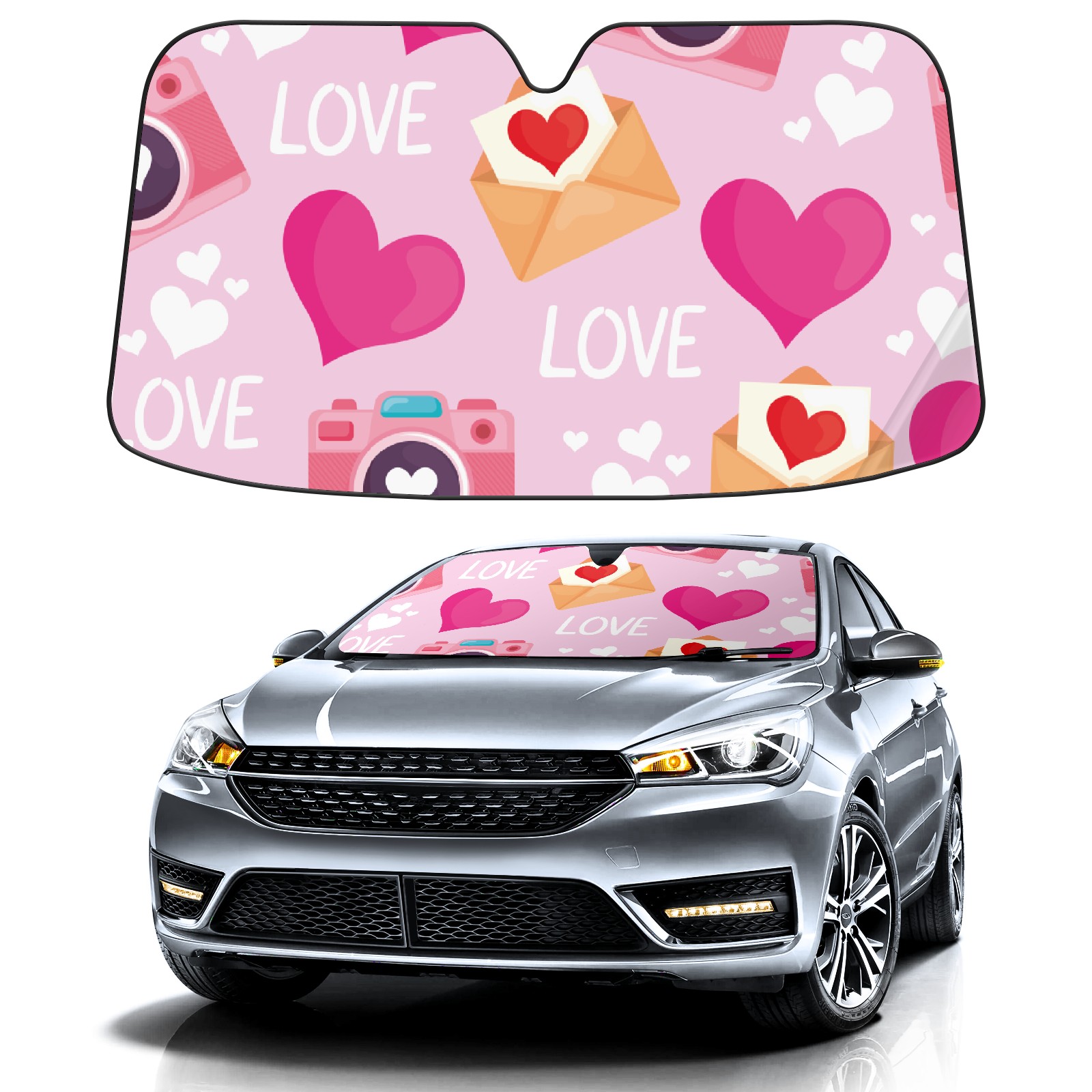 Car Windshield Sun Shade For Front Window Cute Love Pattern Foldable Vehicle Windshield Car Sun Visor Covers Automotive Window Protector Car Camping Privacy Sun Blocker