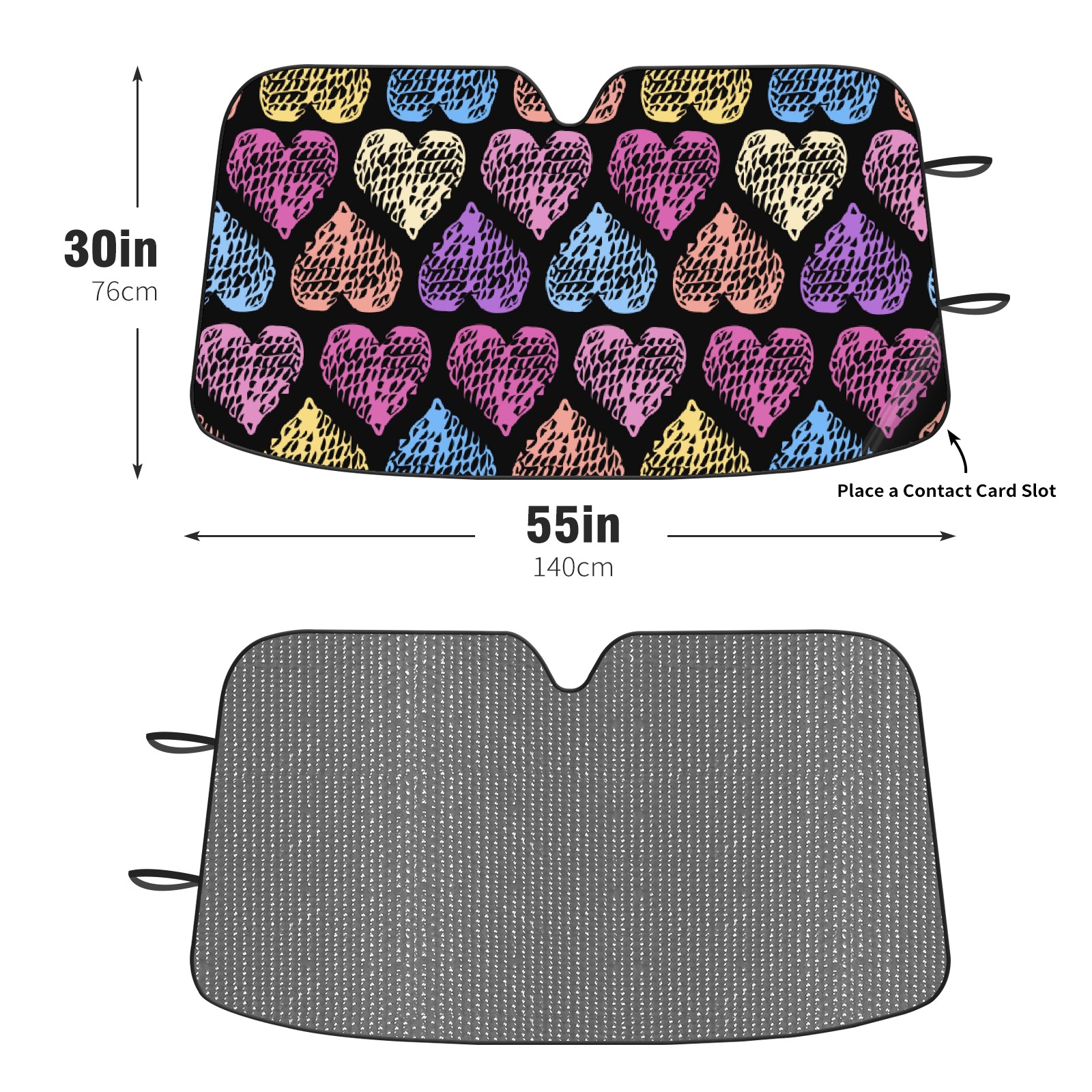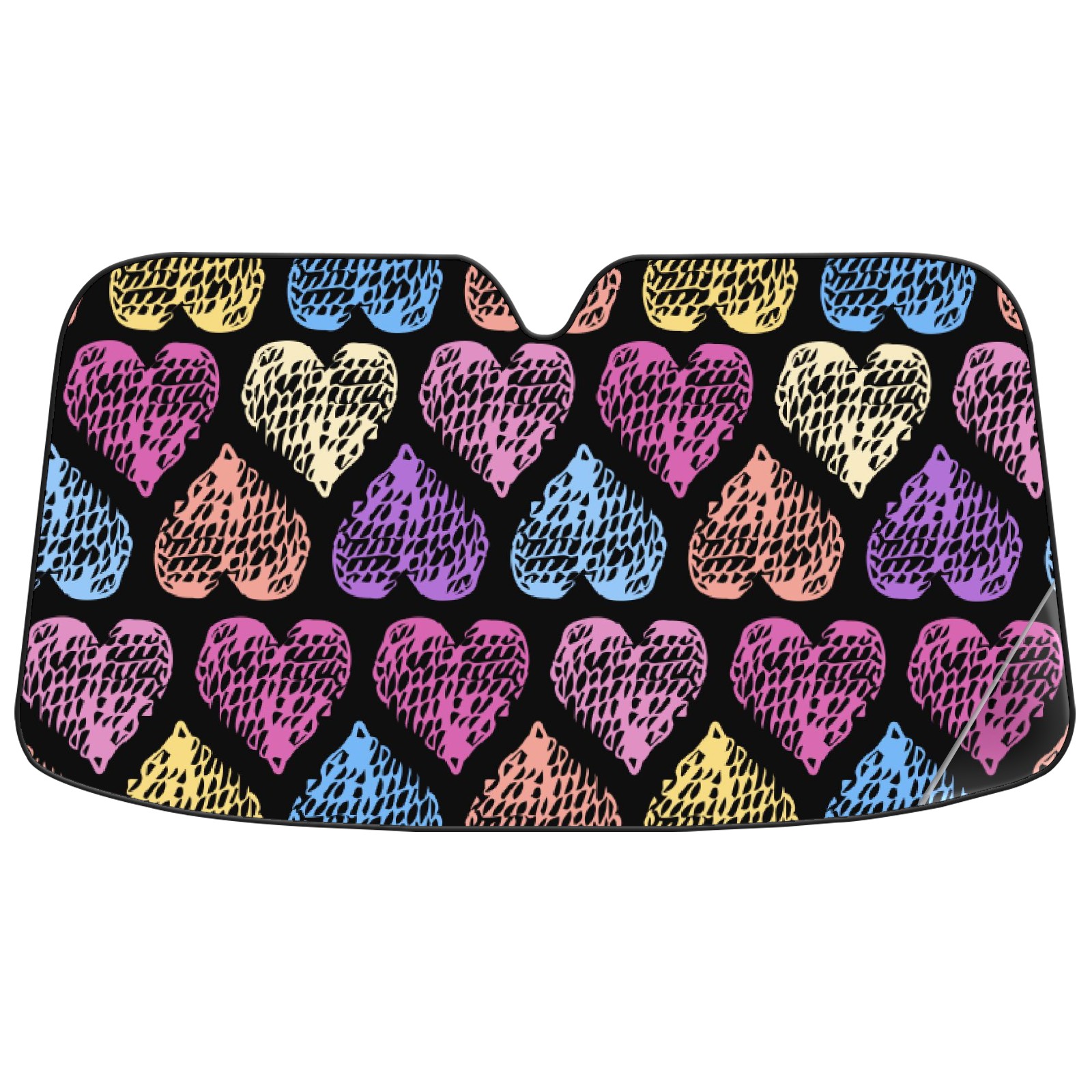 Car Windshield Sun Shade For Front Window Colorful Heart Shape Pattern Foldable Vehicle Windshield Car Sun Visor Covers Automotive Window Protector Car Camping Privacy Sun Blocker