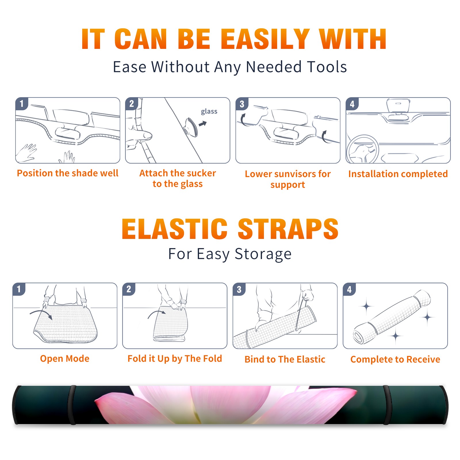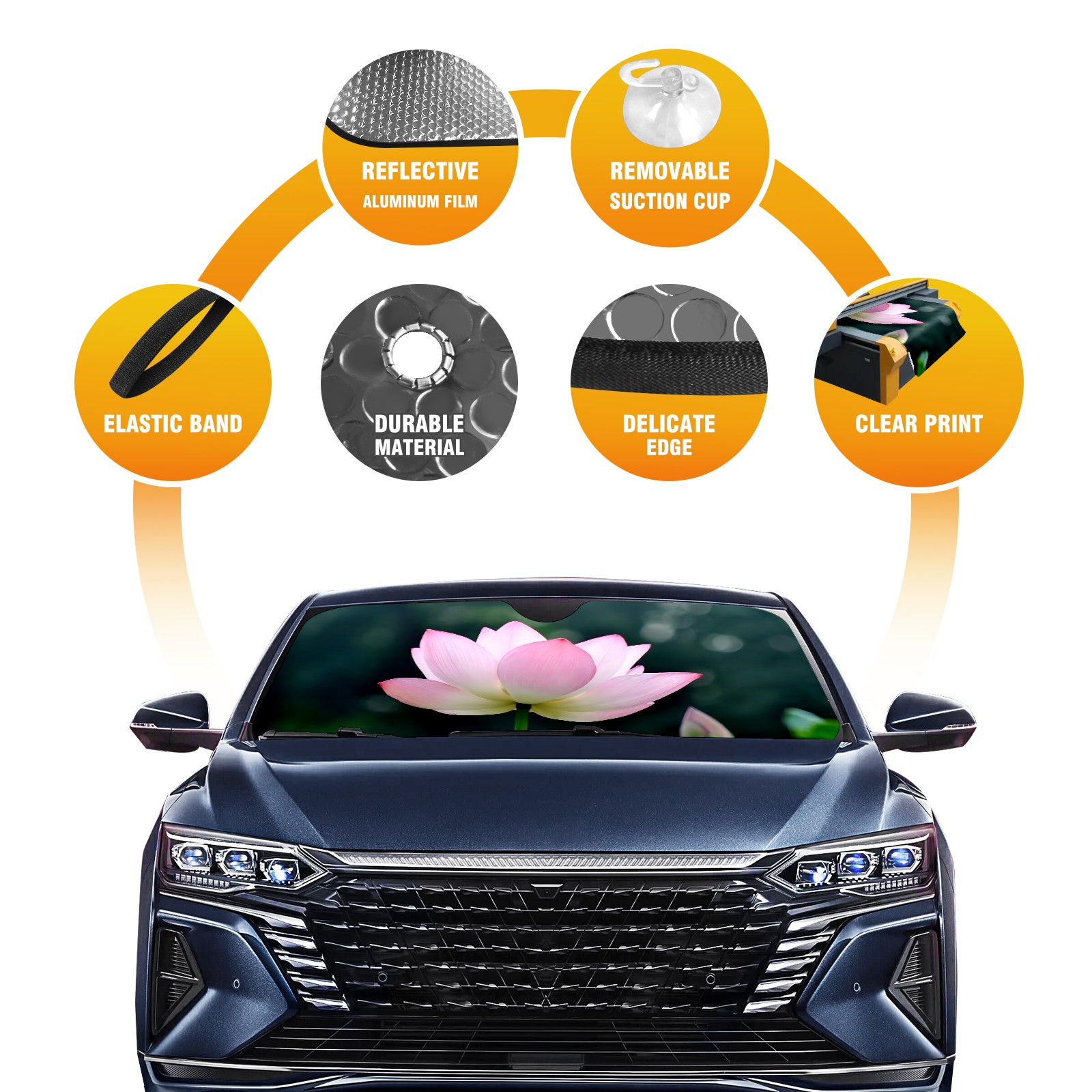 Car Windshield Sun Shade For Front Window Pink Lotus Foldable Vehicle Windshield Car Sun Visor Covers Automotive Window Protector Car Camping Privacy Sun Blocker