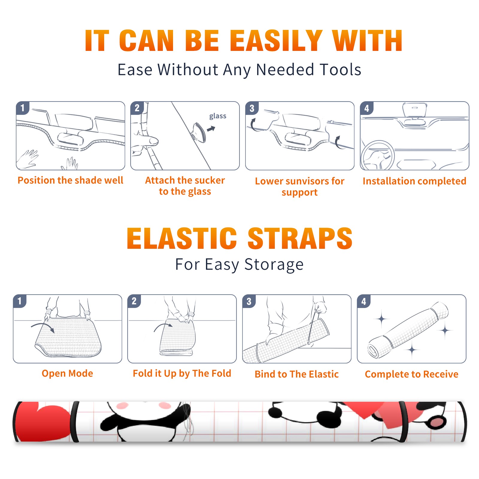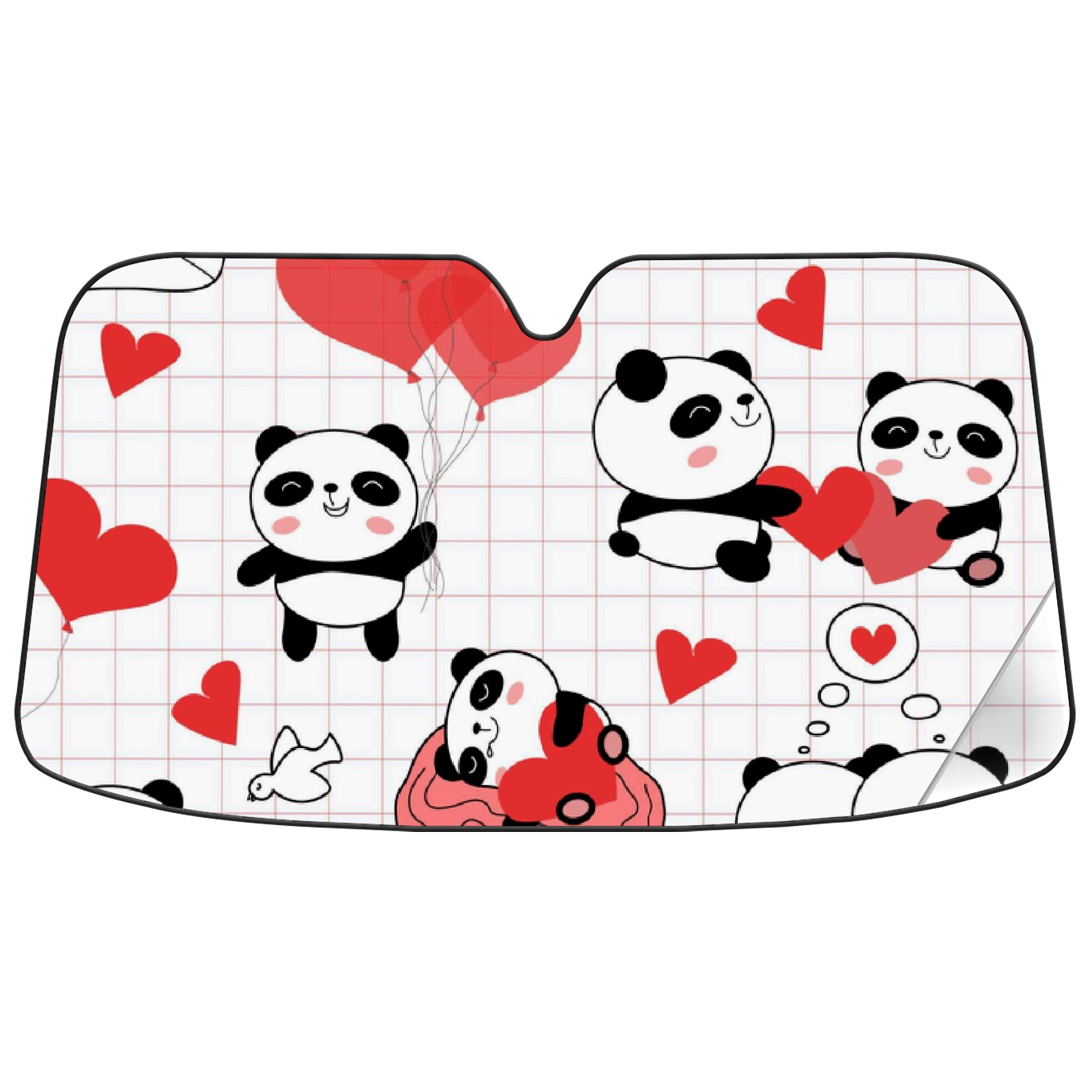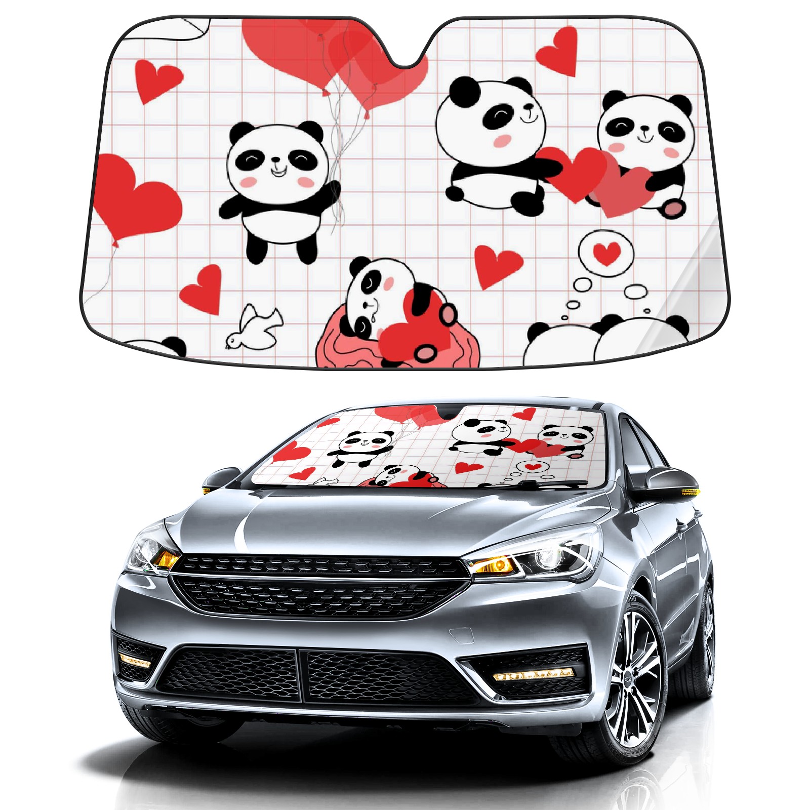 Car Windshield Sun Shade For Front Window Valentines Day Pandas Foldable Vehicle Windshield Car Sun Visor Covers Automotive Window Protector Car Camping Privacy Sun Blocker