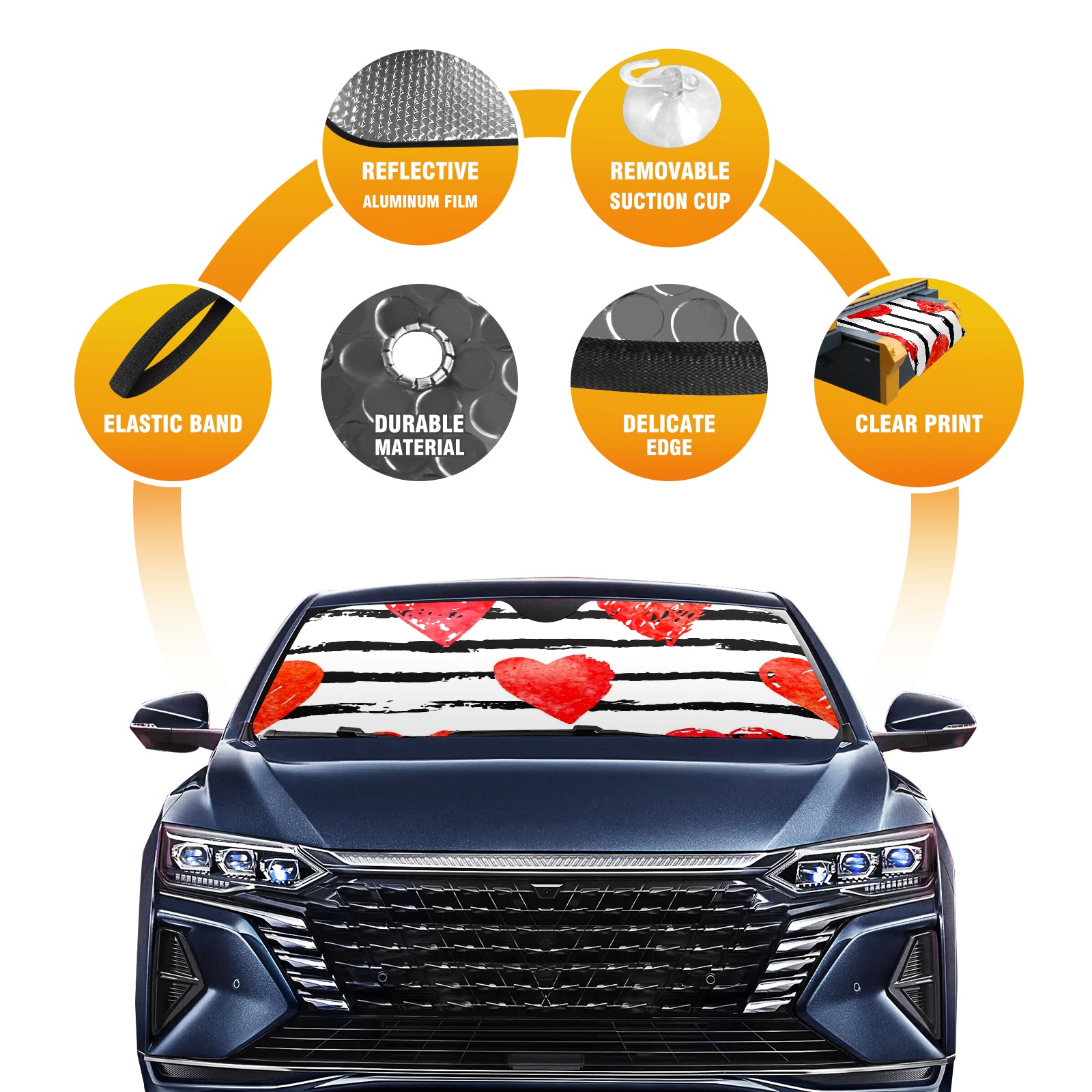 Car Windshield Sun Shade For Front Window Valentine's Day Heart Love Foldable Vehicle Windshield Car Sun Visor Covers Automotive Window Protector Car Camping Privacy Sun Blocker