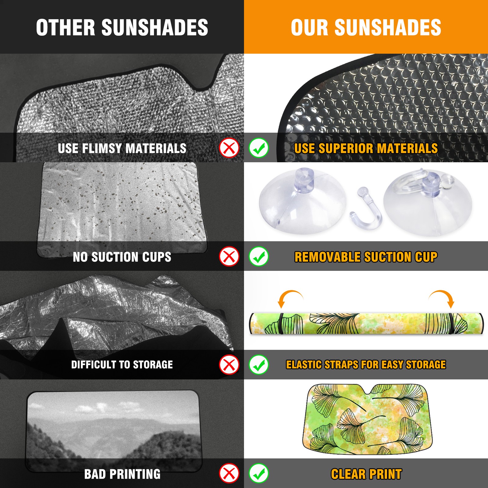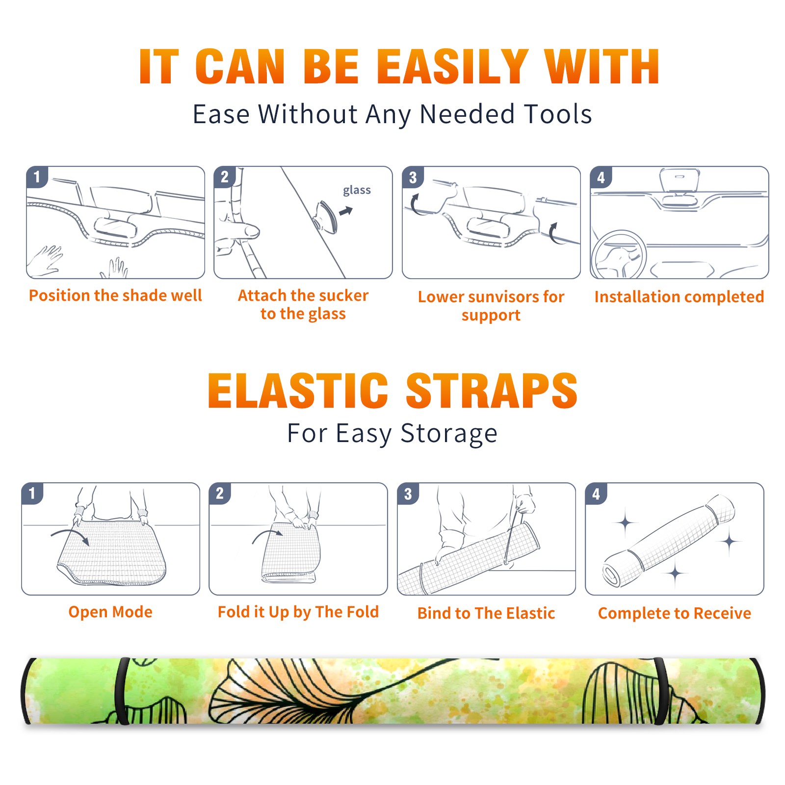 • Diameter /Size 63"L x 33.5"W Made from excellent materials which makes it sturdy and protects the car from the sun. Easy to use and pack. Makes the interior of the car cooler.You can easily stash the sunshade in the storage bag or store long term.It open and closes easy. Also the leather storage bag is durable and easy to put the umbrella back into.This windshield sunshade provides complete coverage and keeps your car interior cool under direct sun. It is easy to open and position under the windshield and around the rear-view mirror. Makes Your Car Easy To Identify, Perfect For Finding Your Car In Crowded Parking Lots And Garages.Great Choice: It Is A Great Gift For Dad, Boyfriend, Brother, Brother And Uncle, Friends, Classmates, Family And So On. Notice: Due To Difference Computer Monitors, The Color Maybe Slightly Different From Picture. As Different Measurement Methods, Measurement Data Will Float Within 2%.I Hope You Understand. If You Have Any Question About The Item Please Do Not Hesitate To Contact Us Immediately And We Will Give You A Satisfactory Reply Within 24 Hours.