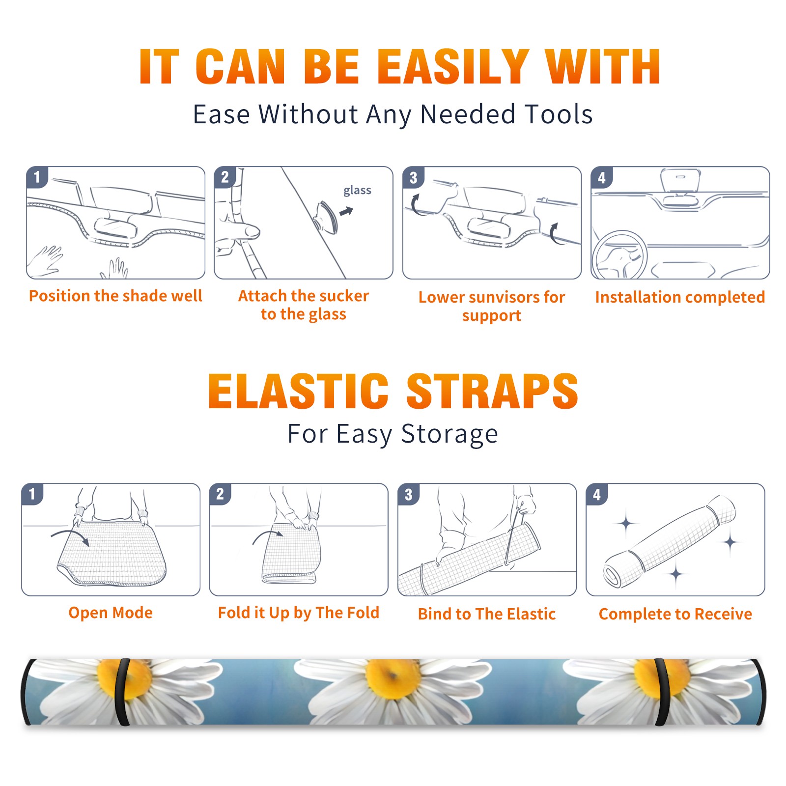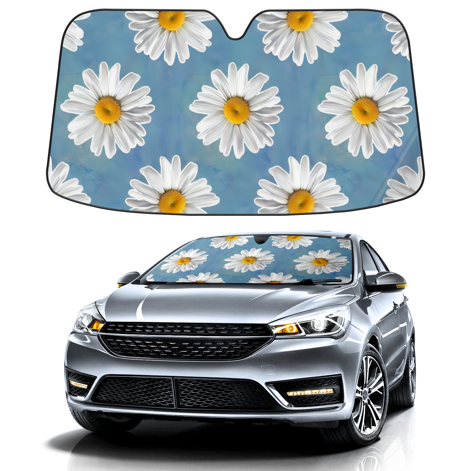 Car Windshield Sun Shade For Front Window White Daisy Foldable Vehicle Windshield Car Sun Visor Covers Automotive Window Protector Car Camping Privacy Sun Blocker