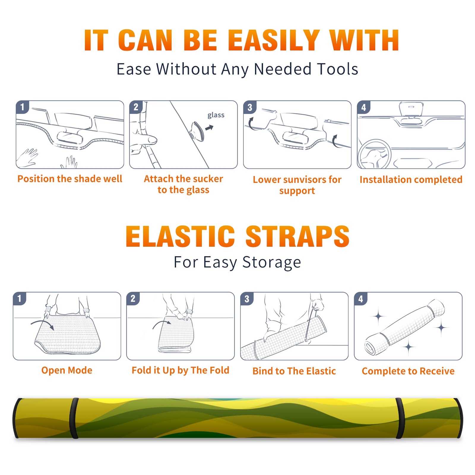 • Diameter /Size 63"L x 33.5"W Made from excellent materials which makes it sturdy and protects the car from the sun. Easy to use and pack. Makes the interior of the car cooler.You can easily stash the sunshade in the storage bag or store long term.It open and closes easy. Also the leather storage bag is durable and easy to put the umbrella back into.This windshield sunshade provides complete coverage and keeps your car interior cool under direct sun. It is easy to open and position under the windshield and around the rear-view mirror. Makes Your Car Easy To Identify, Perfect For Finding Your Car In Crowded Parking Lots And Garages.Great Choice: It Is A Great Gift For Dad, Boyfriend, Brother, Brother And Uncle, Friends, Classmates, Family And So On. Notice: Due To Difference Computer Monitors, The Color Maybe Slightly Different From Picture. As Different Measurement Methods, Measurement Data Will Float Within 2%.I Hope You Understand. If You Have Any Question About The Item Please Do Not Hesitate To Contact Us Immediately And We Will Give You A Satisfactory Reply Within 24 Hours.