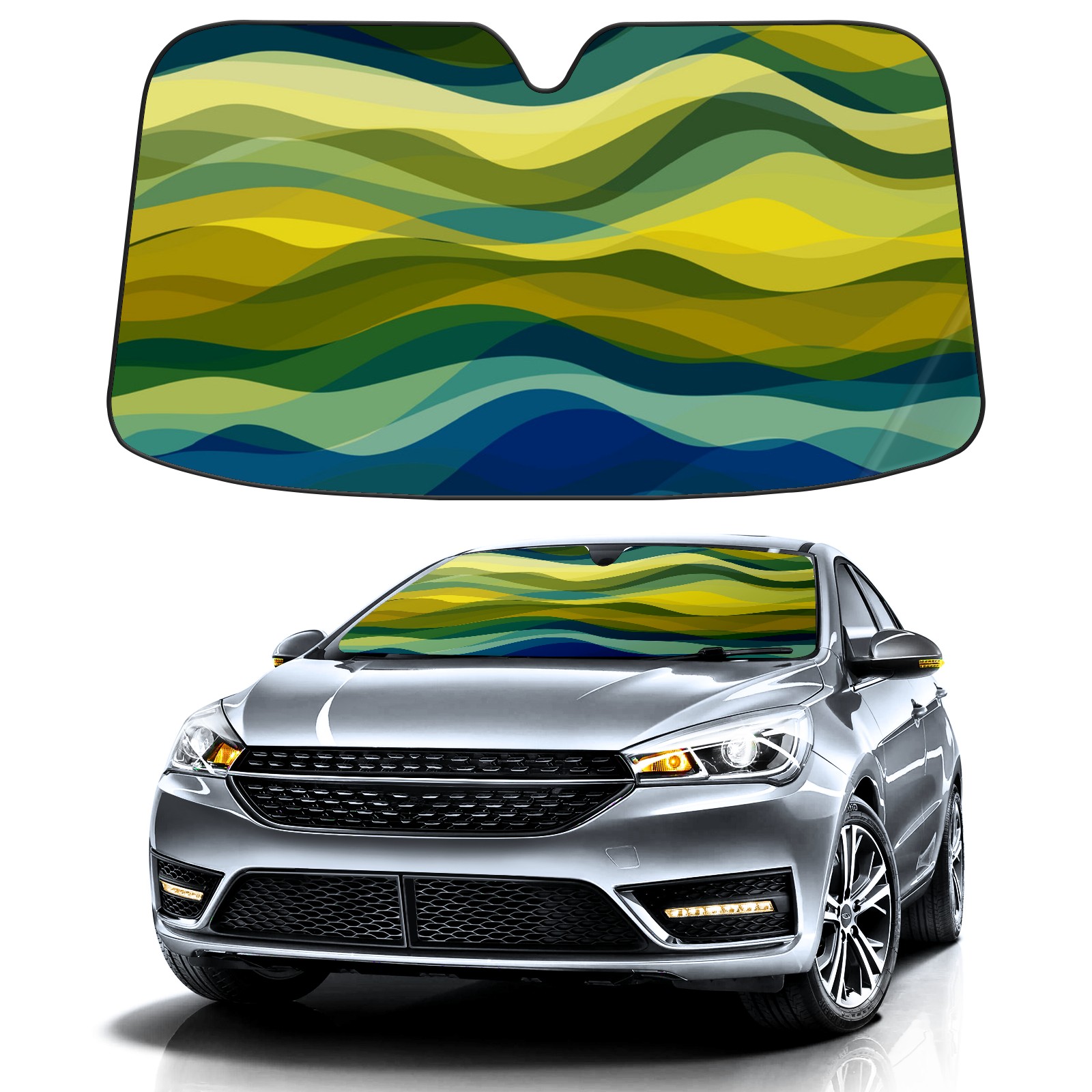 Car Windshield Sun Shade For Front Window Wave Pattern Foldable Vehicle Windshield Car Sun Visor Covers Automotive Window Protector Car Camping Privacy Sun Blocker