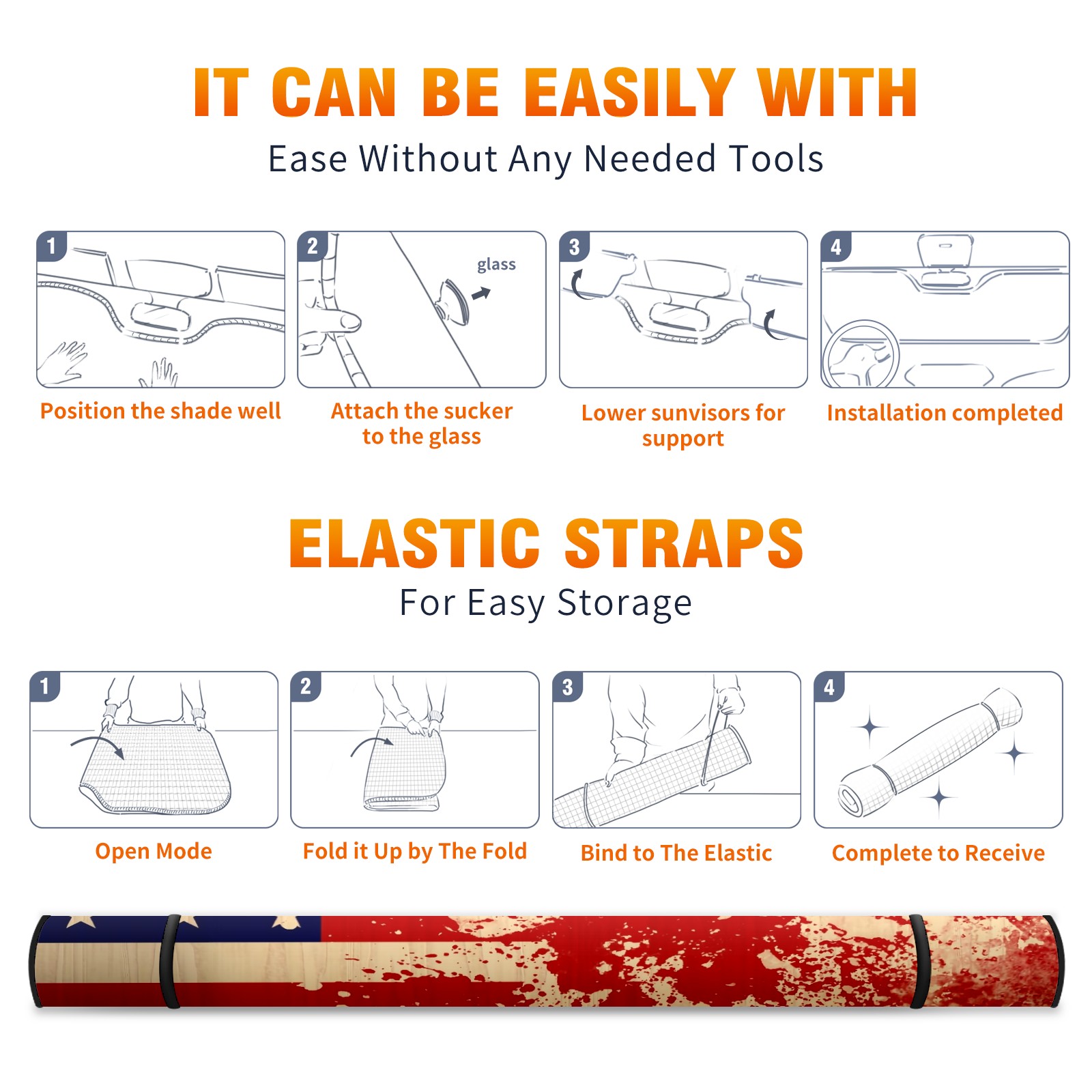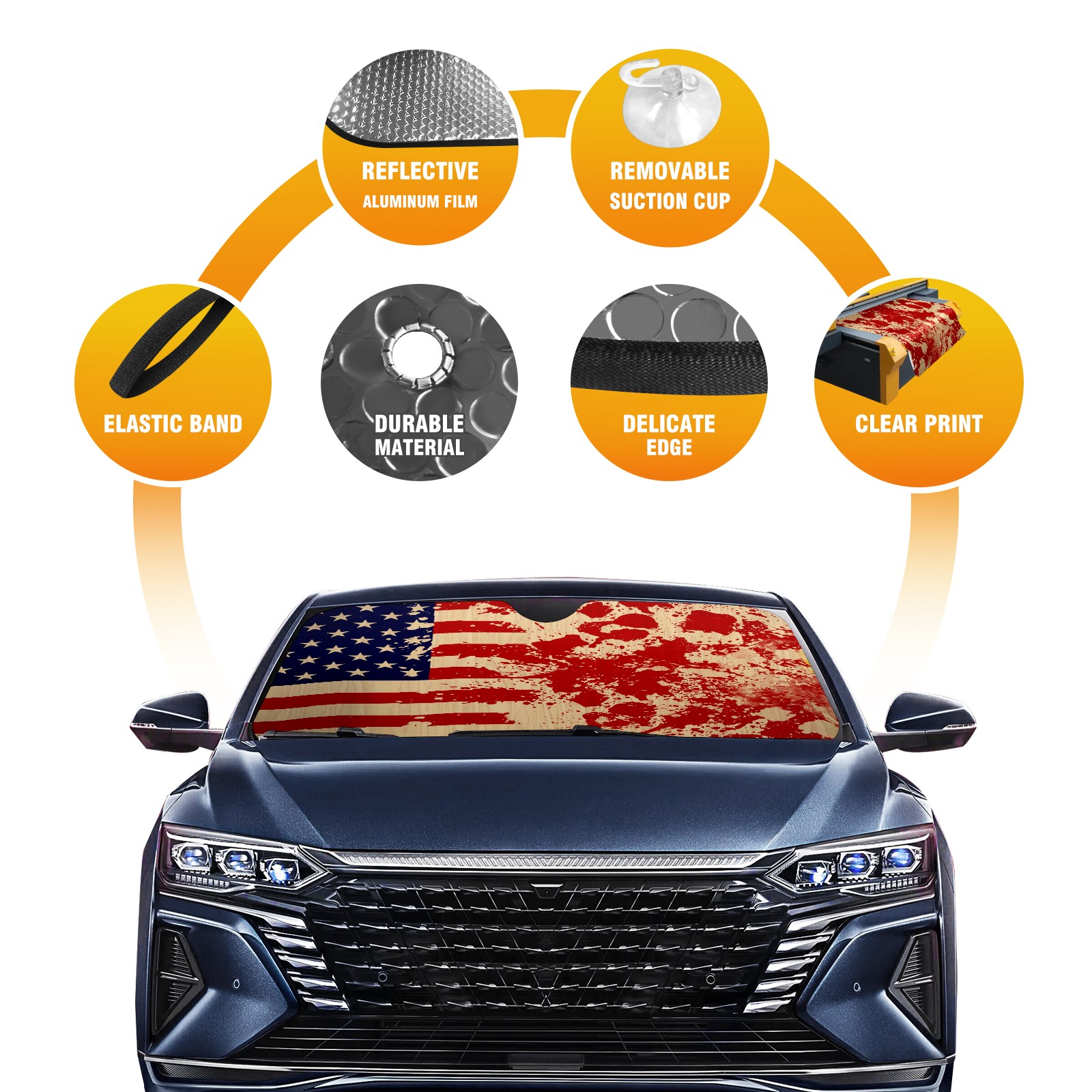 Car Windshield Sun Shade For Front Window American Flag Element Foldable Vehicle Windshield Car Sun Visor Covers Automotive Window Protector Car Camping Privacy Sun Blocker