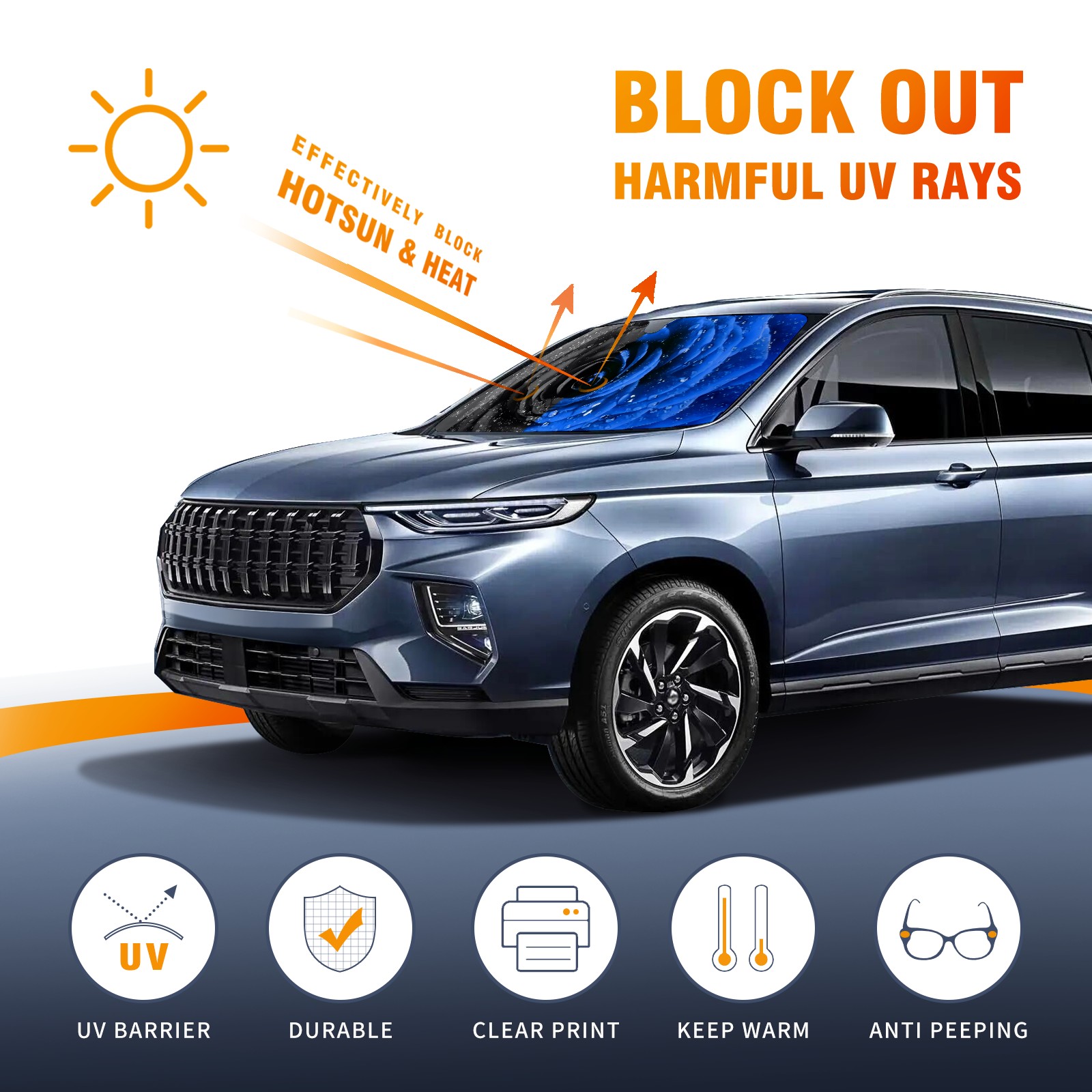 Car Windshield Sun Shade For Front Window Black Blue Rose Foldable Vehicle Windshield Car Sun Visor Covers Automotive Window Protector Car Camping Privacy Sun Blocker