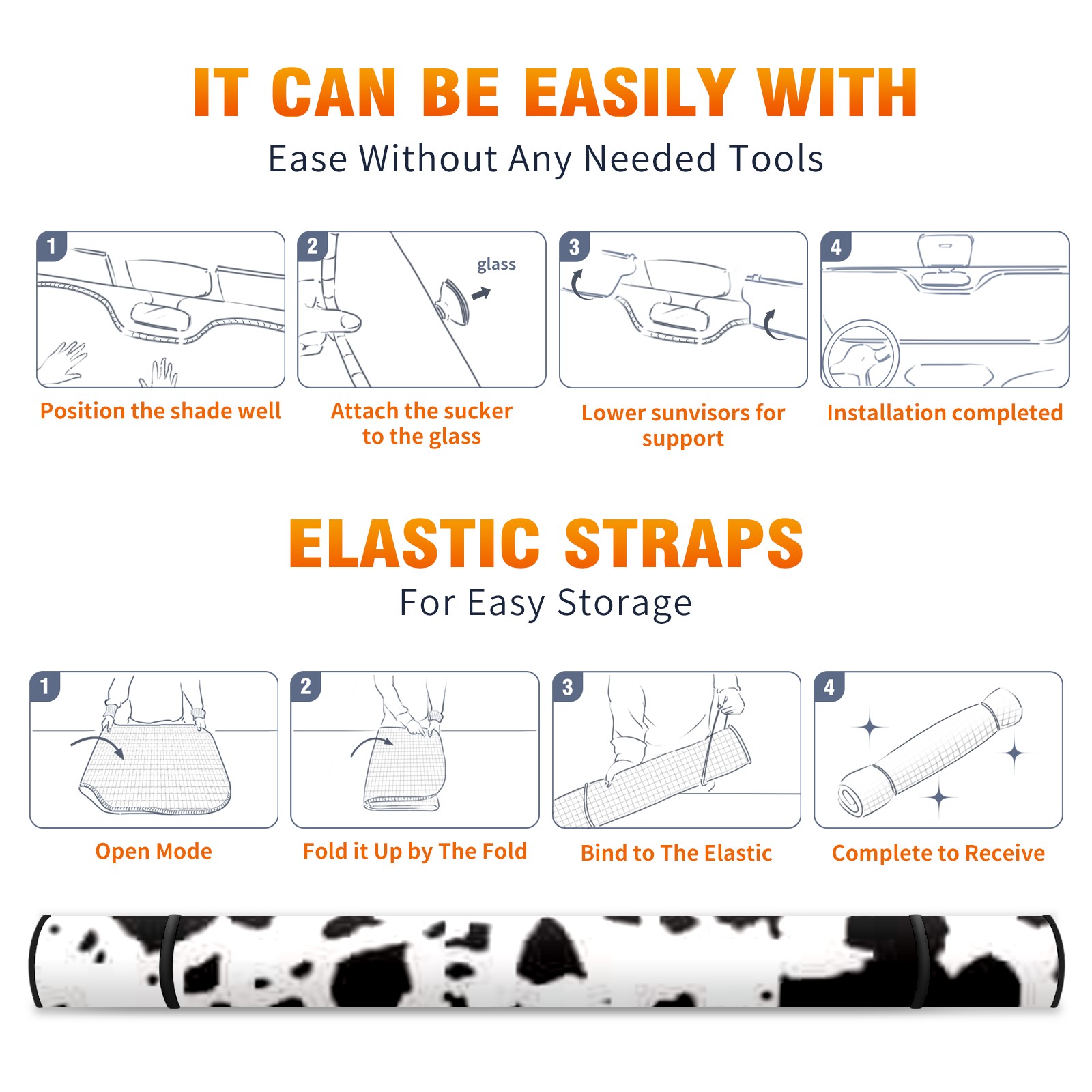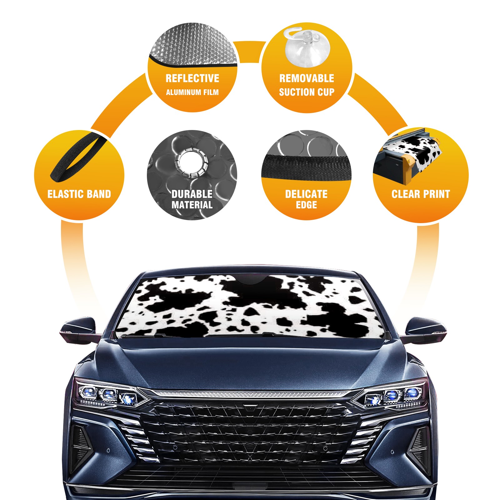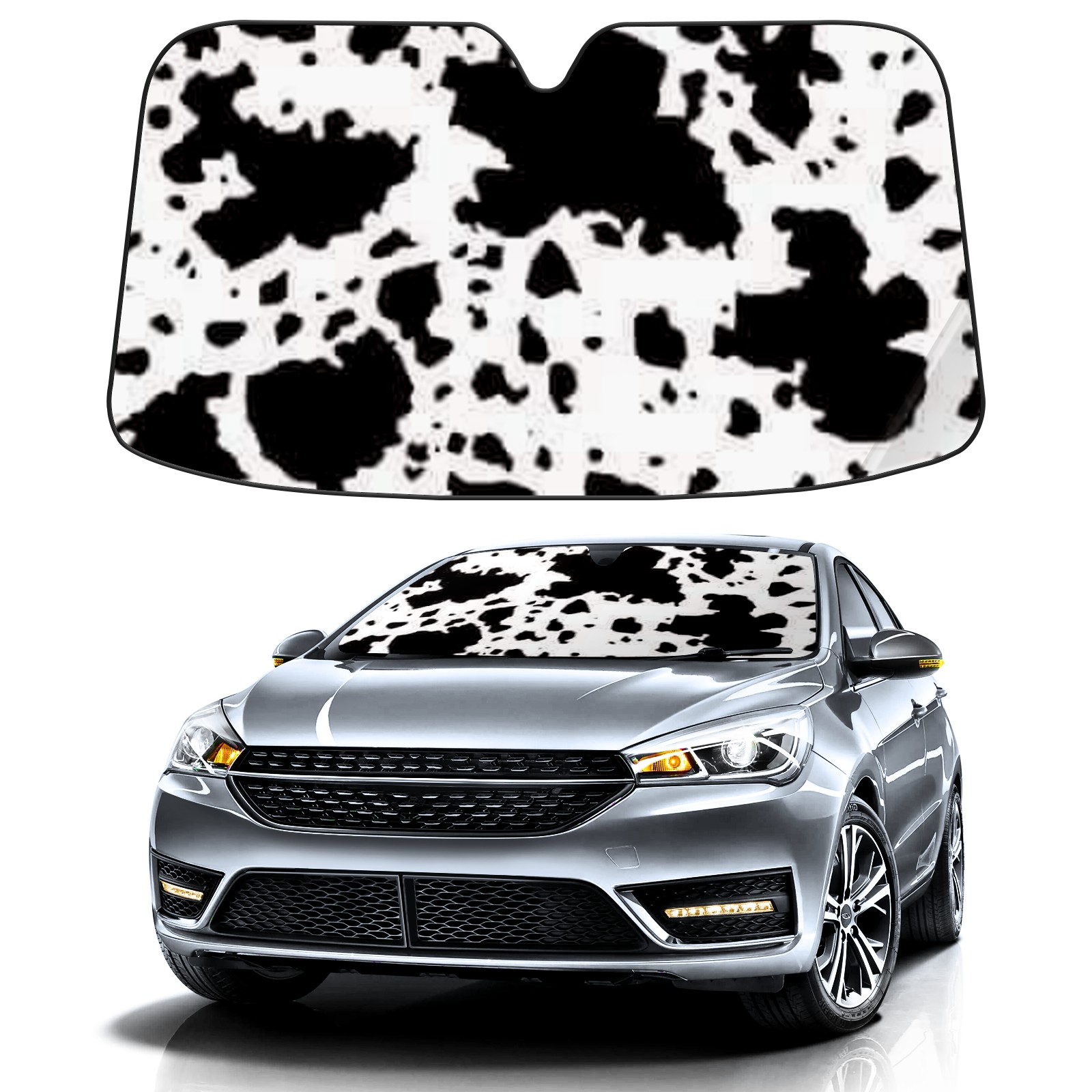 Car Windshield Sun Shade For Front Window Black Cow Print Foldable Vehicle Windshield Car Sun Visor Covers Automotive Window Protector Car Camping Privacy Sun Blocker