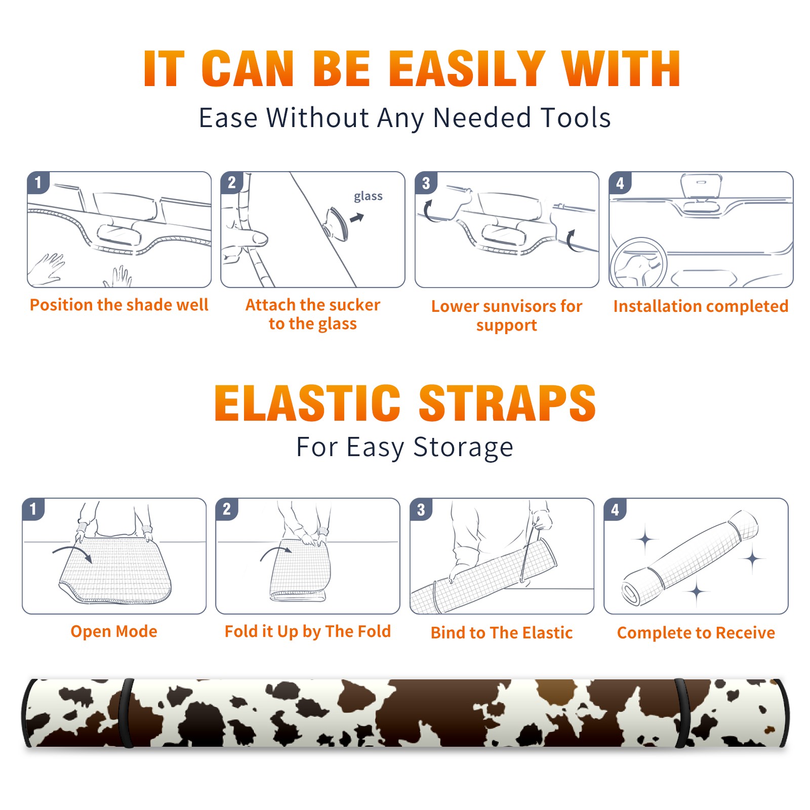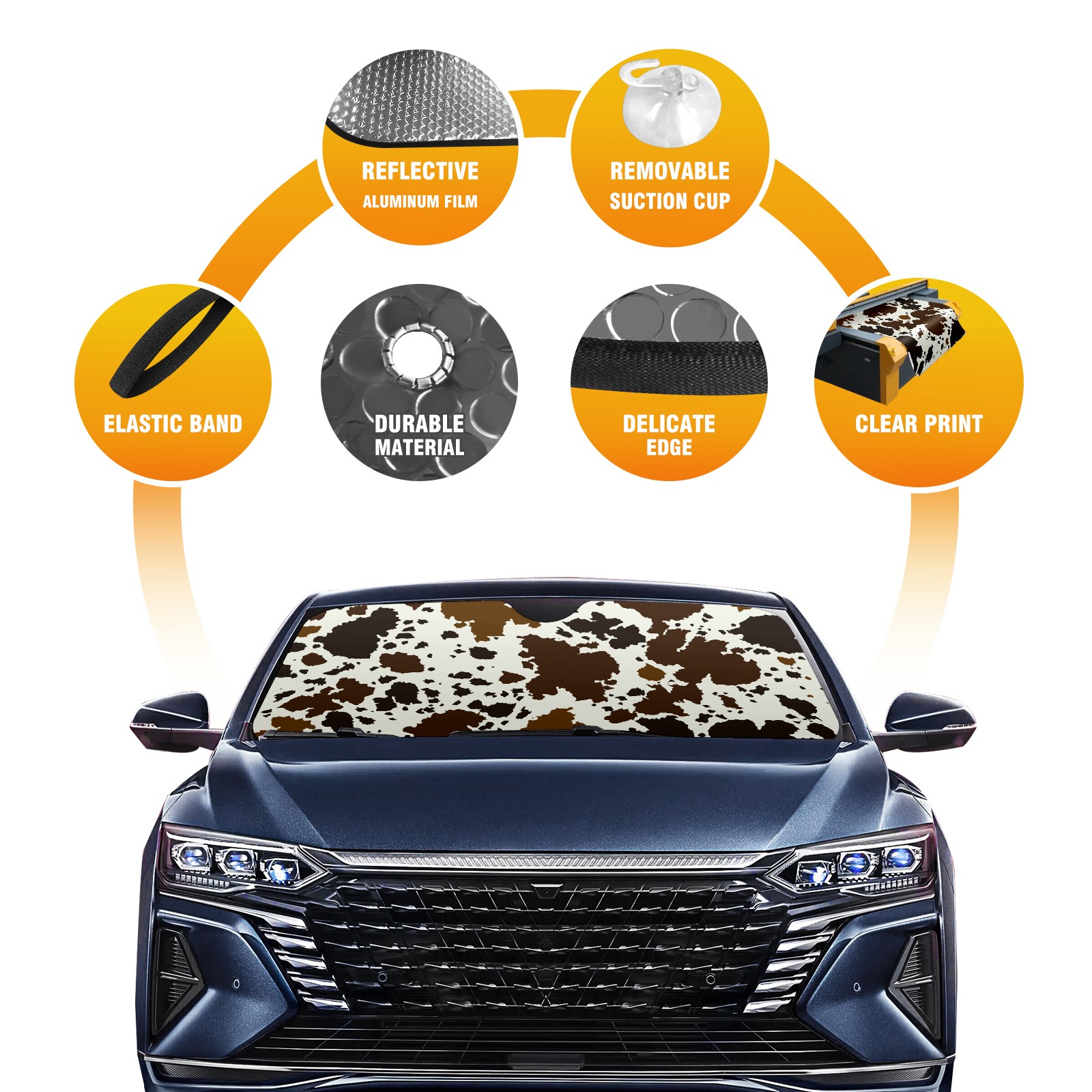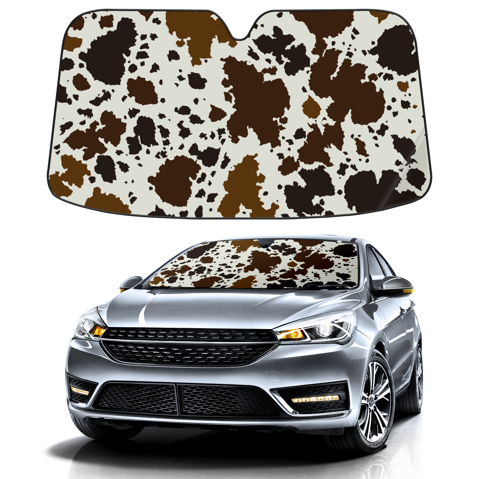 Car Windshield Sun Shade For Front Window Brown And Black Cow Print Foldable Vehicle Windshield Car Sun Visor Covers Automotive Window Protector Car Camping Privacy Sun Blocker