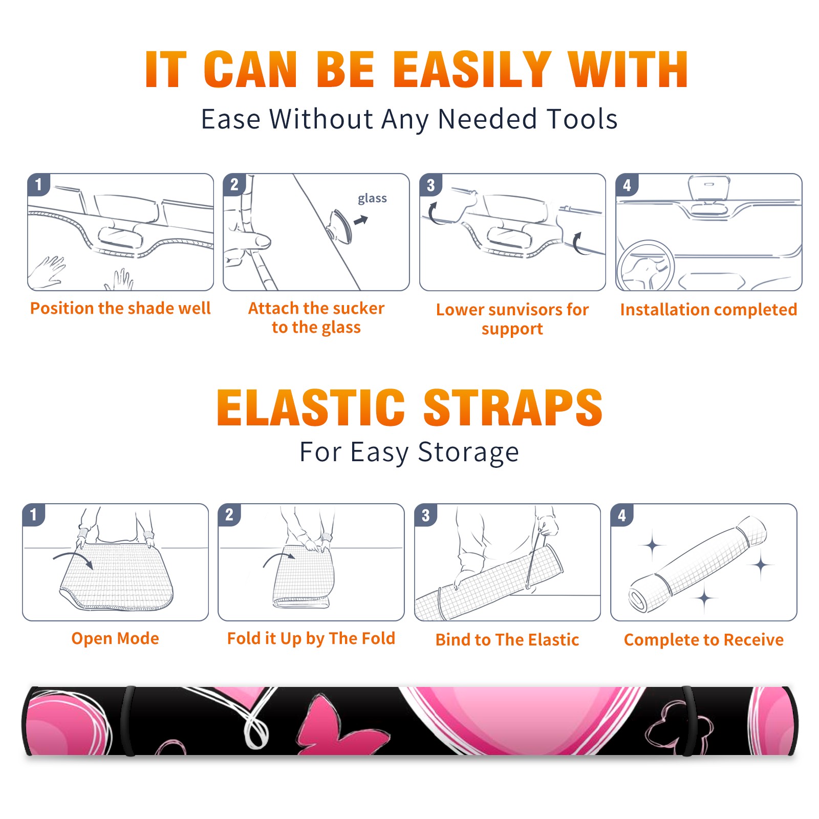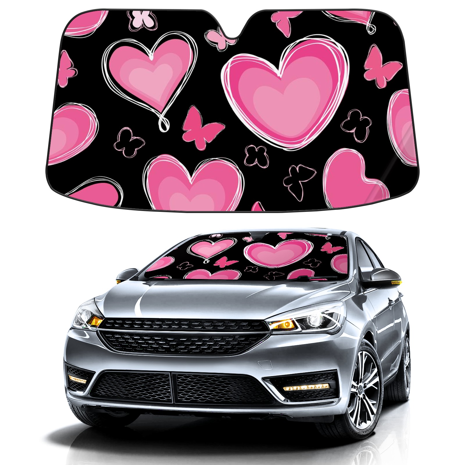 Car Windshield Sun Shade For Front Window Love Heart Pink Foldable Vehicle Windshield Car Sun Visor Covers Automotive Window Protector Car Camping Privacy Sun Blocker