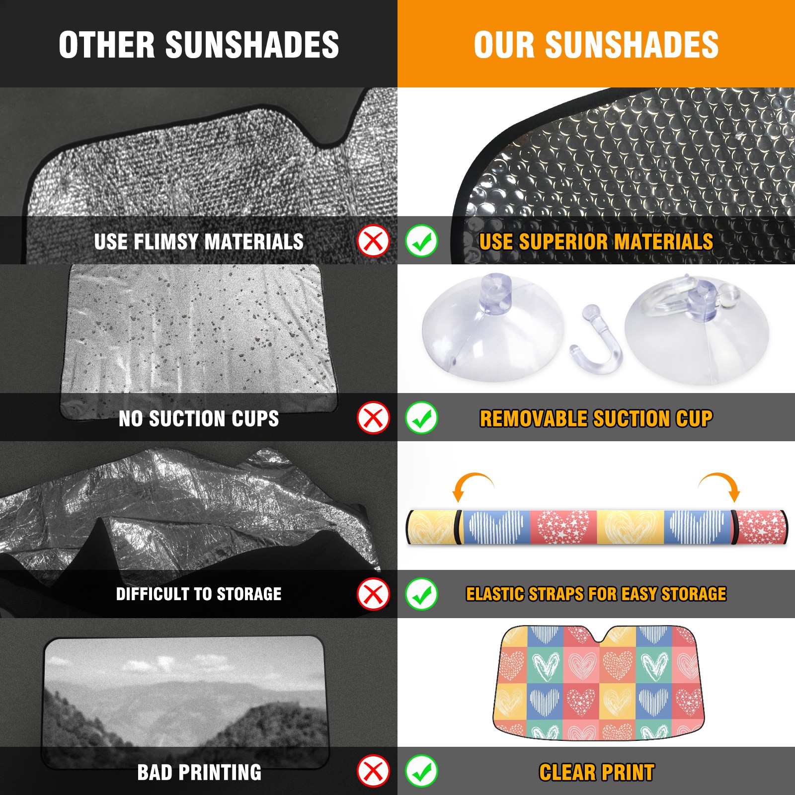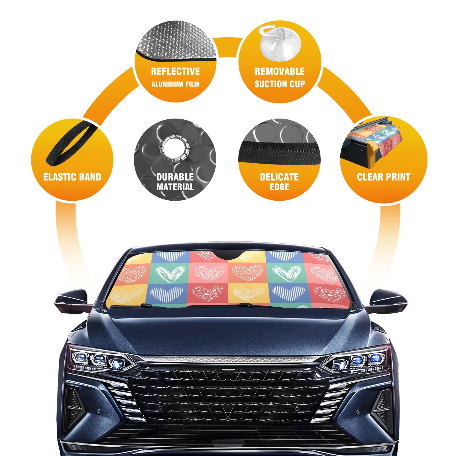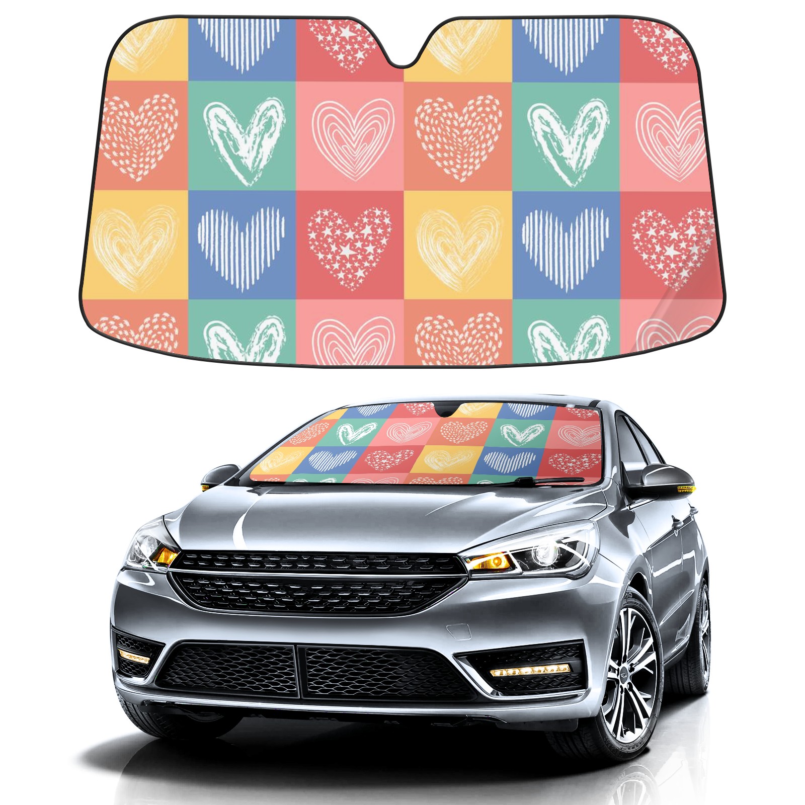 Car Windshield Sun Shade For Front Window Love Heart Foldable Vehicle Windshield Car Sun Visor Covers Automotive Window Protector Car Camping Privacy Sun Blocker