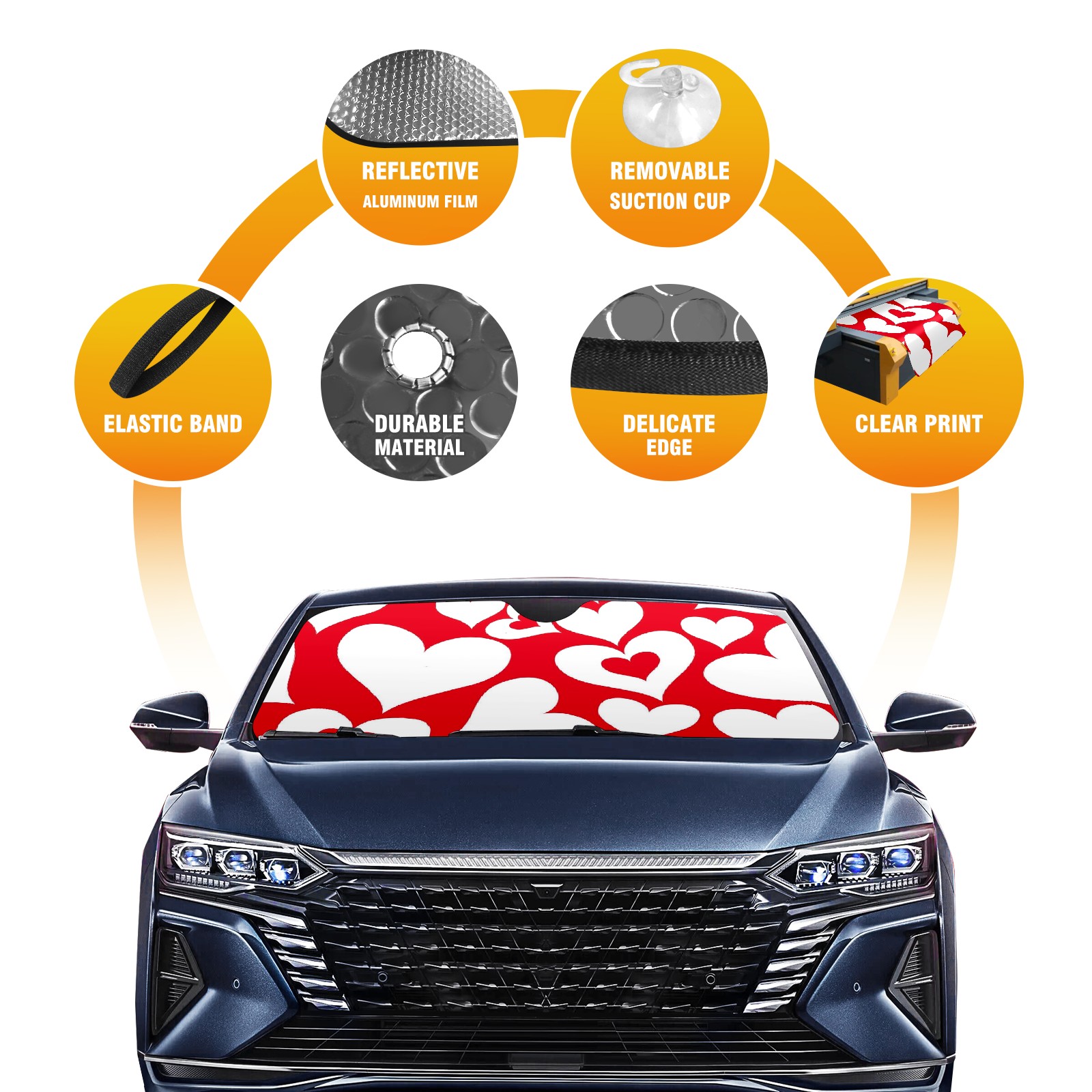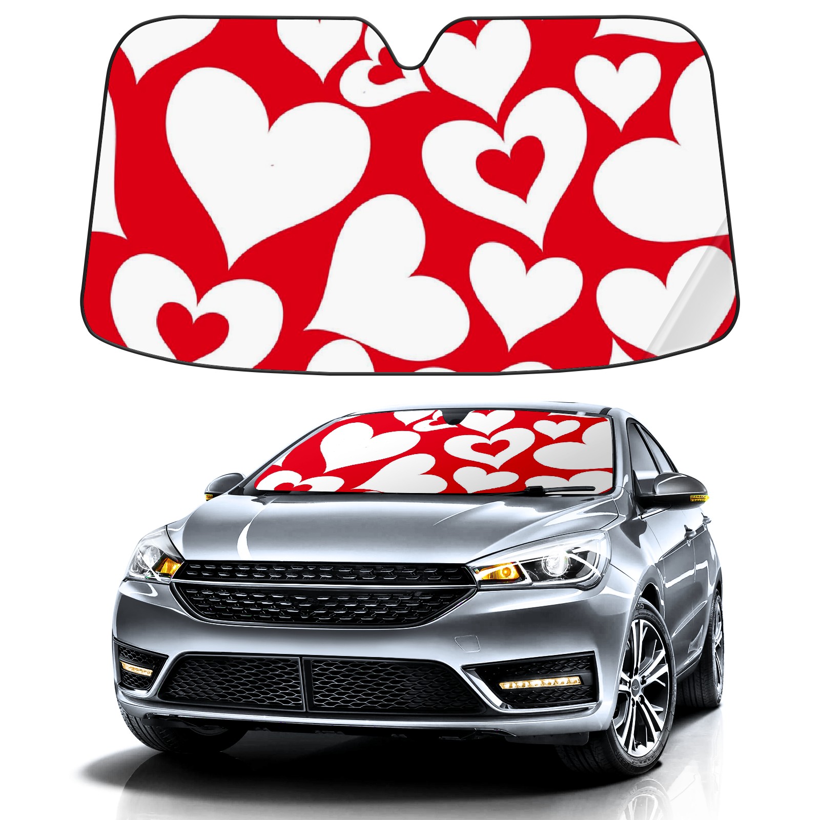 Car Windshield Sun Shade For Front Window Valentine Hearts Love Foldable Vehicle Windshield Car Sun Visor Covers Automotive Window Protector Car Camping Privacy Sun Blocker