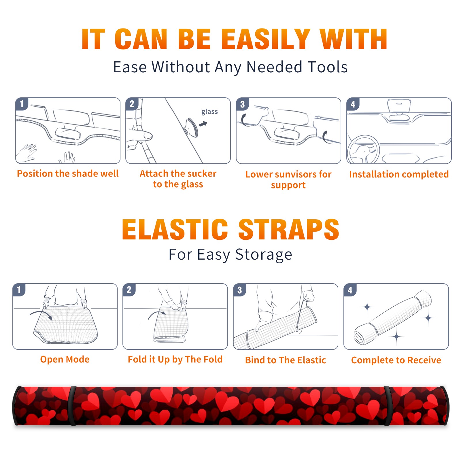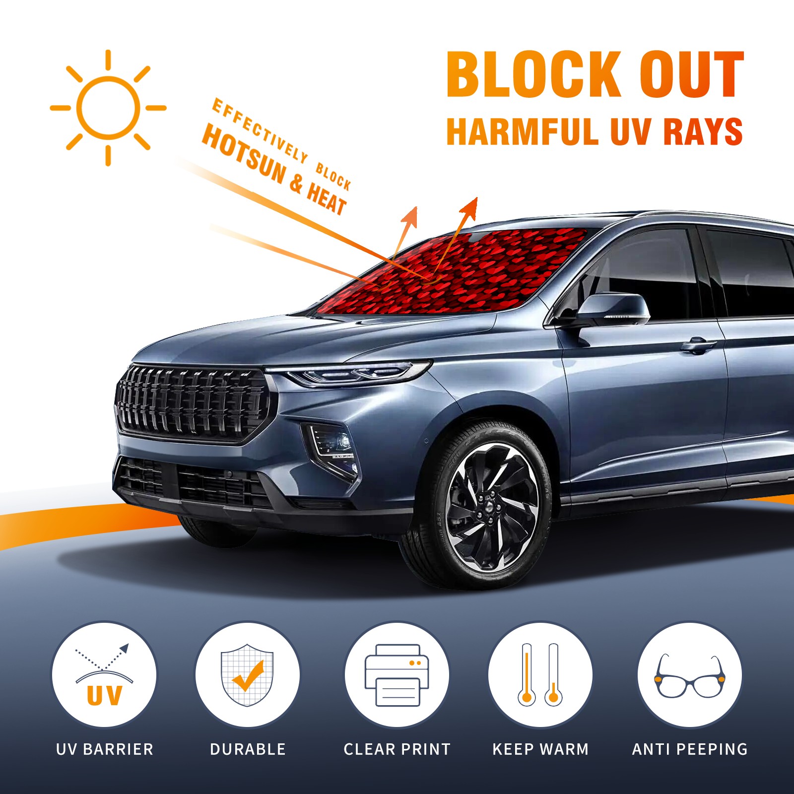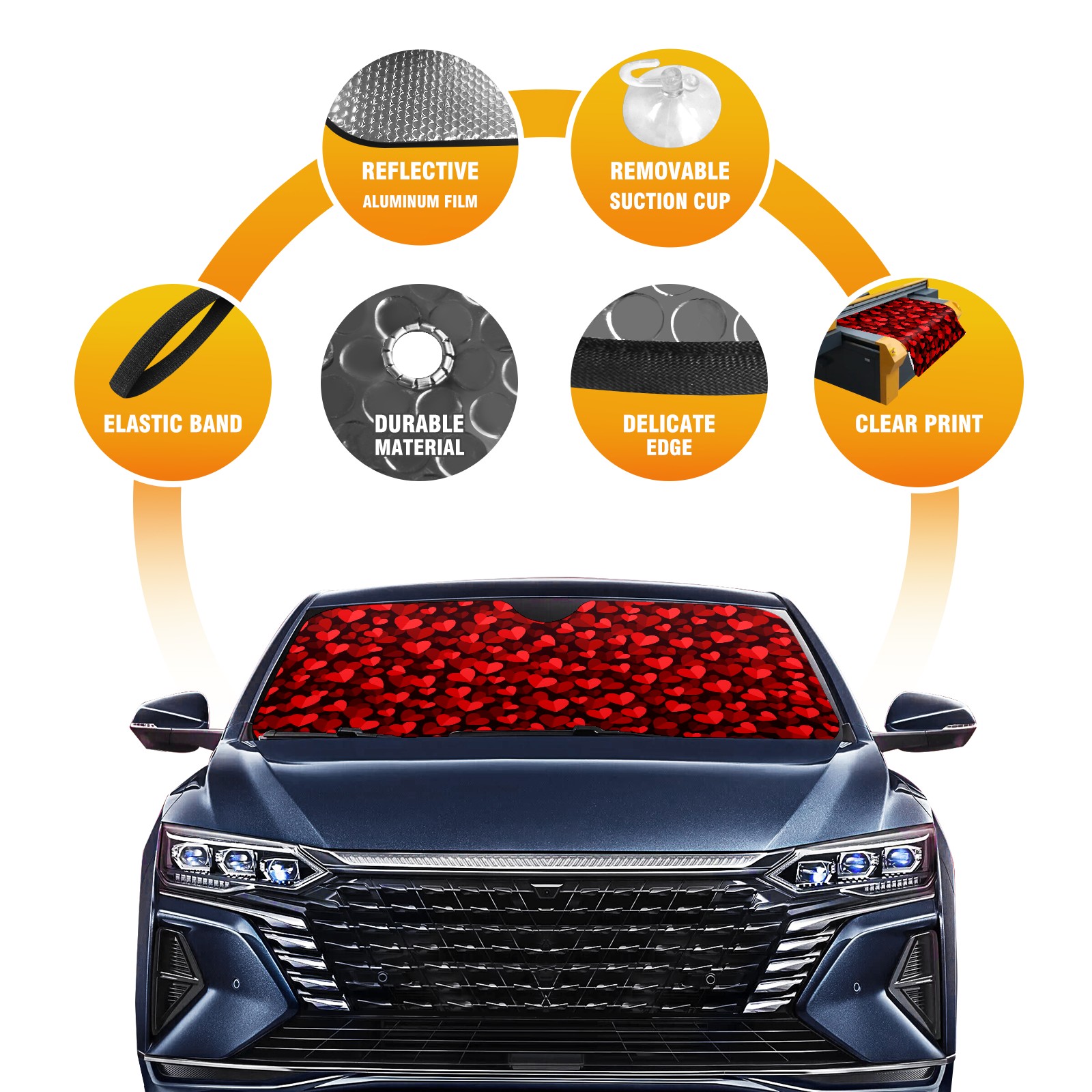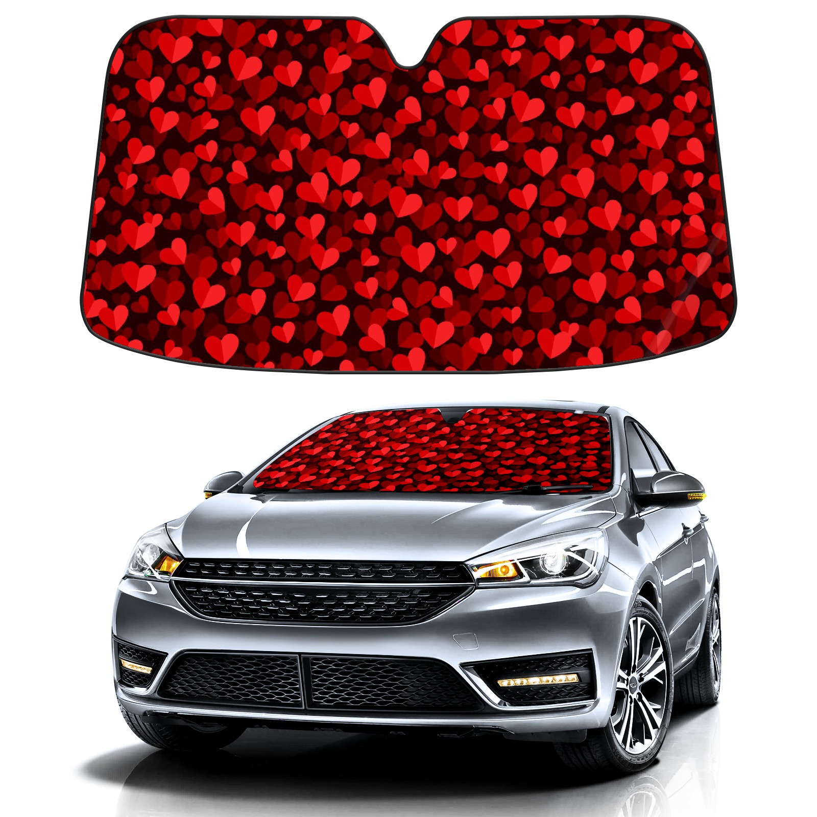 Car Windshield Sun Shade For Front Window Valentines Day Red Hearts Background [转换] Foldable Vehicle Windshield Car Sun Visor Covers Automotive Window Protector Car Camping Privacy Sun Blocker