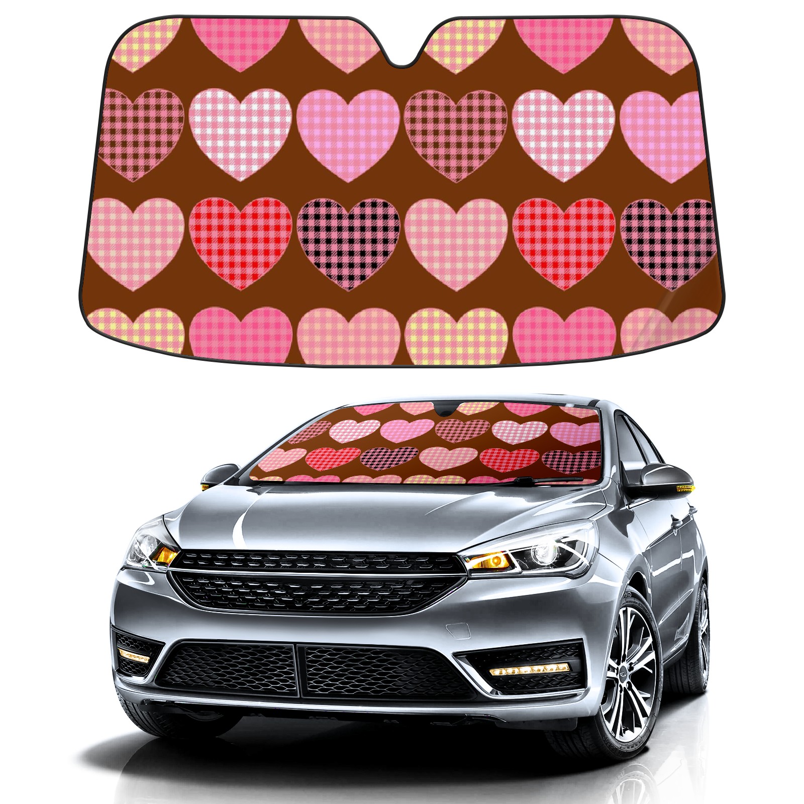 Car Windshield Sun Shade For Front Window Sweet Heart Love Foldable Vehicle Windshield Car Sun Visor Covers Automotive Window Protector Car Camping Privacy Sun Blocker