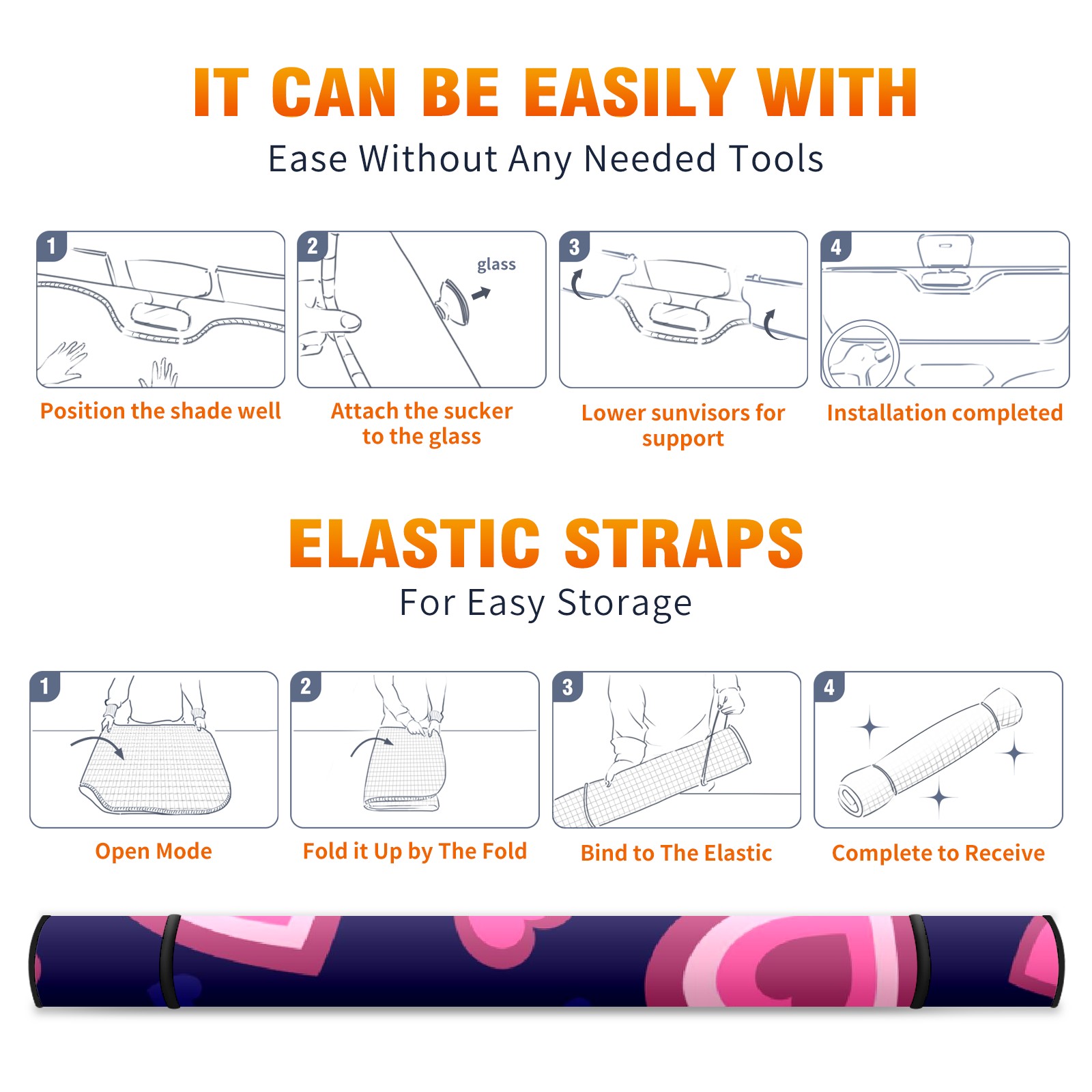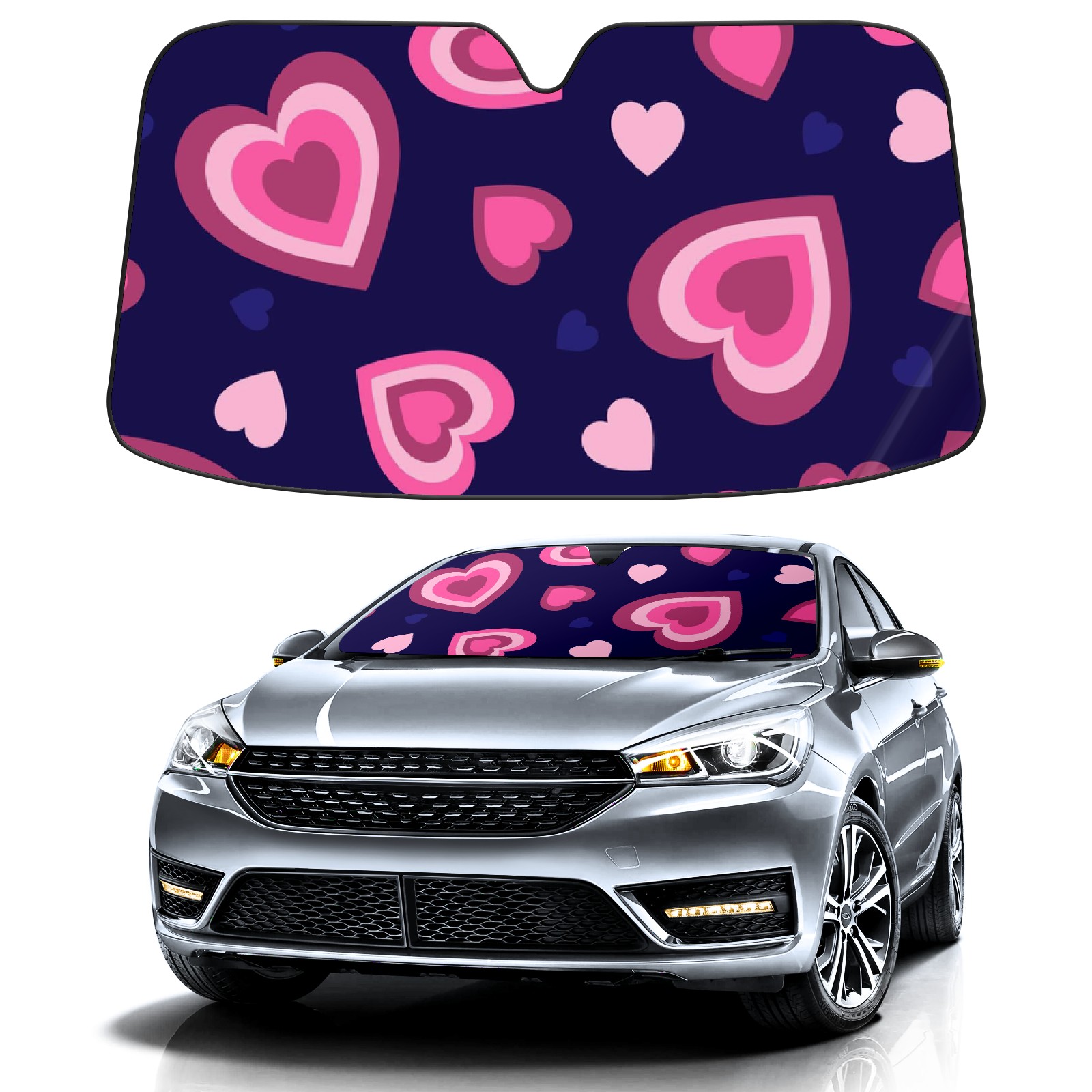 Car Windshield Sun Shade For Front Window Hearts Blue Pink Foldable Vehicle Windshield Car Sun Visor Covers Automotive Window Protector Car Camping Privacy Sun Blocker