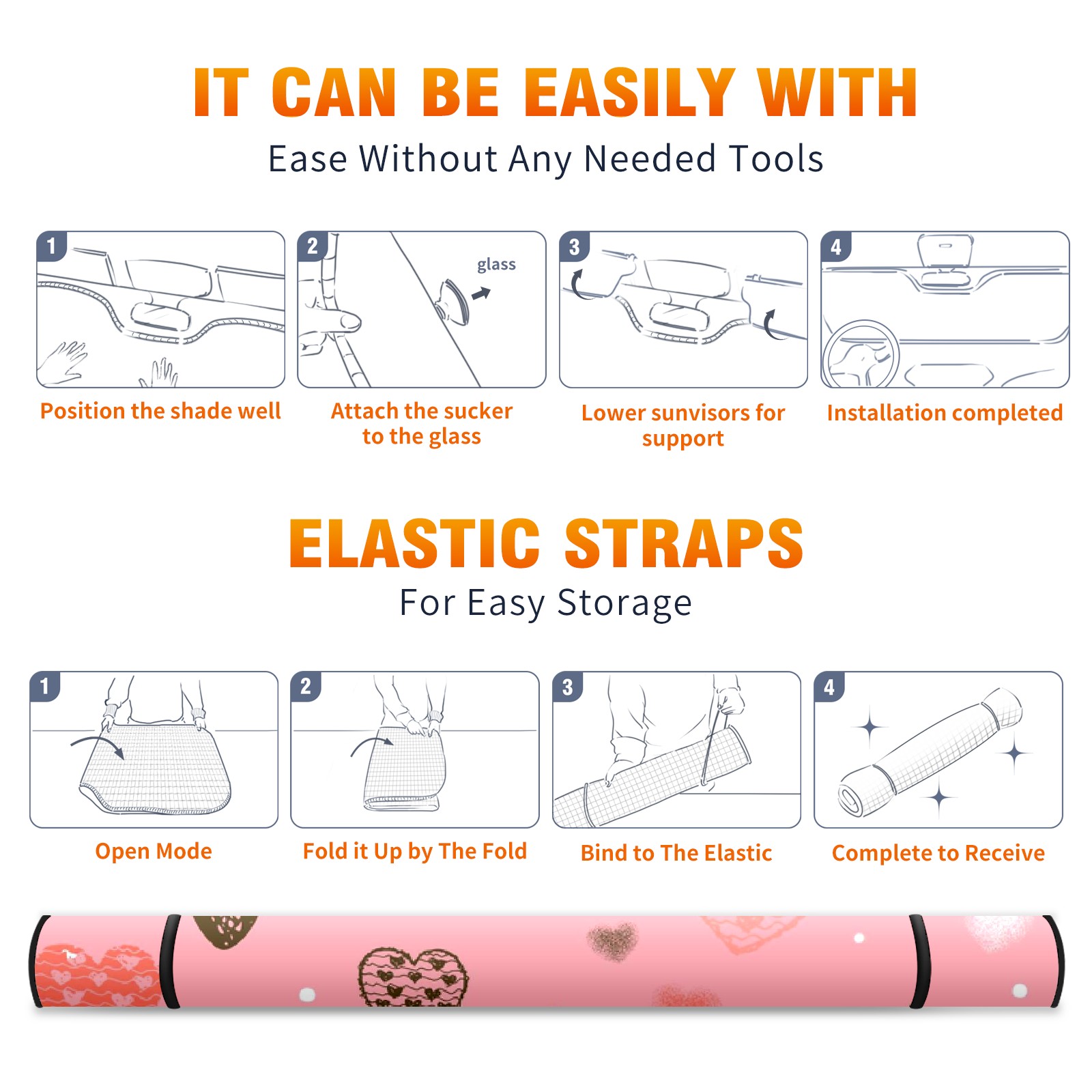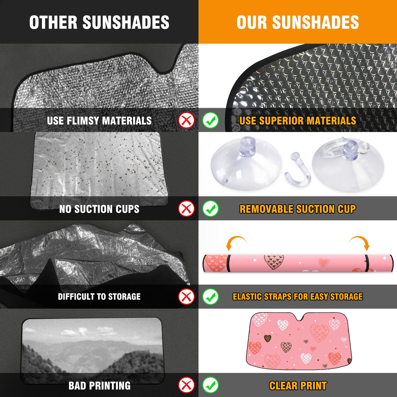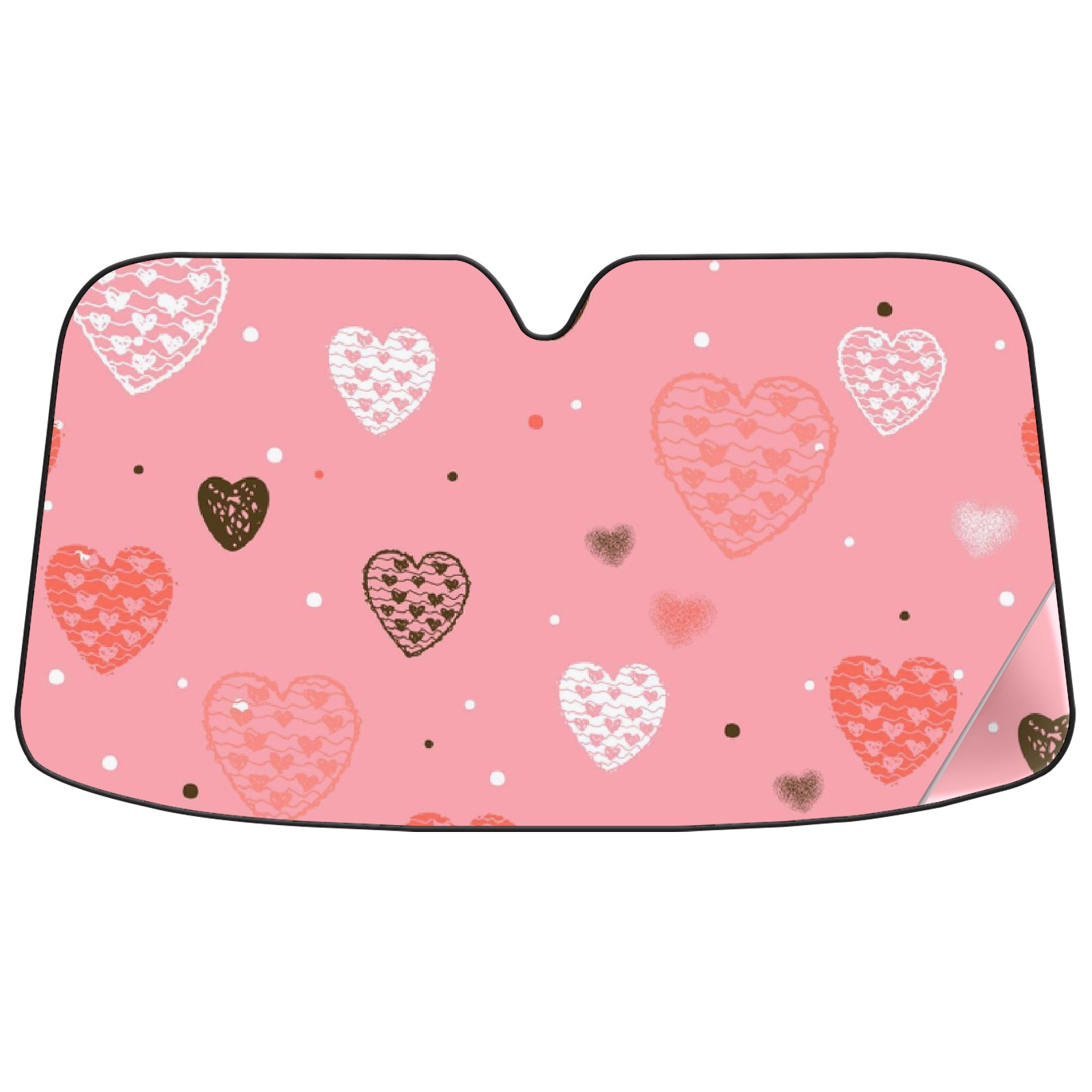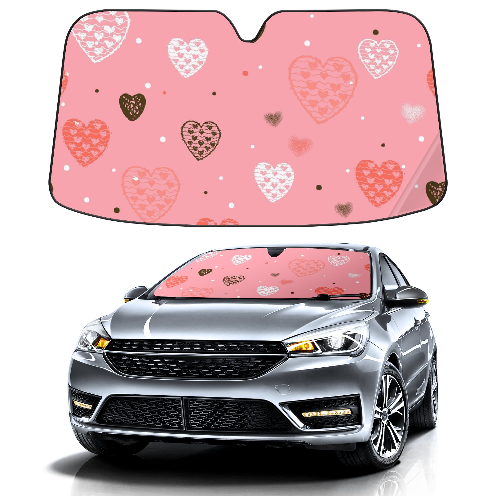 Car Windshield Sun Shade For Front Window Hearts Valentines Day Foldable Vehicle Windshield Car Sun Visor Covers Automotive Window Protector Car Camping Privacy Sun Blocker
