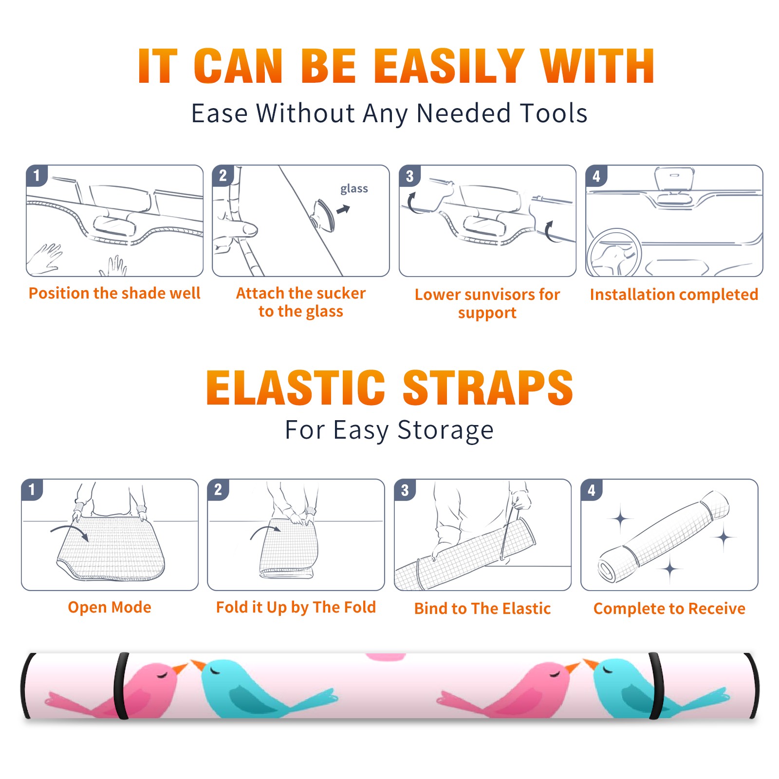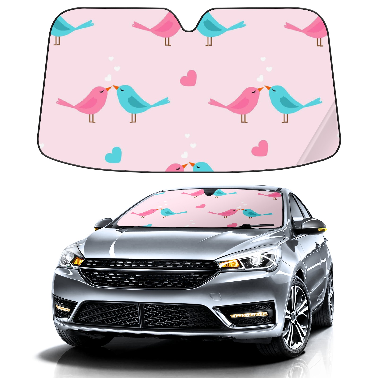 Car Windshield Sun Shade For Front Window Birds Hearts Lover Foldable Vehicle Windshield Car Sun Visor Covers Automotive Window Protector Car Camping Privacy Sun Blocker