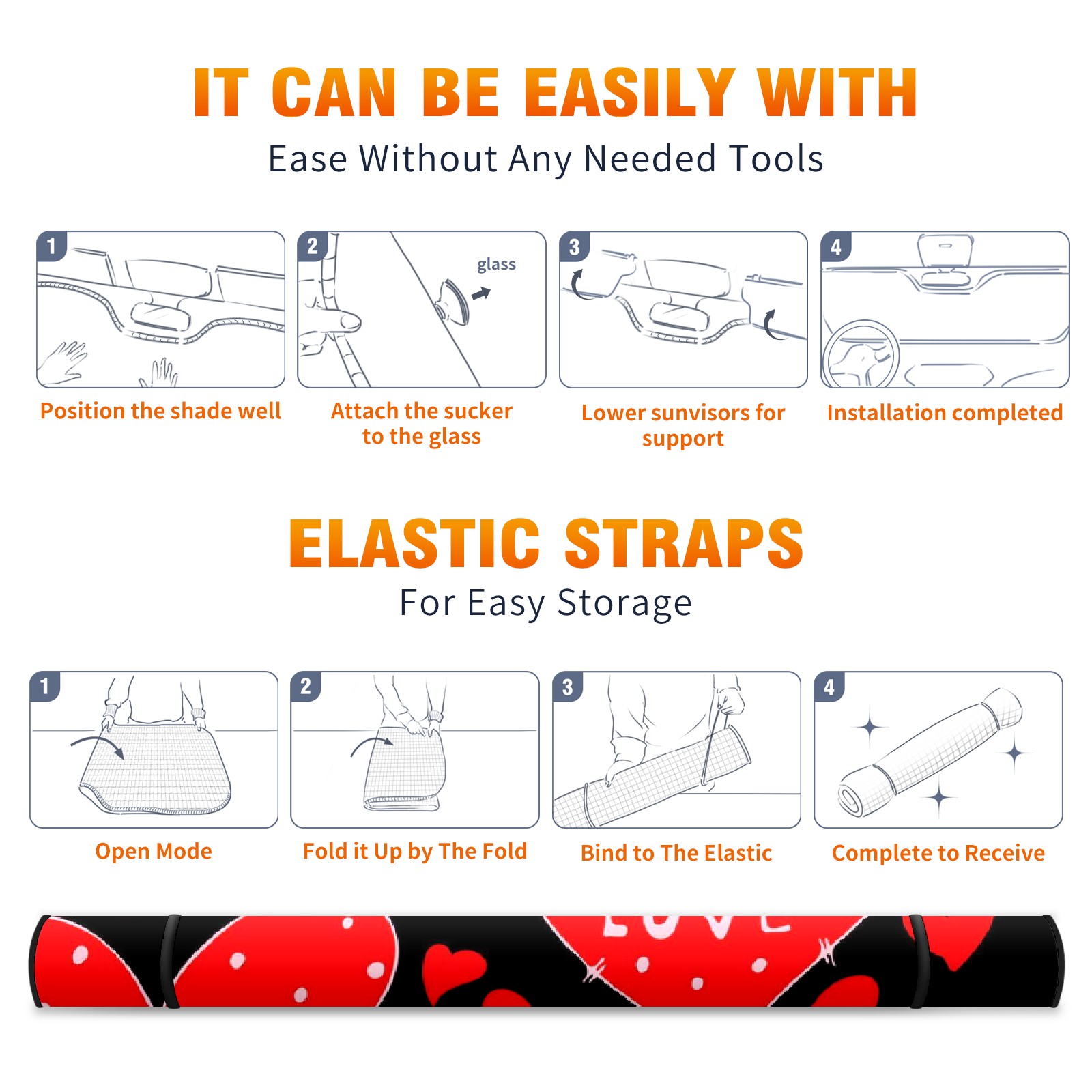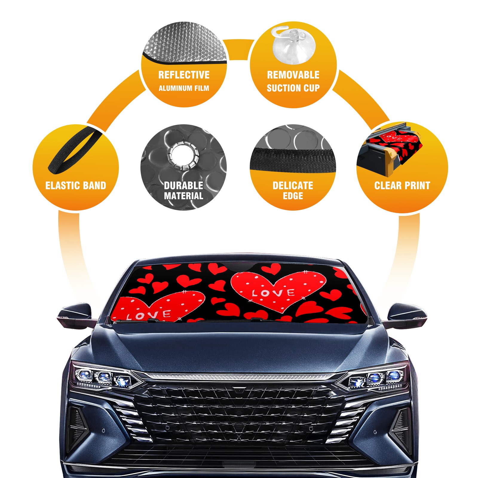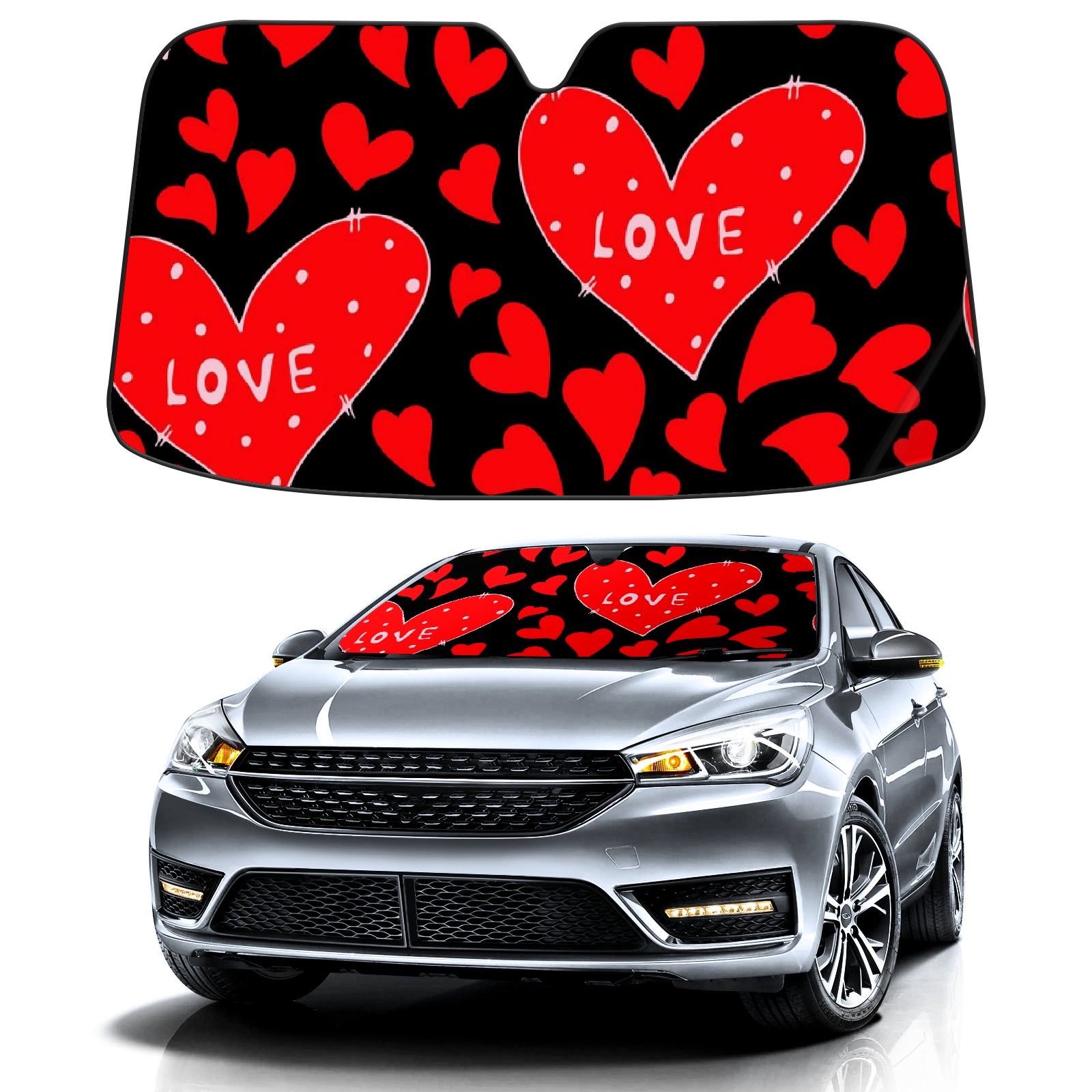Car Windshield Sun Shade For Front Window Hearts Red Foldable Vehicle Windshield Car Sun Visor Covers Automotive Window Protector Car Camping Privacy Sun Blocker
