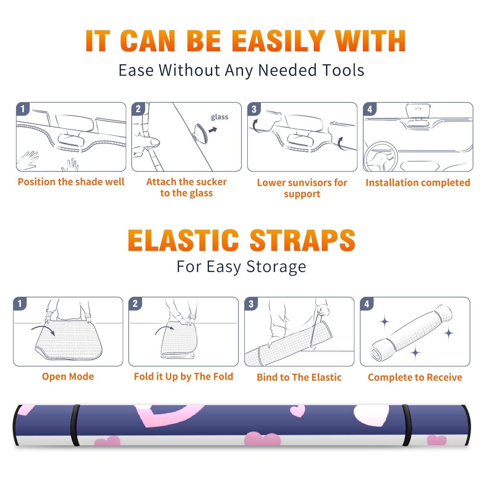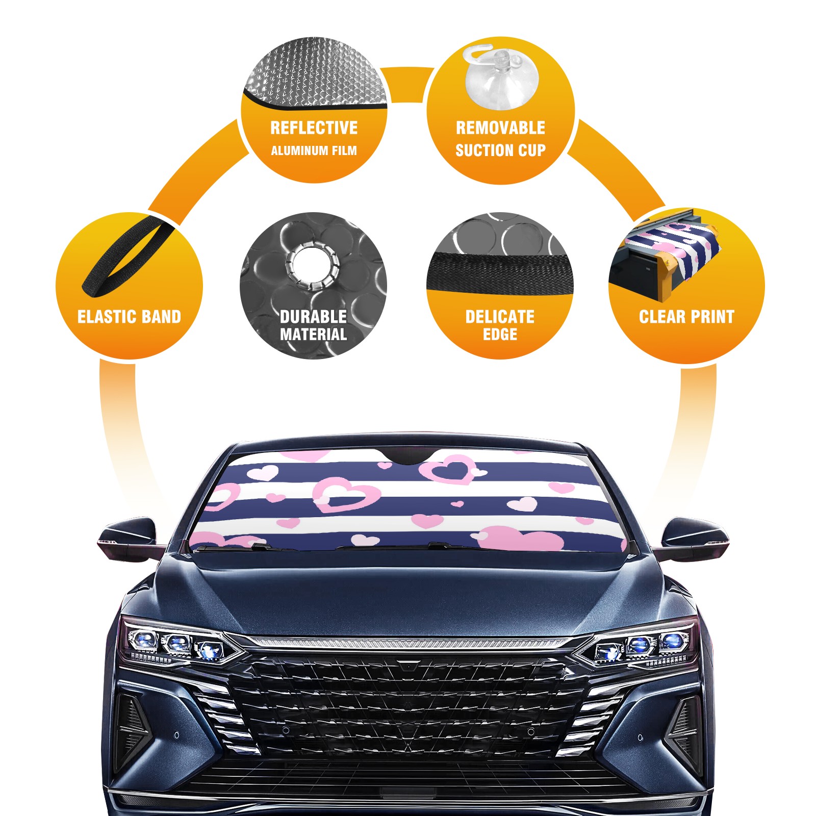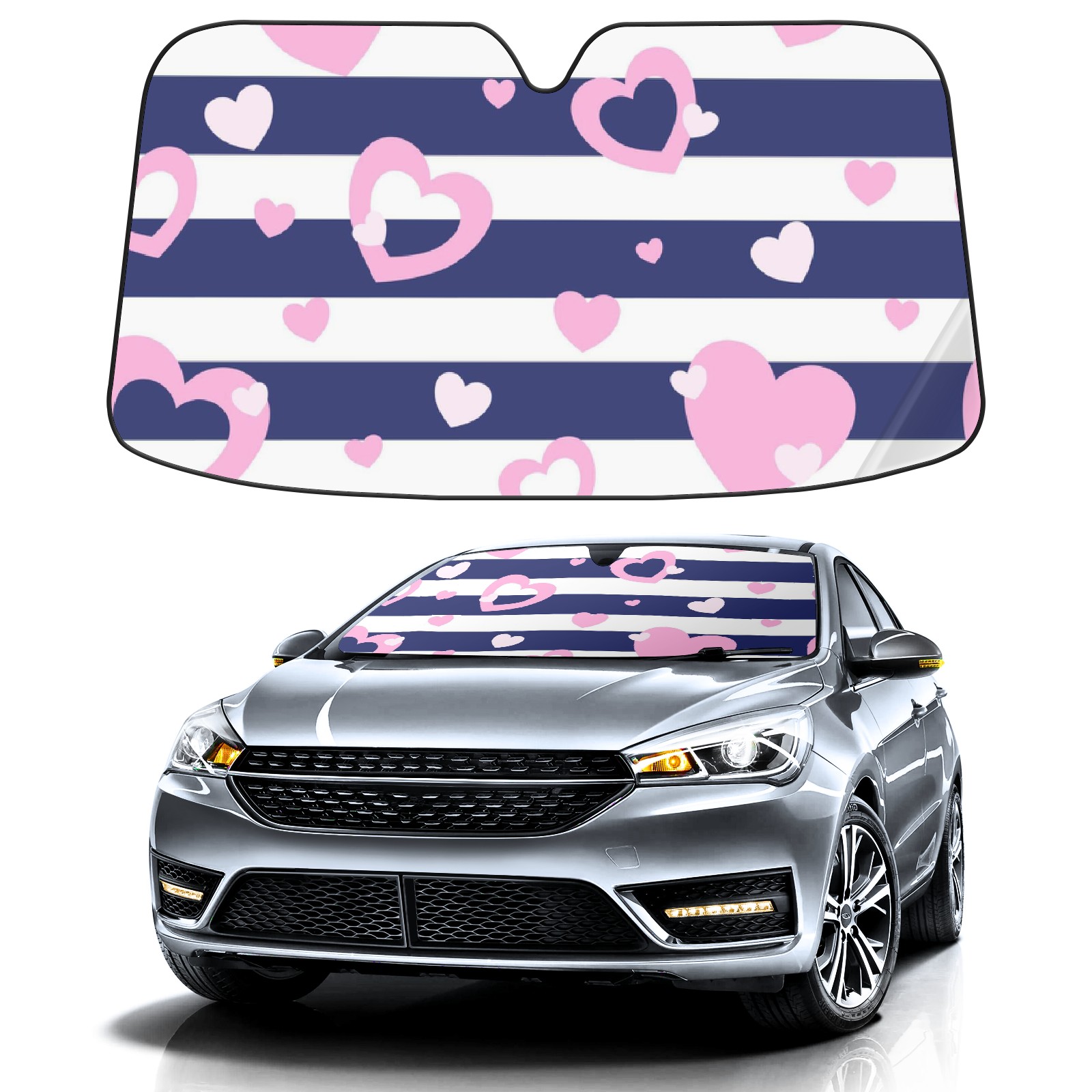 Car Windshield Sun Shade For Front Window Hearts Love Pink Foldable Vehicle Windshield Car Sun Visor Covers Automotive Window Protector Car Camping Privacy Sun Blocker