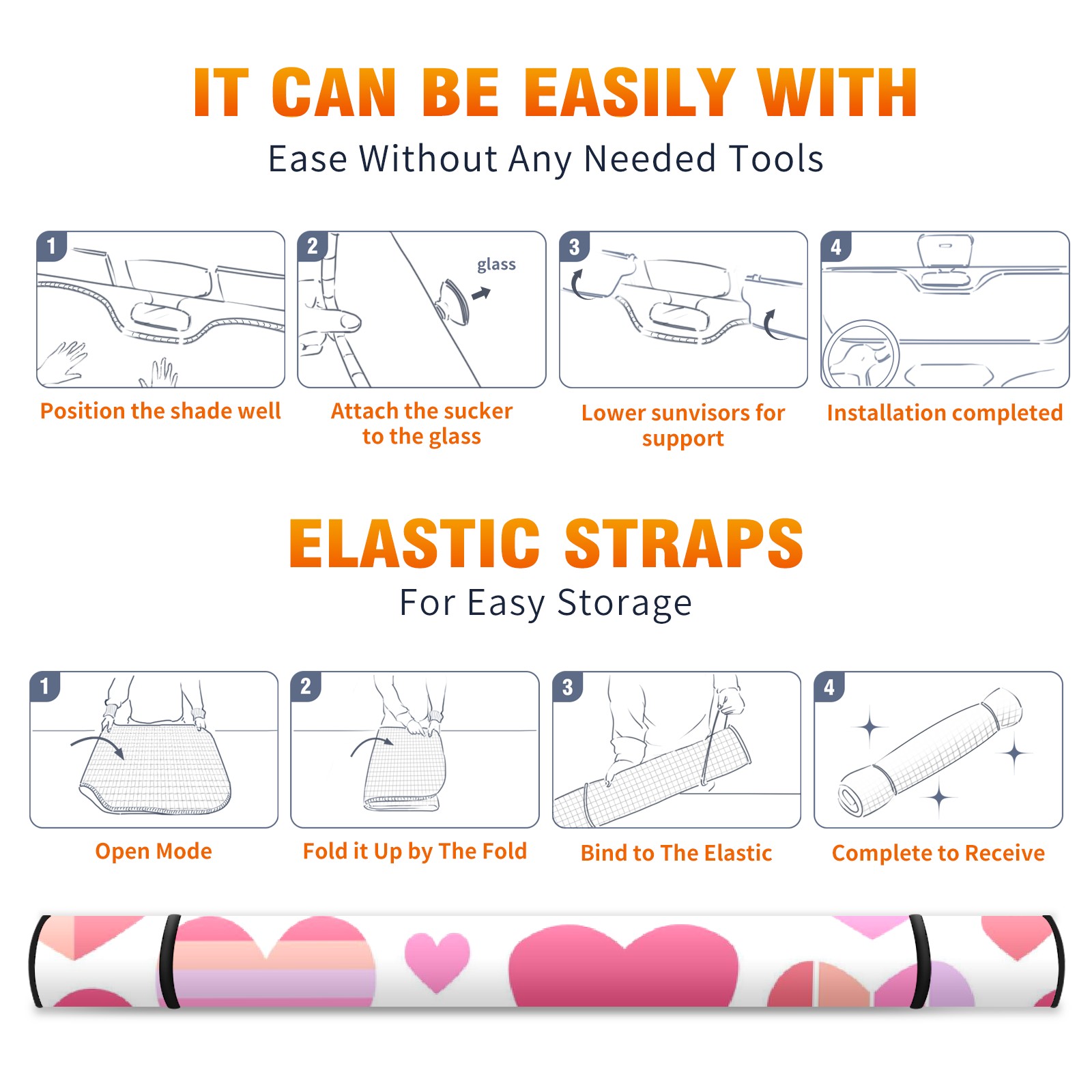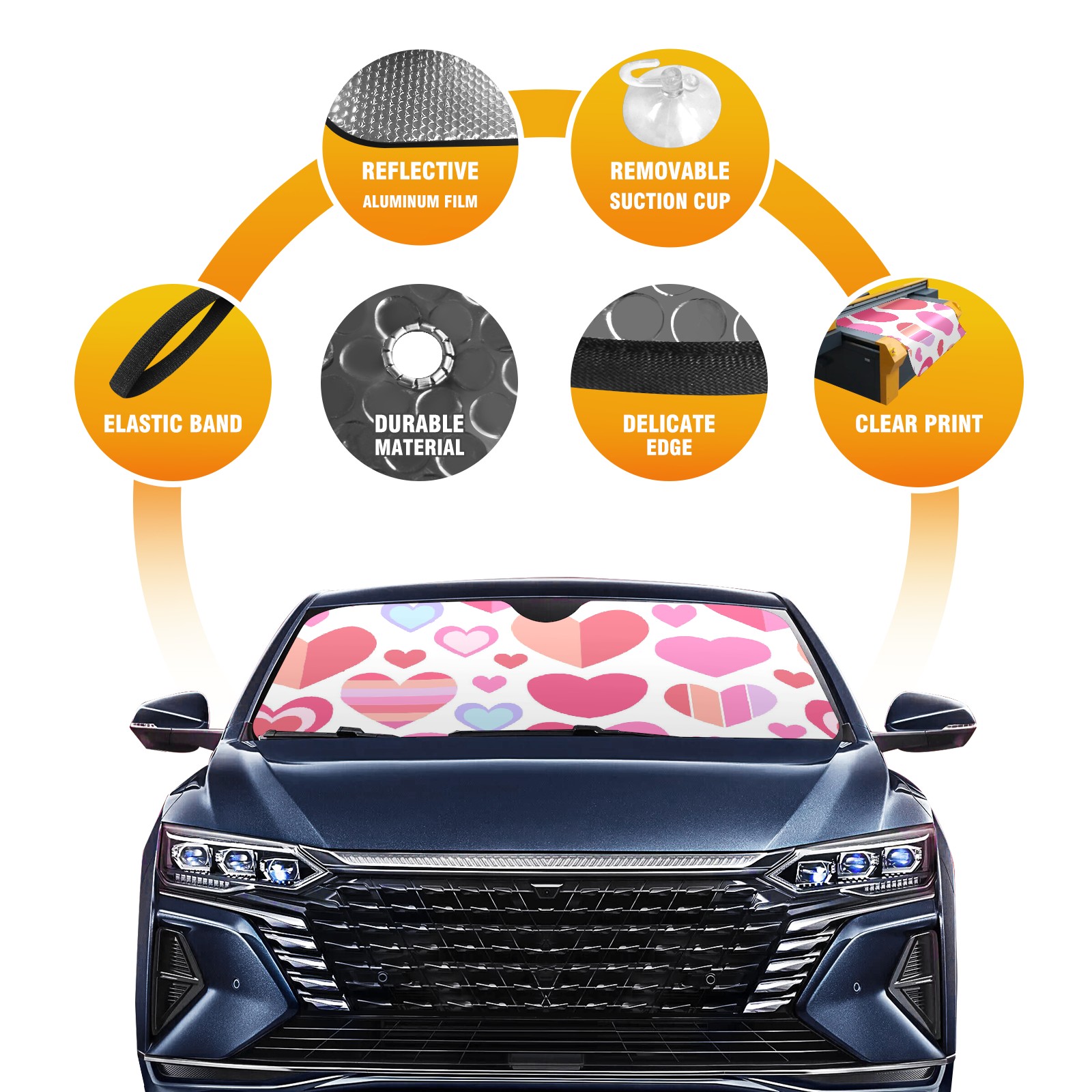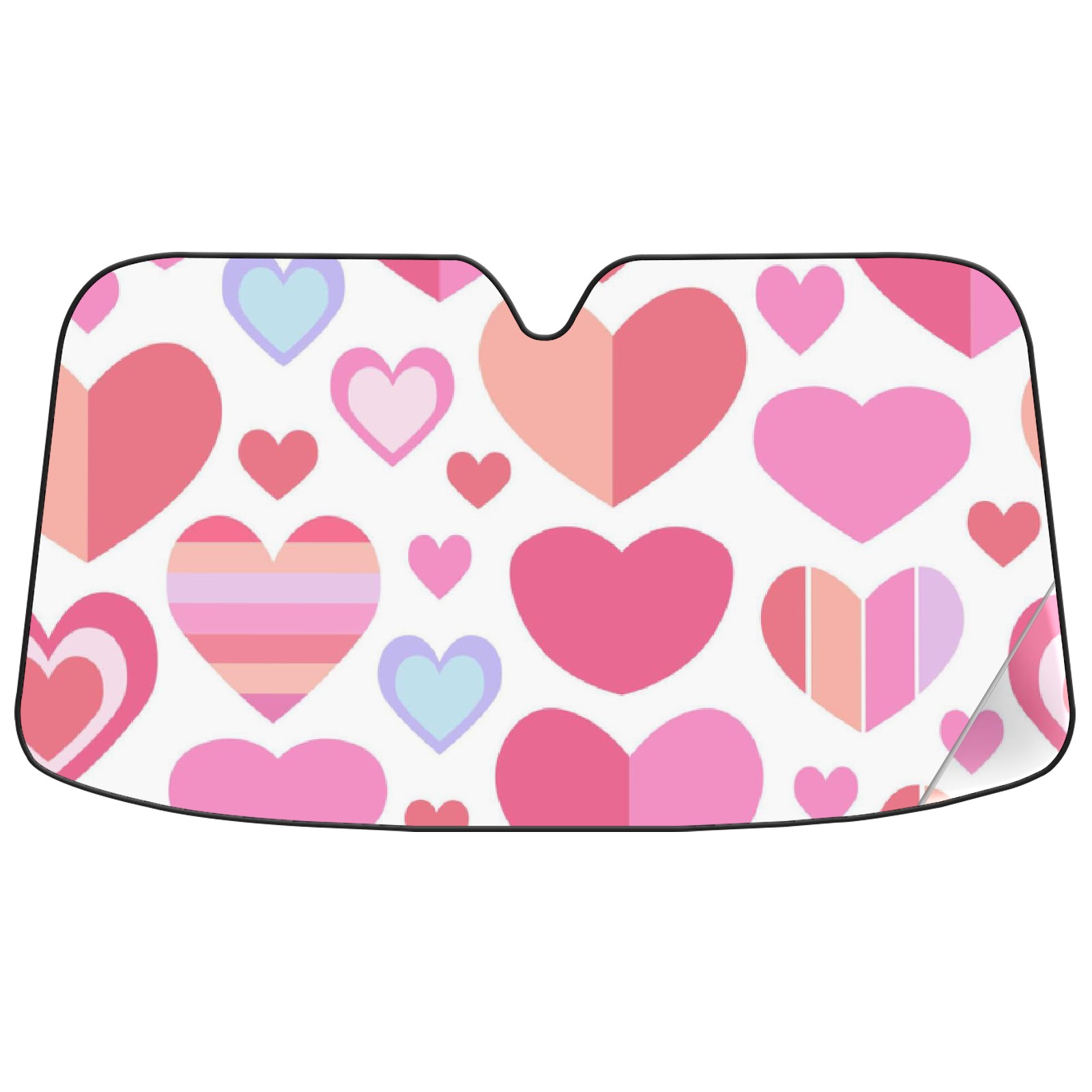 Car Windshield Sun Shade For Front Window Love Hearts Foldable Vehicle Windshield Car Sun Visor Covers Automotive Window Protector Car Camping Privacy Sun Blocker
