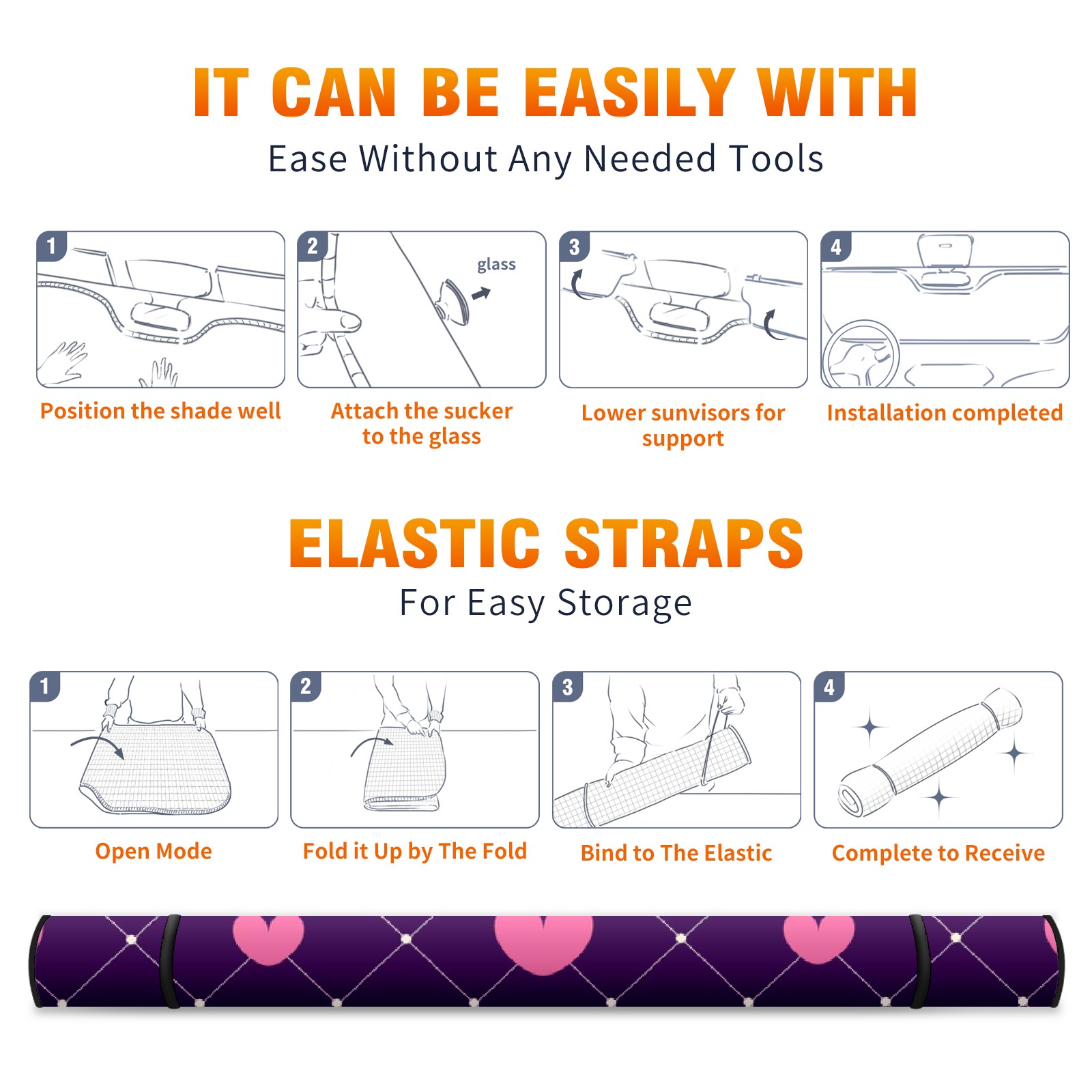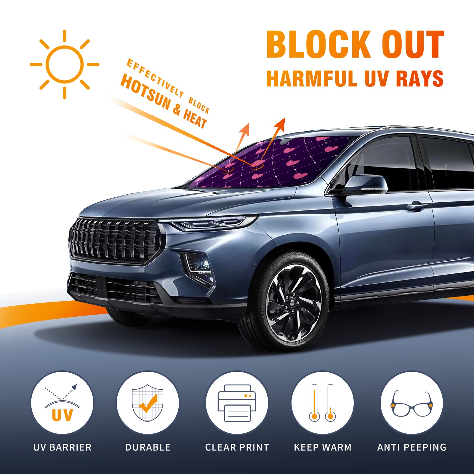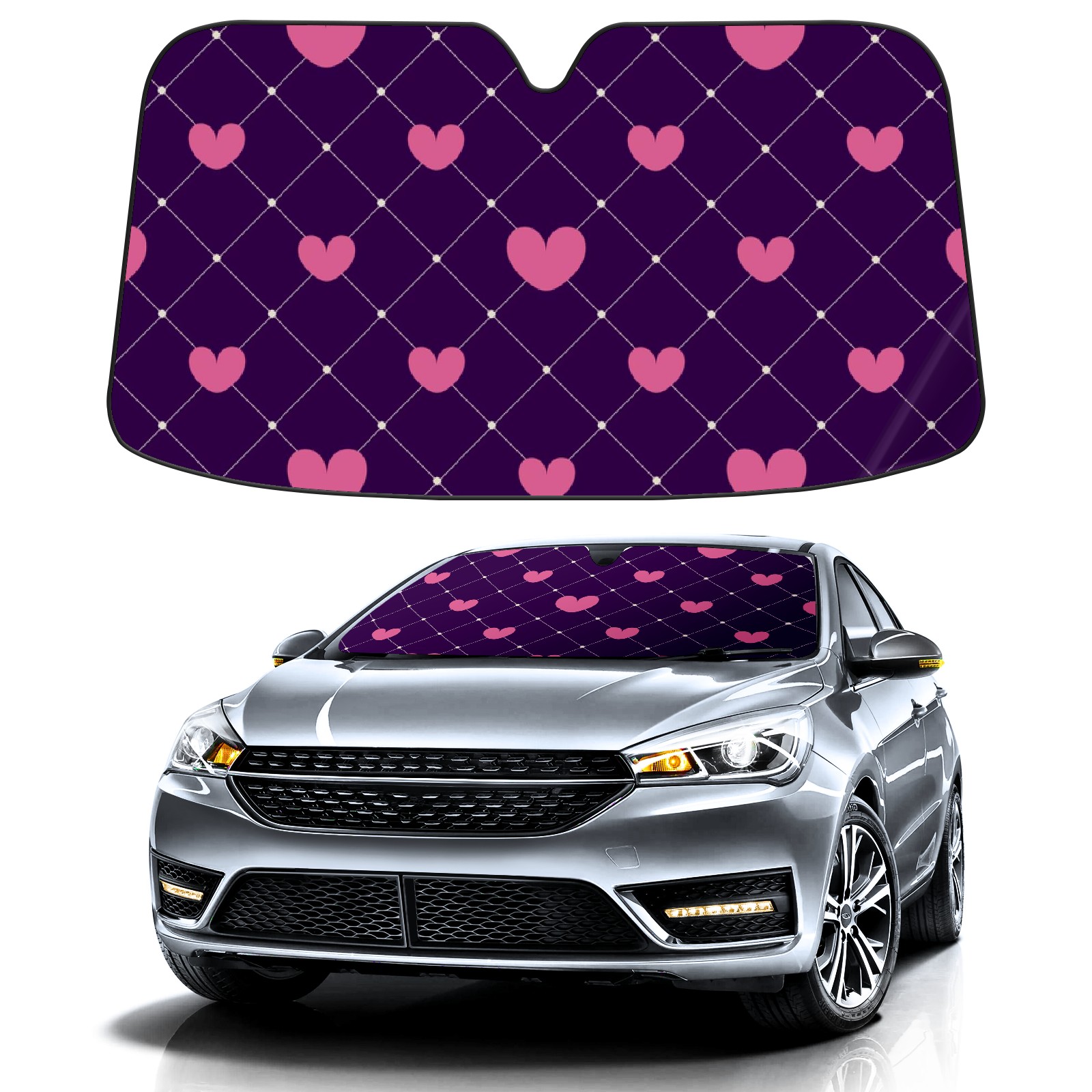 Car Windshield Sun Shade For Front Window Pink Hearts Foldable Vehicle Windshield Car Sun Visor Covers Automotive Window Protector Car Camping Privacy Sun Blocker