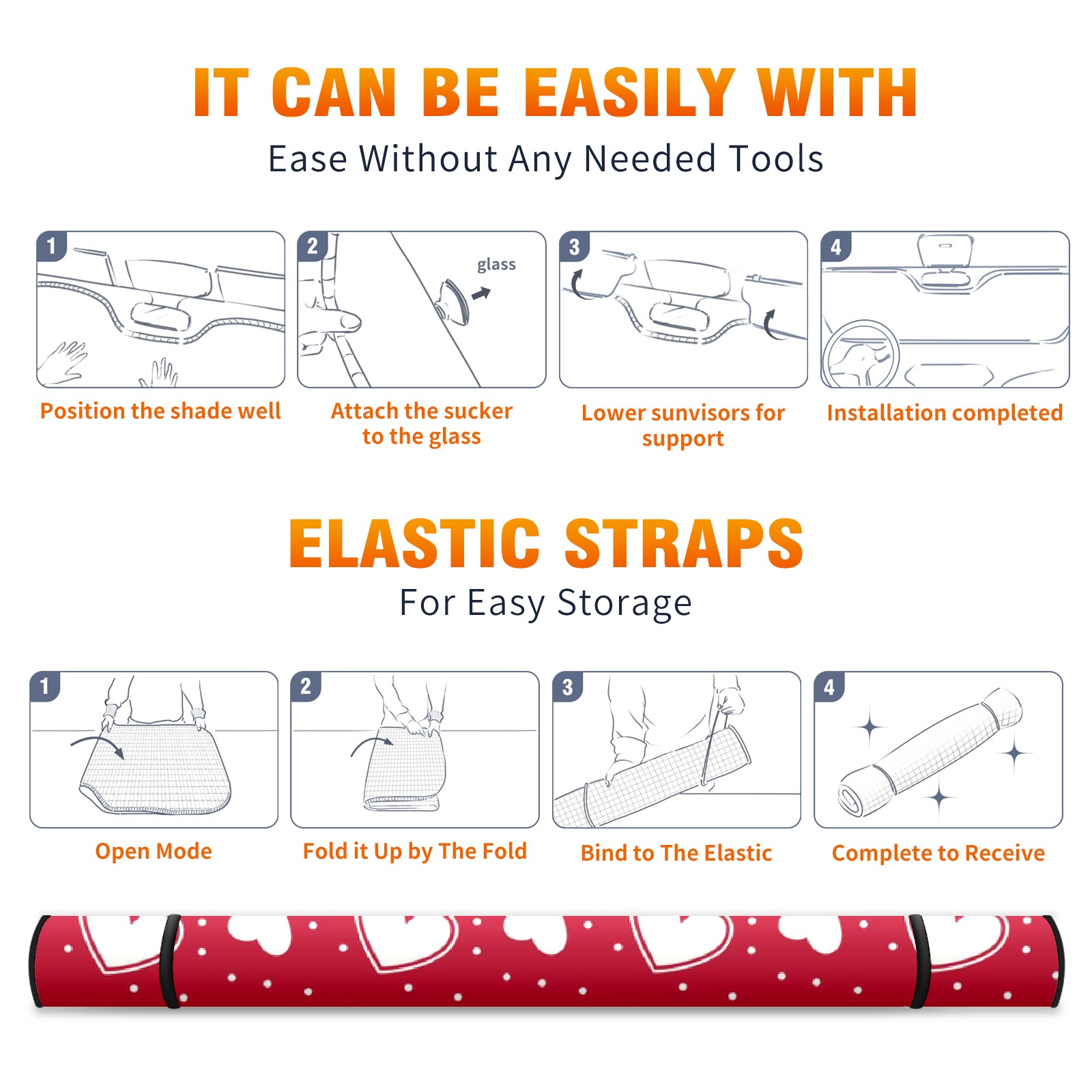 Car Windshield Sun Shade For Front Window Love Valentine Day Foldable Vehicle Windshield Car Sun Visor Covers Automotive Window Protector Car Camping Privacy Sun Blocker