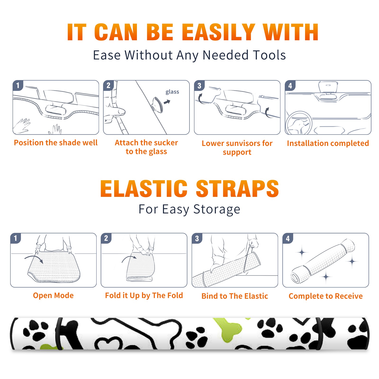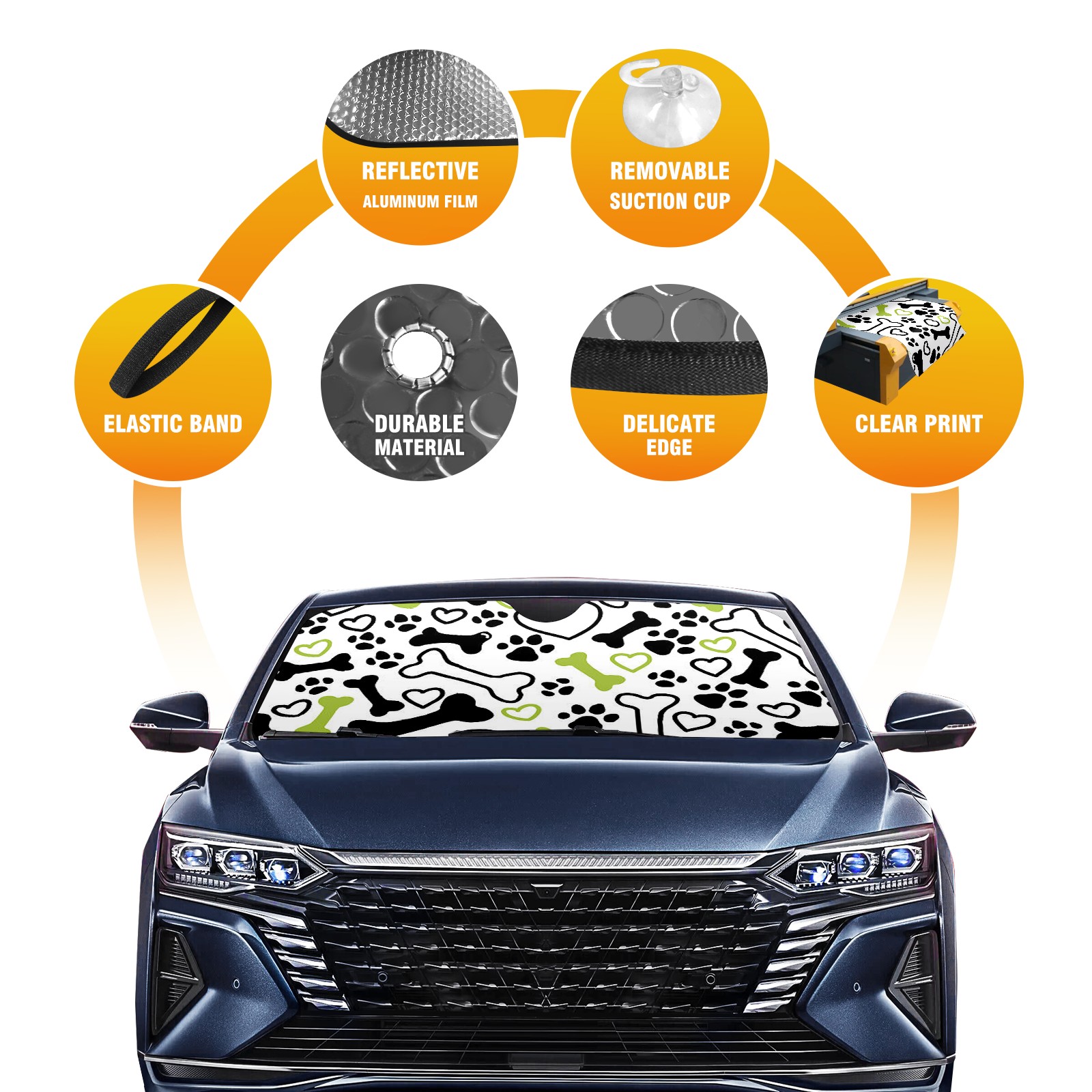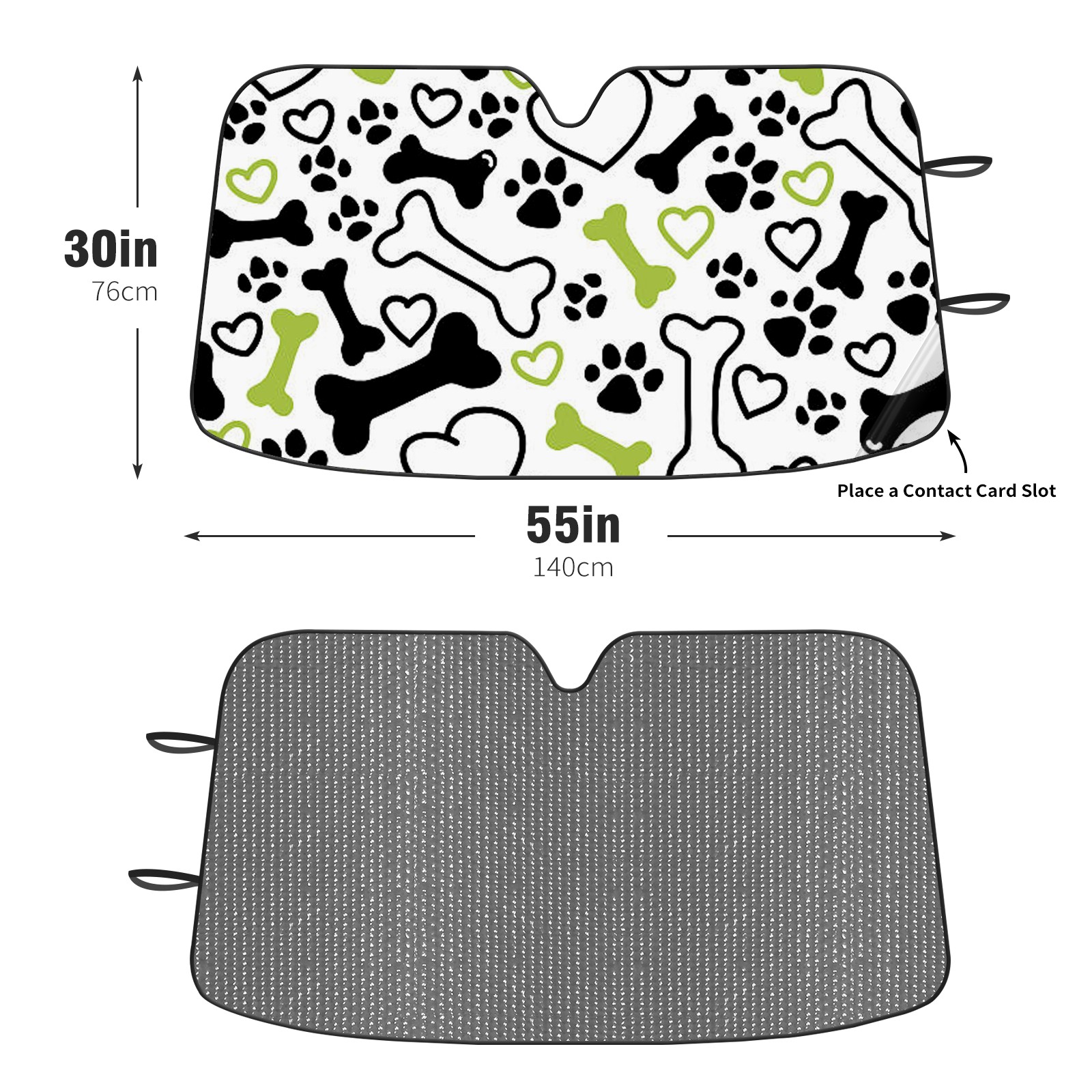 Car Windshield Sun Shade For Front Window Pawprint Bone Heart Foldable Vehicle Windshield Car Sun Visor Covers Automotive Window Protector Car Camping Privacy Sun Blocker