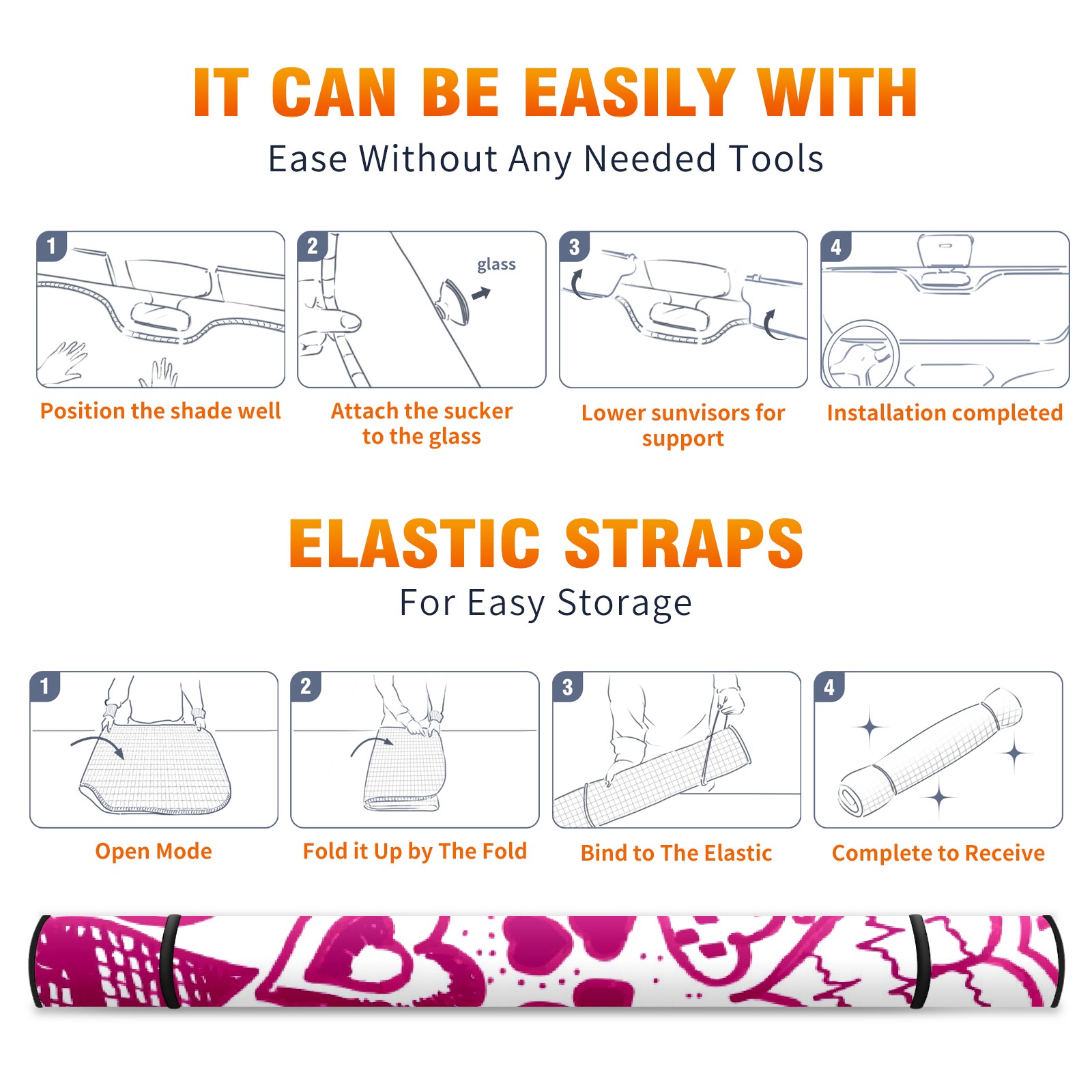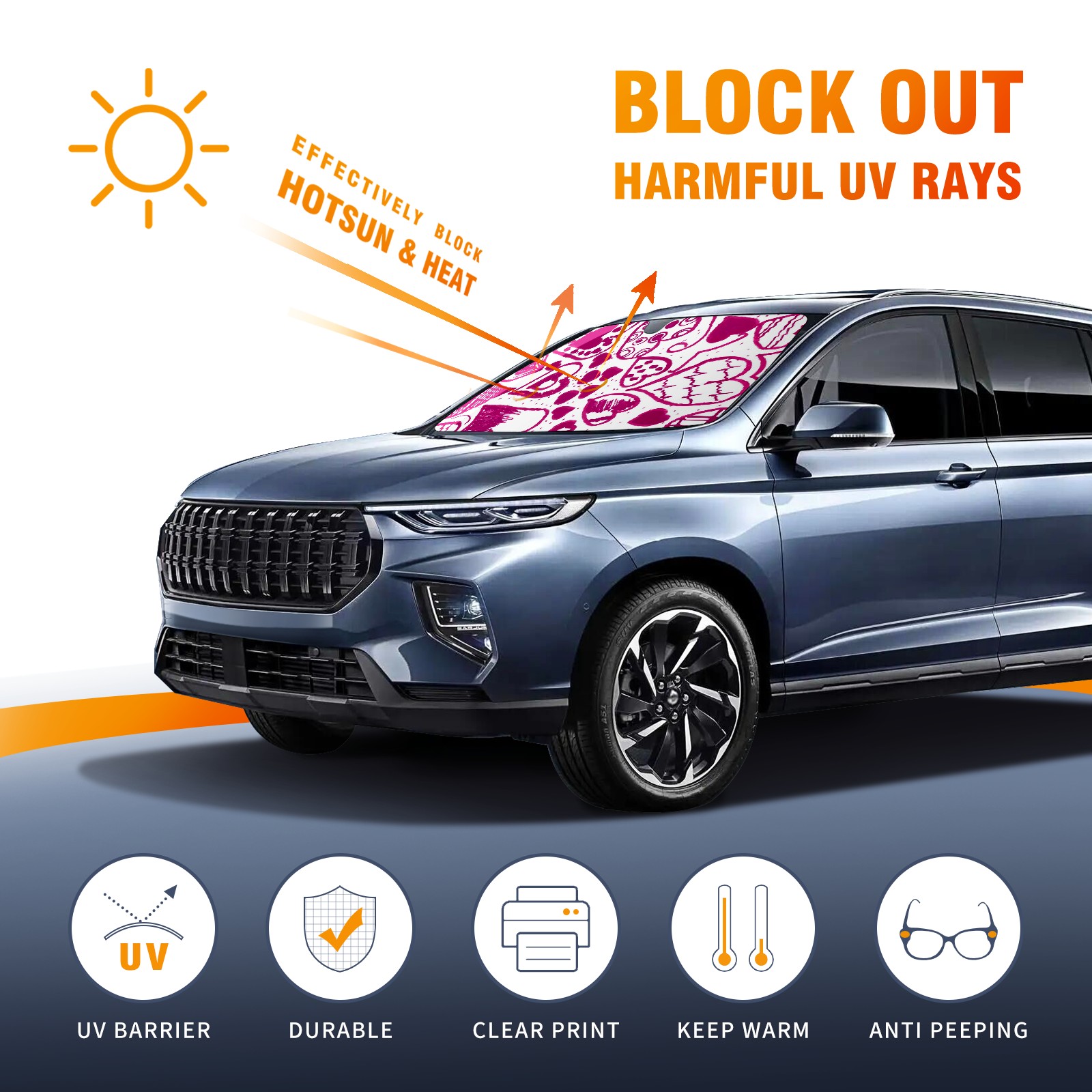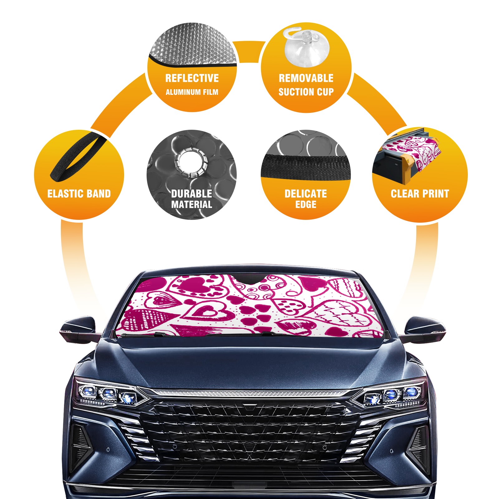 Car Windshield Sun Shade For Front Window Pink Heart Love Foldable Vehicle Windshield Car Sun Visor Covers Automotive Window Protector Car Camping Privacy Sun Blocker