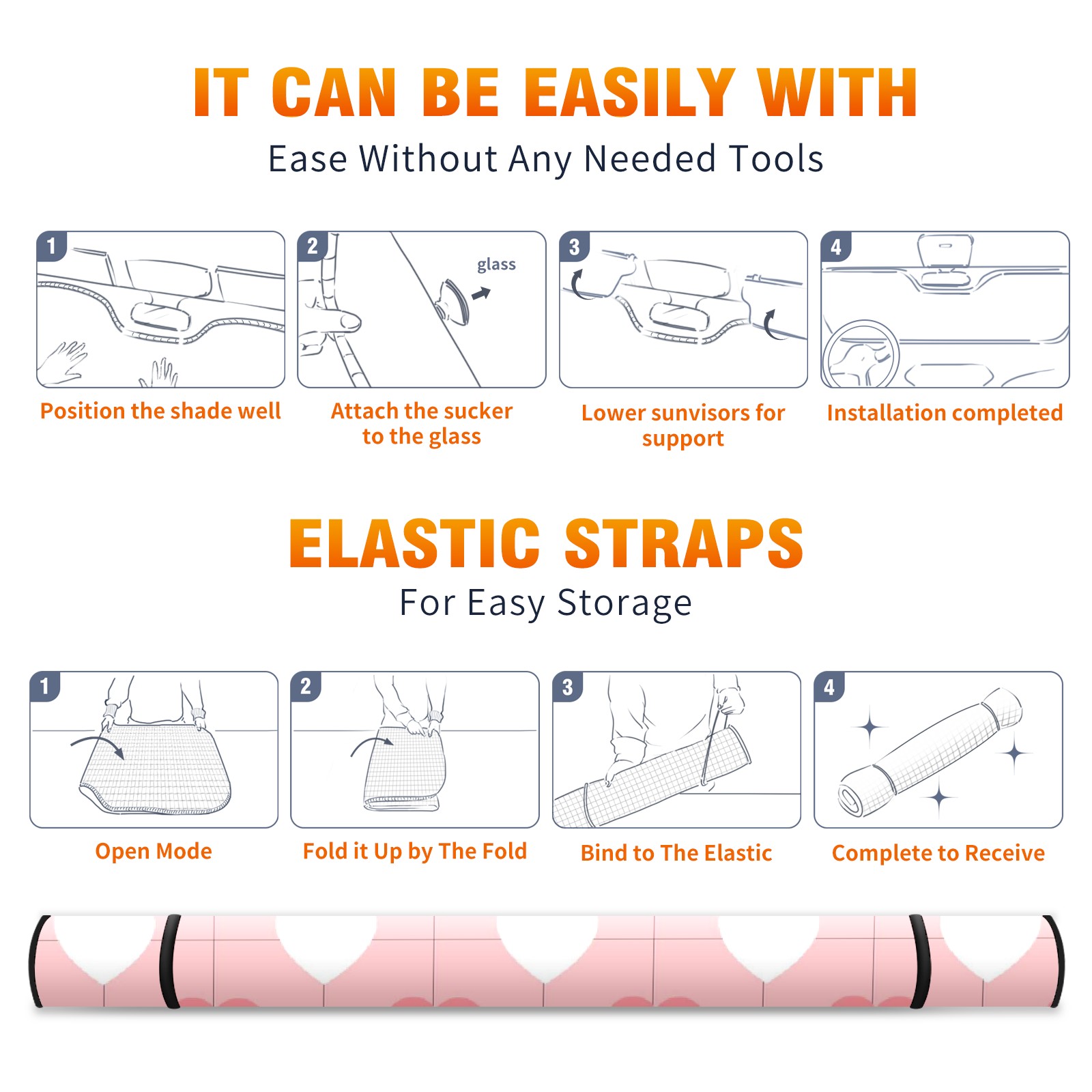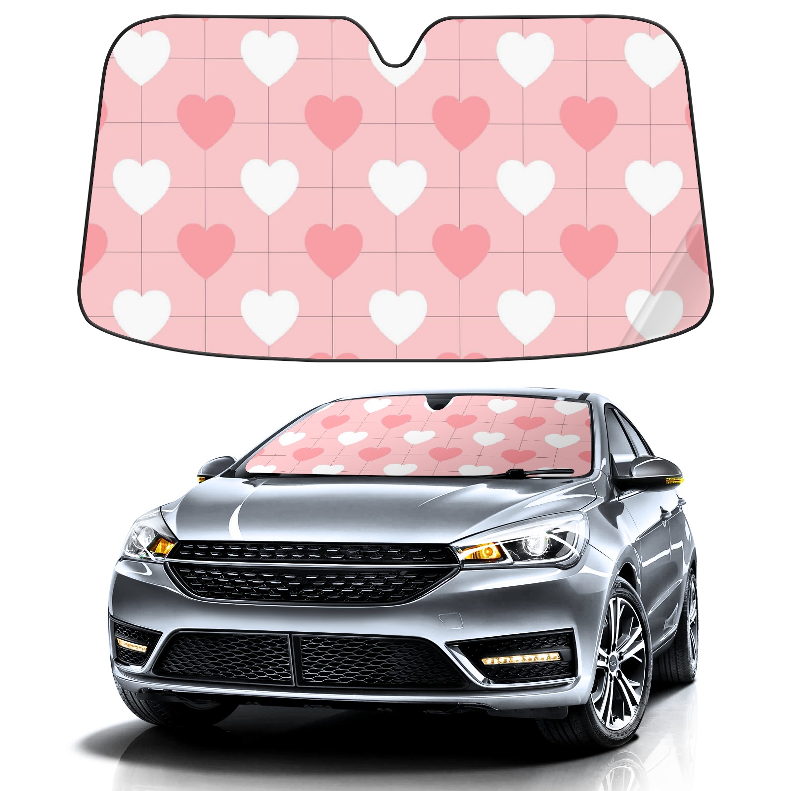 Car Windshield Sun Shade For Front Window Heart Lover Pink Foldable Vehicle Windshield Car Sun Visor Covers Automotive Window Protector Car Camping Privacy Sun Blocker