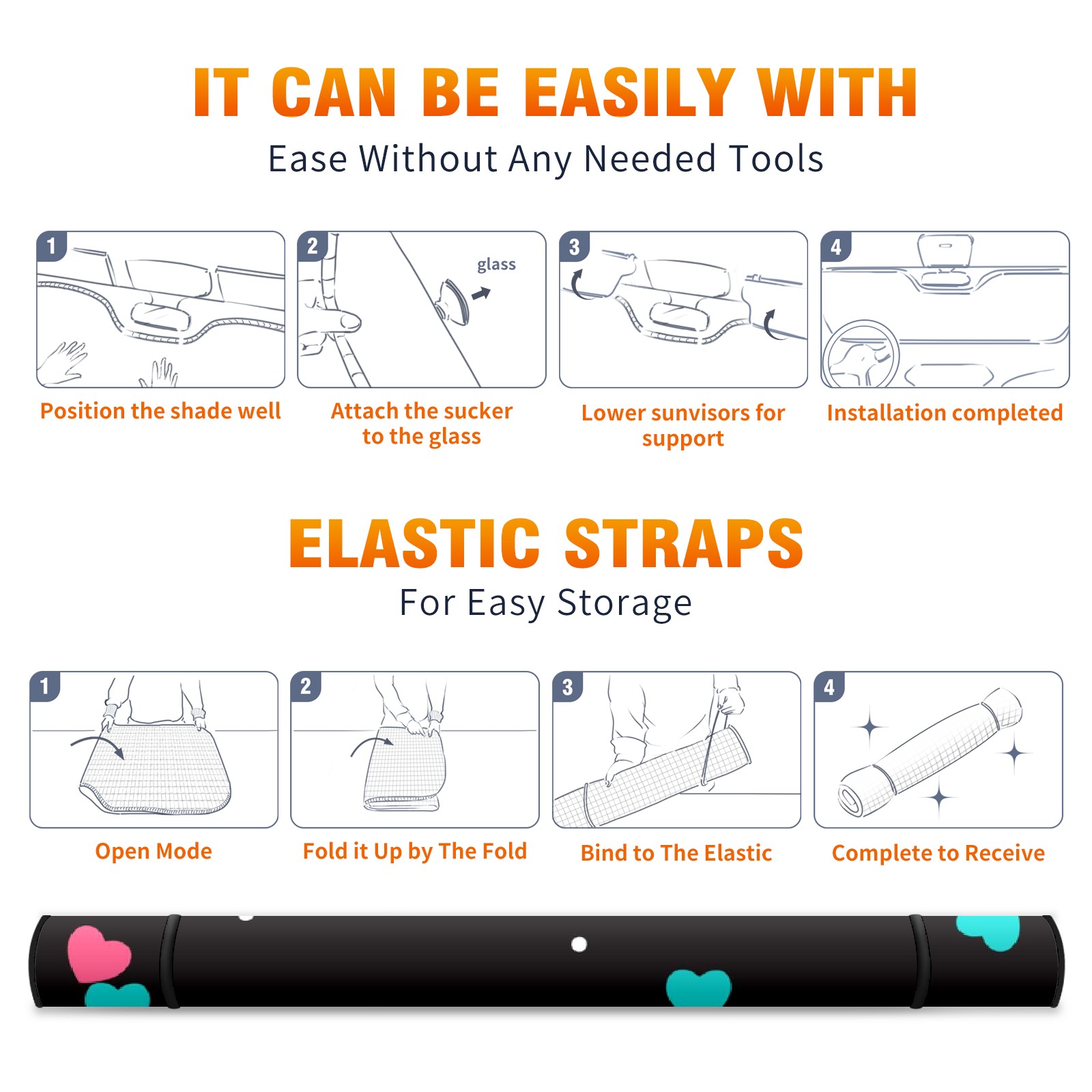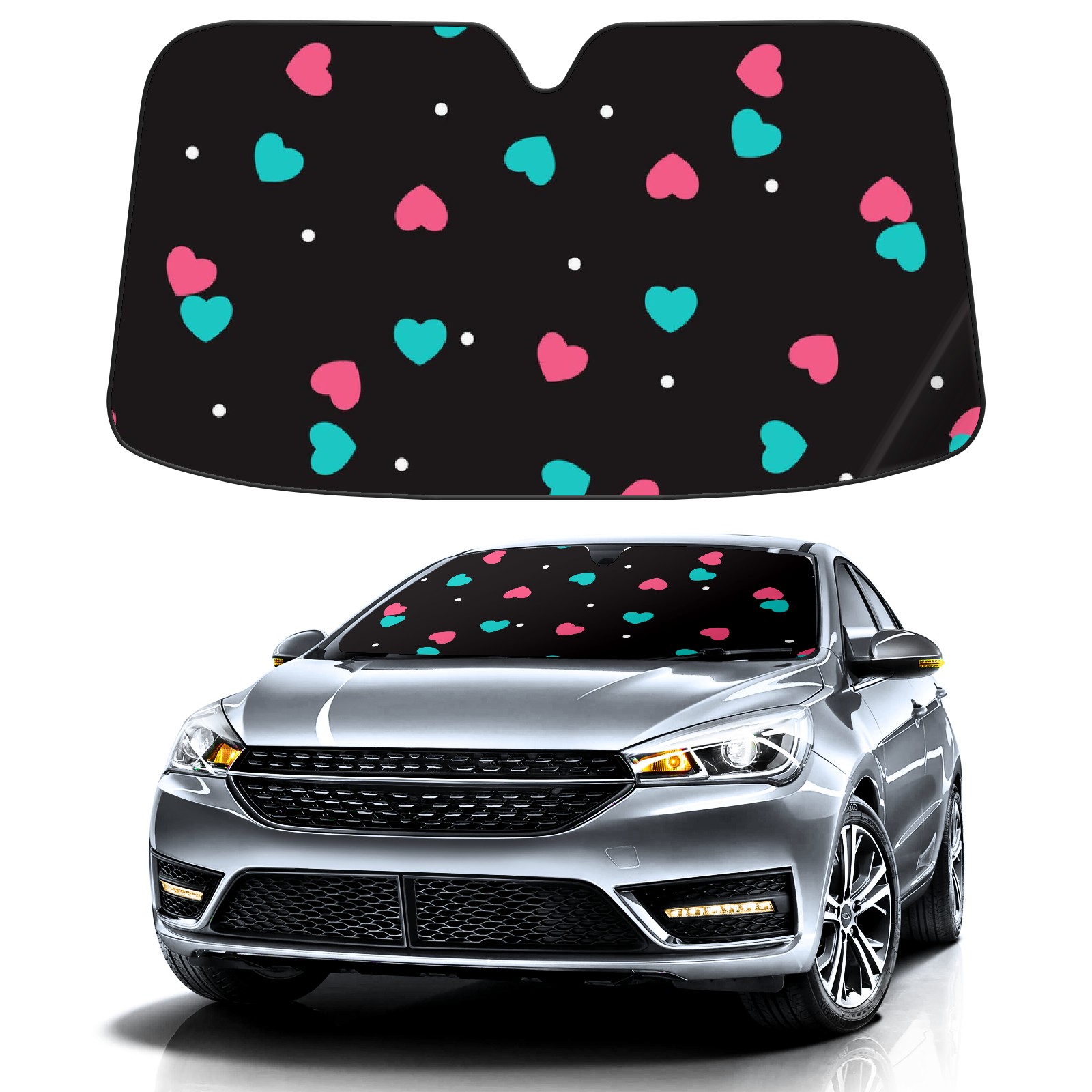 Car Windshield Sun Shade For Front Window Love Heart Pink Blue Foldable Vehicle Windshield Car Sun Visor Covers Automotive Window Protector Car Camping Privacy Sun Blocker