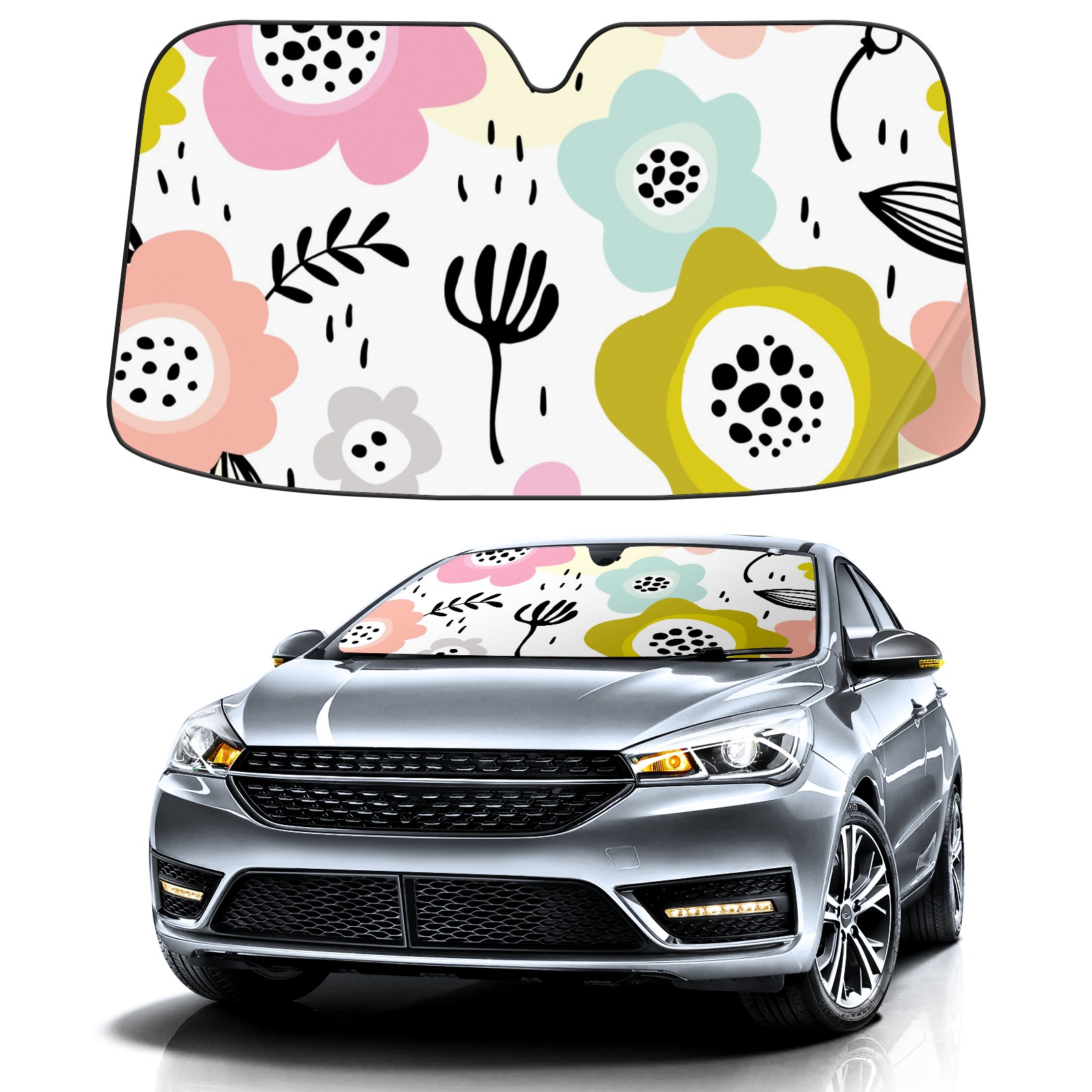 Car Windshield Sun Shade For Front Window Flower Element Foldable Vehicle Windshield Car Sun Visor Covers Automotive Window Protector Car Camping Privacy Sun Blocker