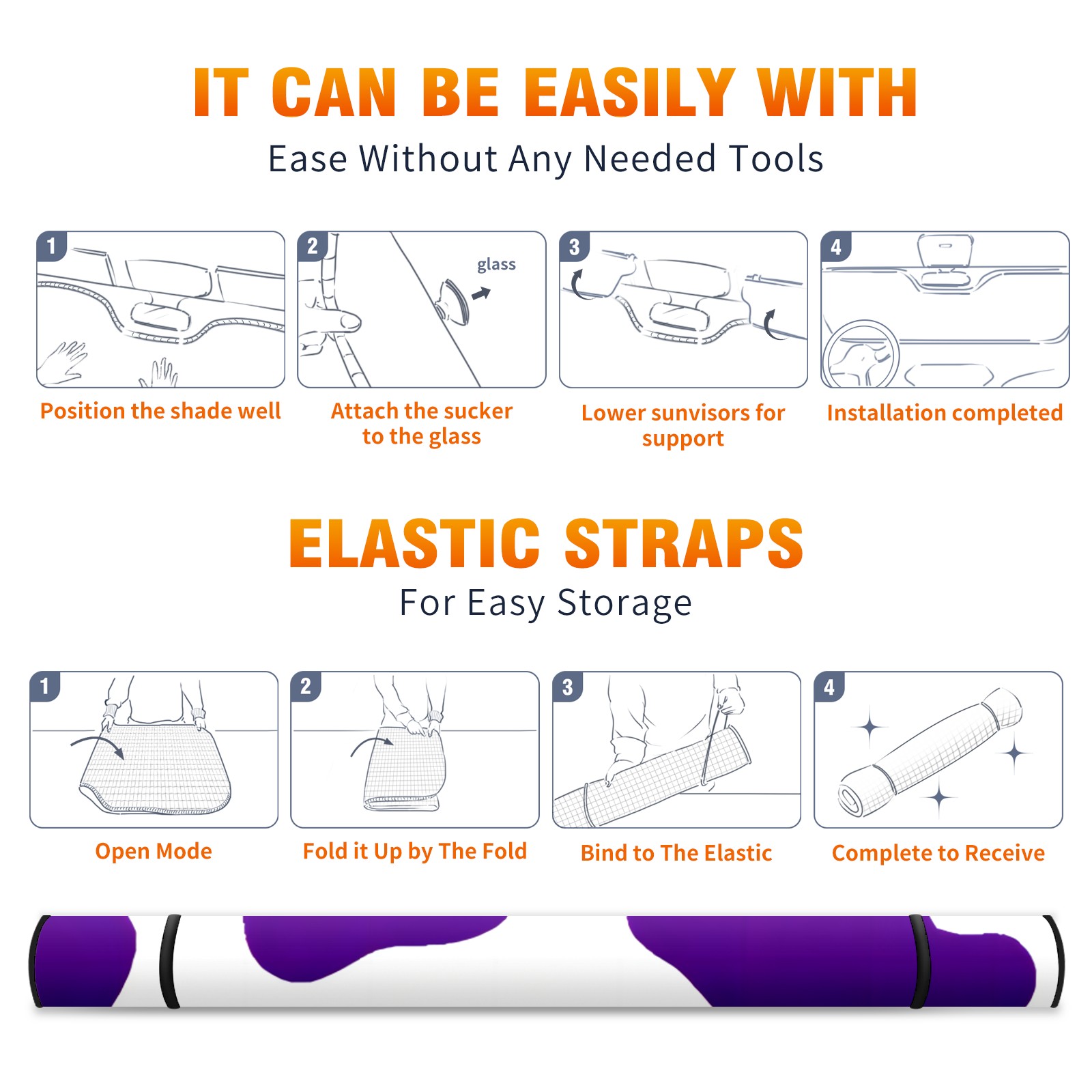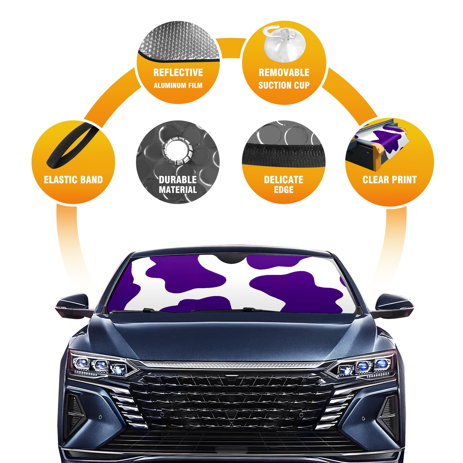 Car Windshield Sun Shade For Front Window Purple Cow Texture Foldable Vehicle Windshield Car Sun Visor Covers Automotive Window Protector Car Camping Privacy Sun Blocker