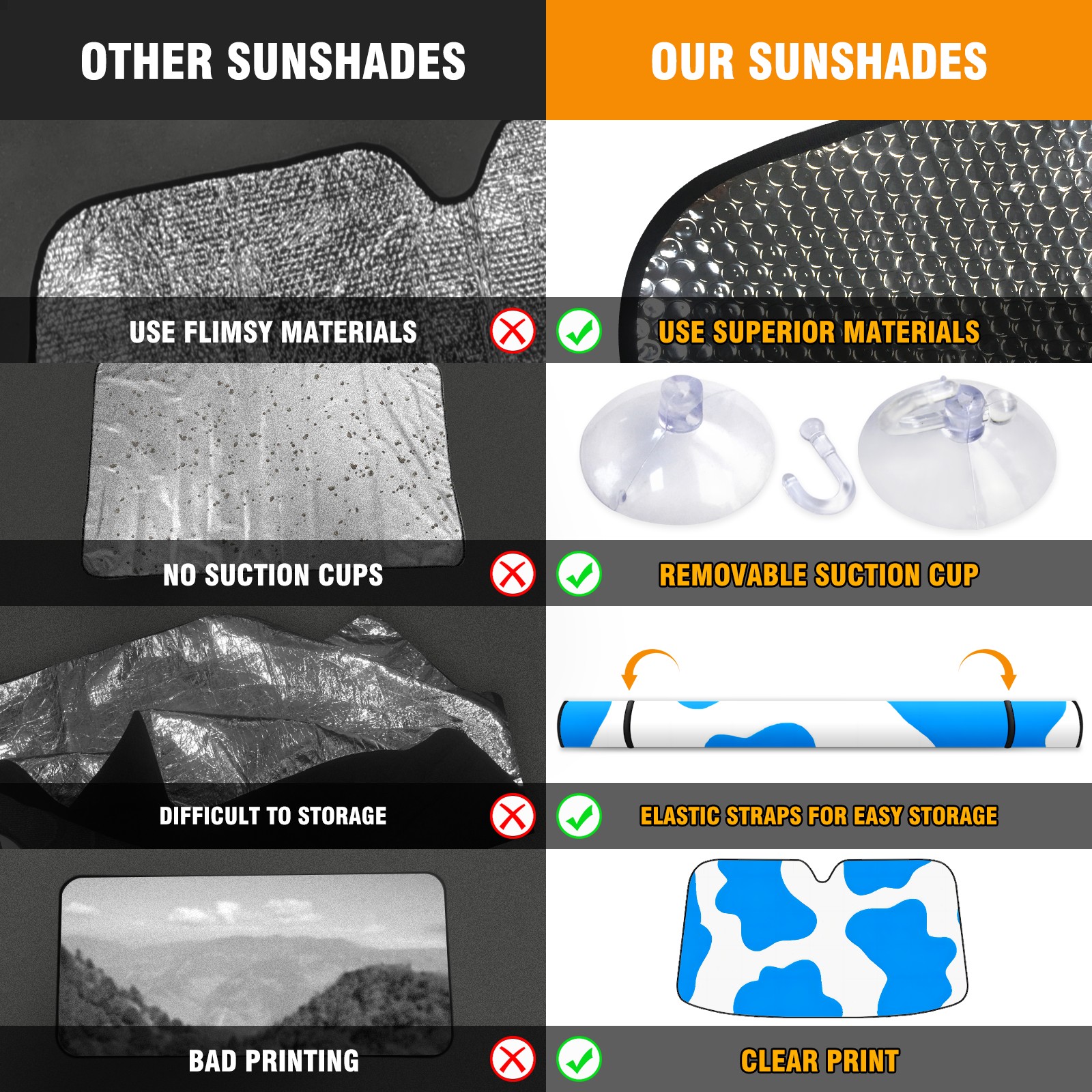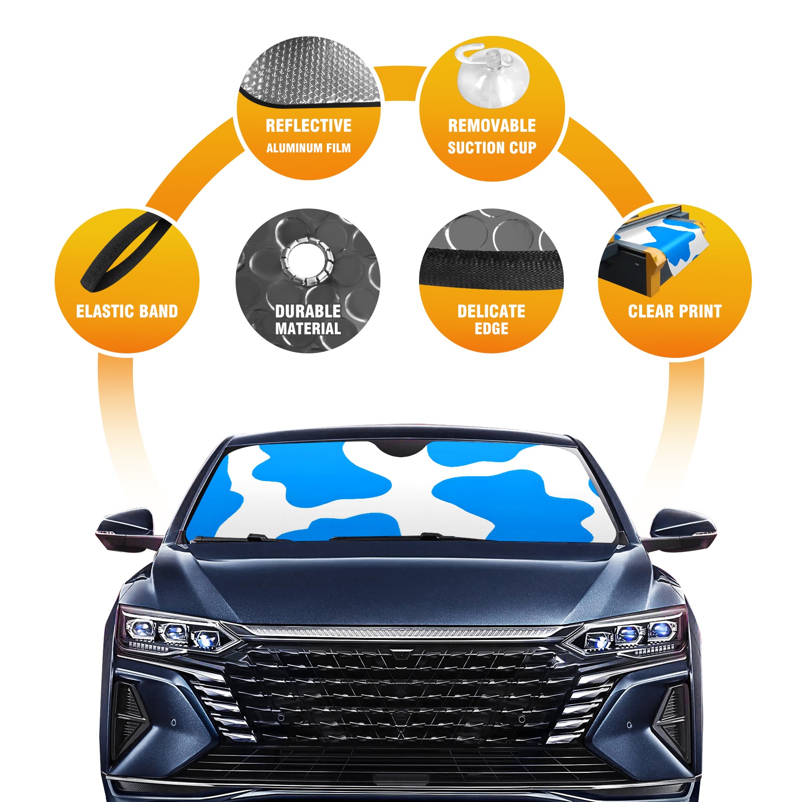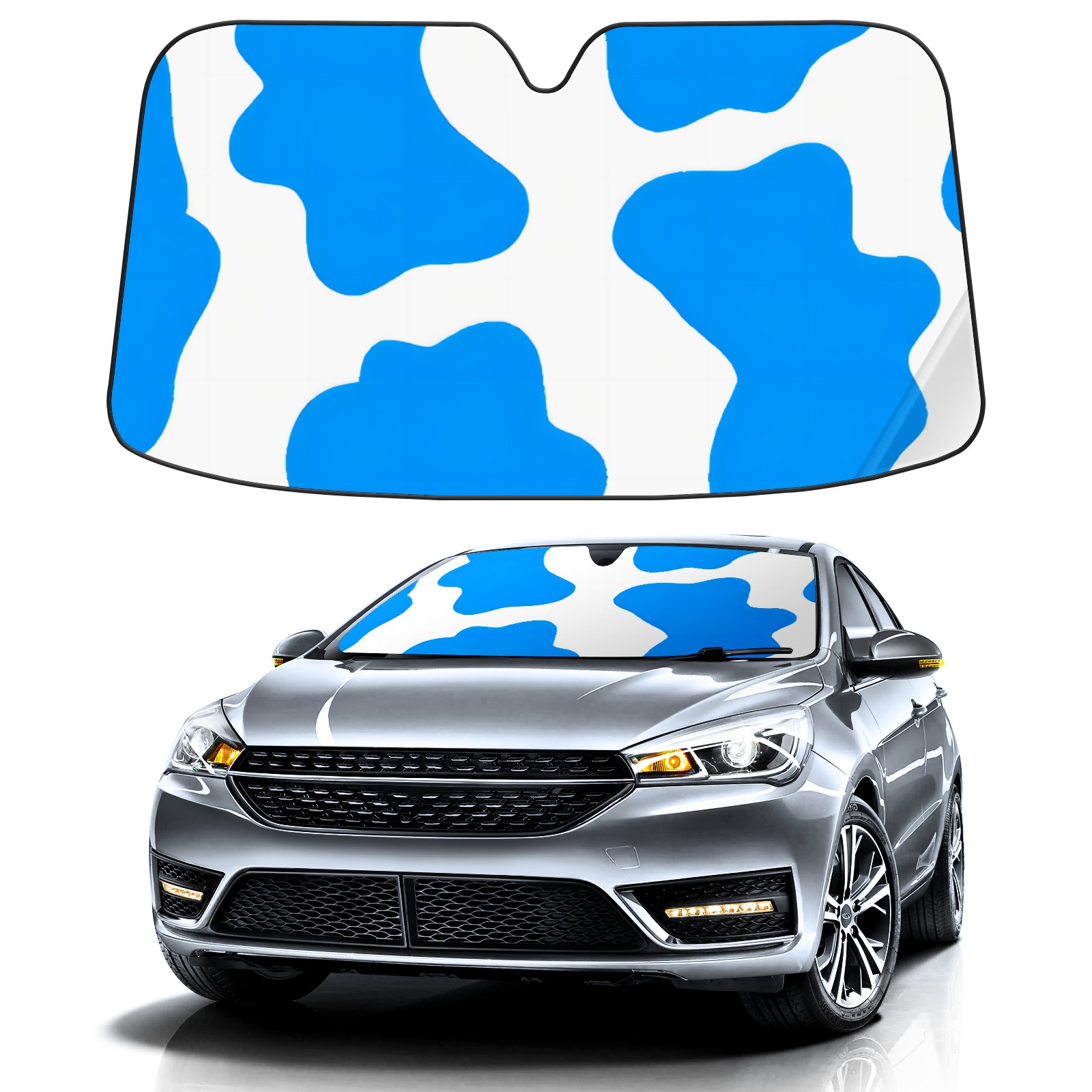 Car Windshield Sun Shade For Front Window Blue Cow Texture Foldable Vehicle Windshield Car Sun Visor Covers Automotive Window Protector Car Camping Privacy Sun Blocker