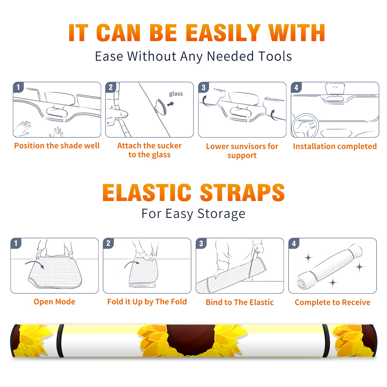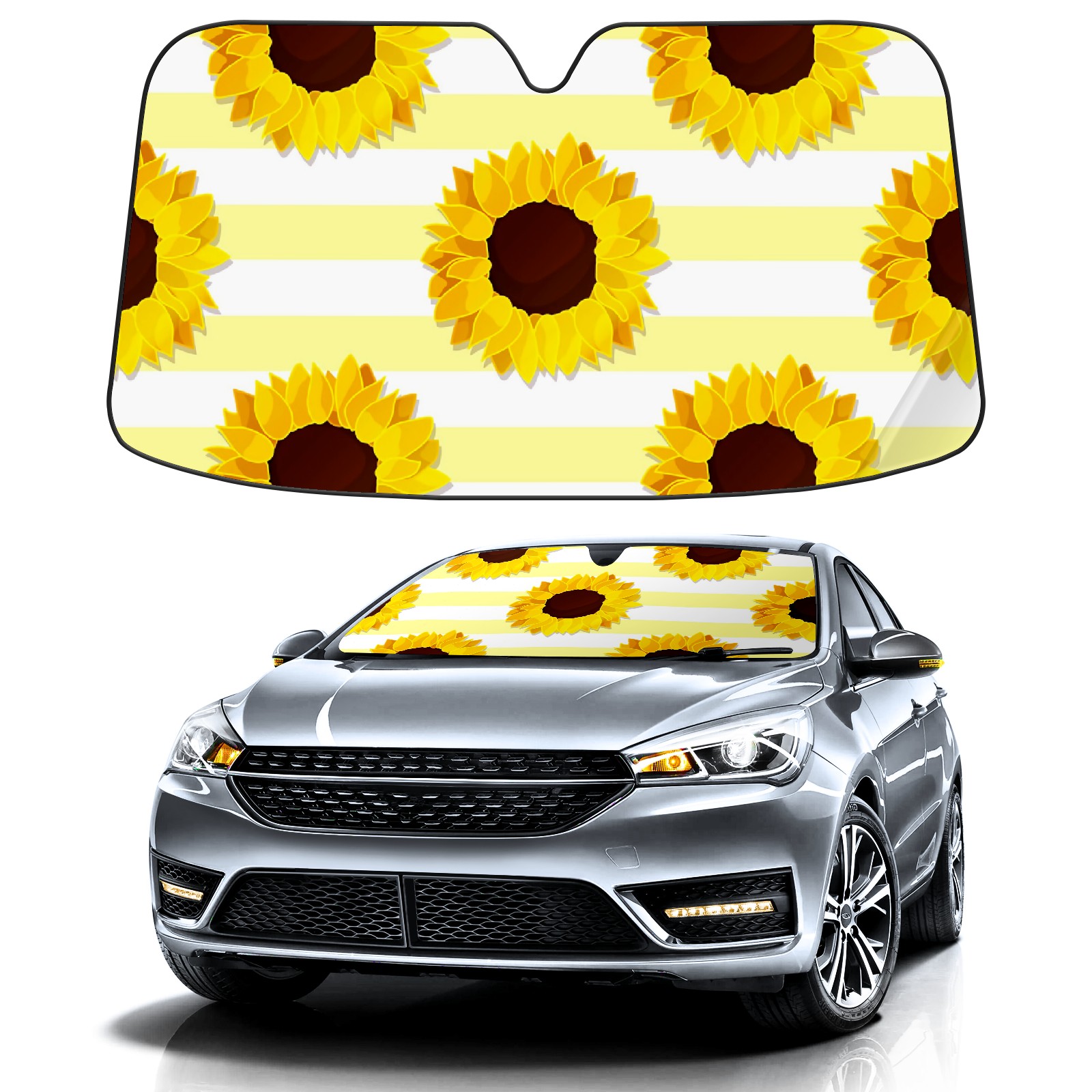 Car Windshield Sun Shade For Front Window Line Sunflower Foldable Vehicle Windshield Car Sun Visor Covers Automotive Window Protector Car Camping Privacy Sun Blocker