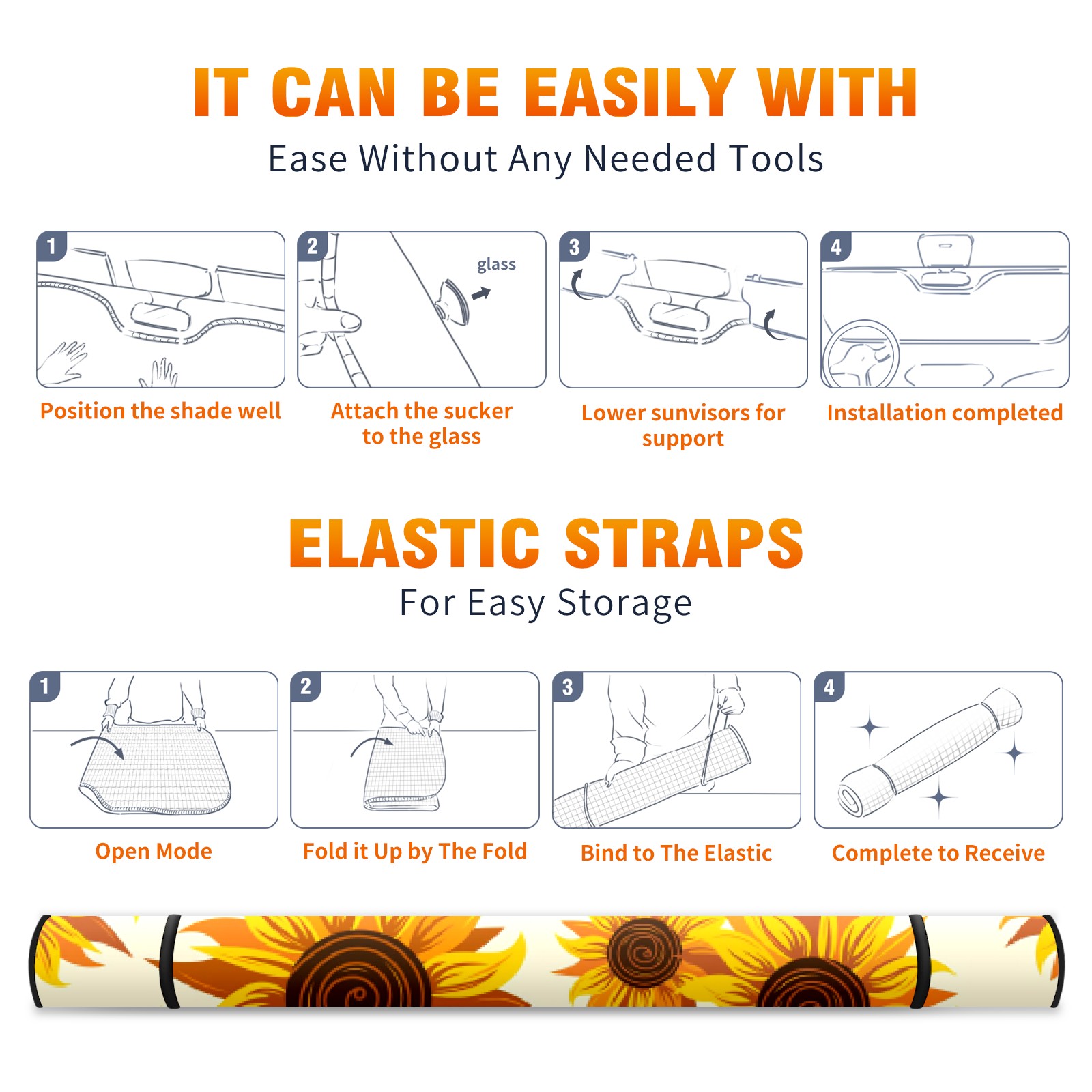 Car Windshield Sun Shade For Front Window Sunflower Pattern Foldable Vehicle Windshield Car Sun Visor Covers Automotive Window Protector Car Camping Privacy Sun Blocker