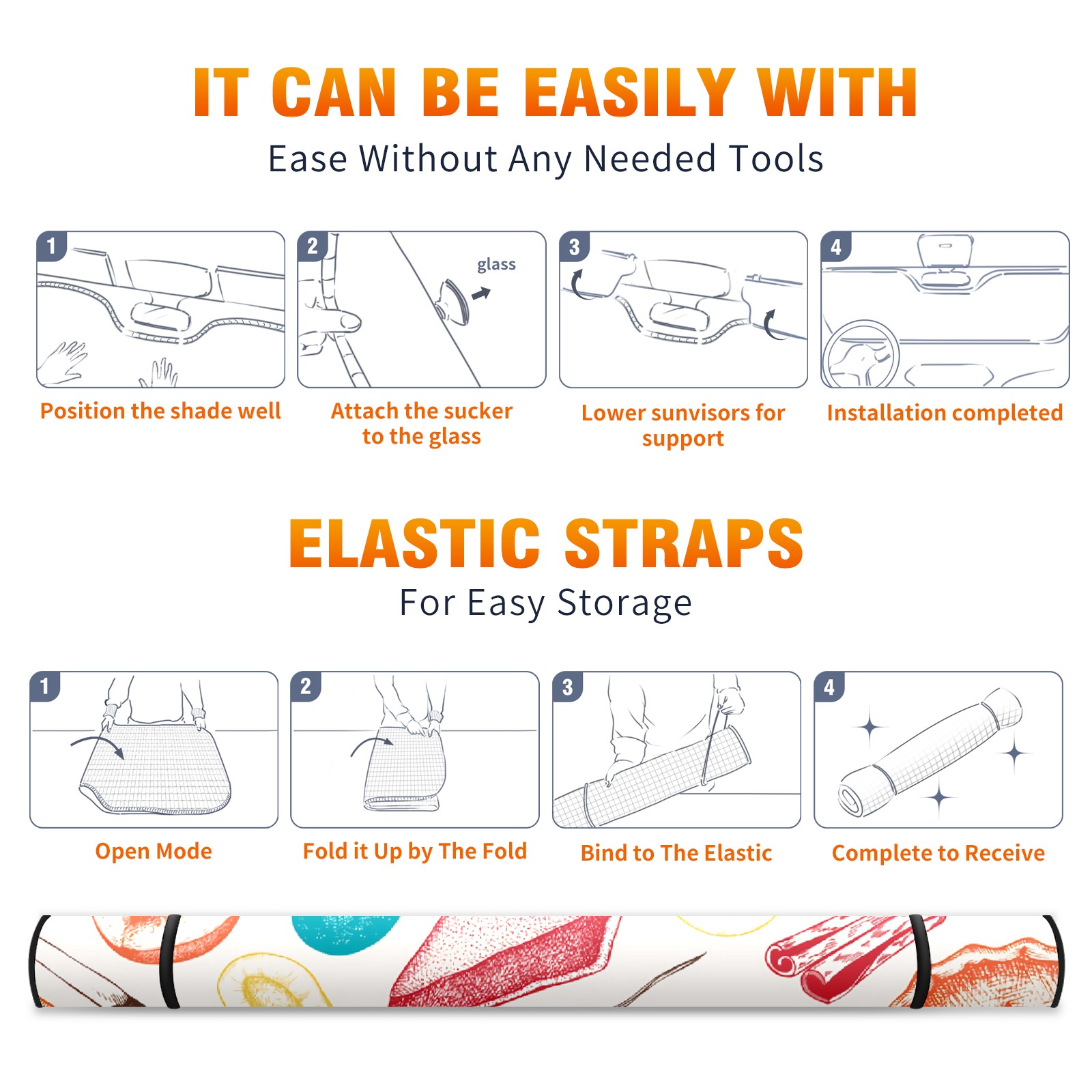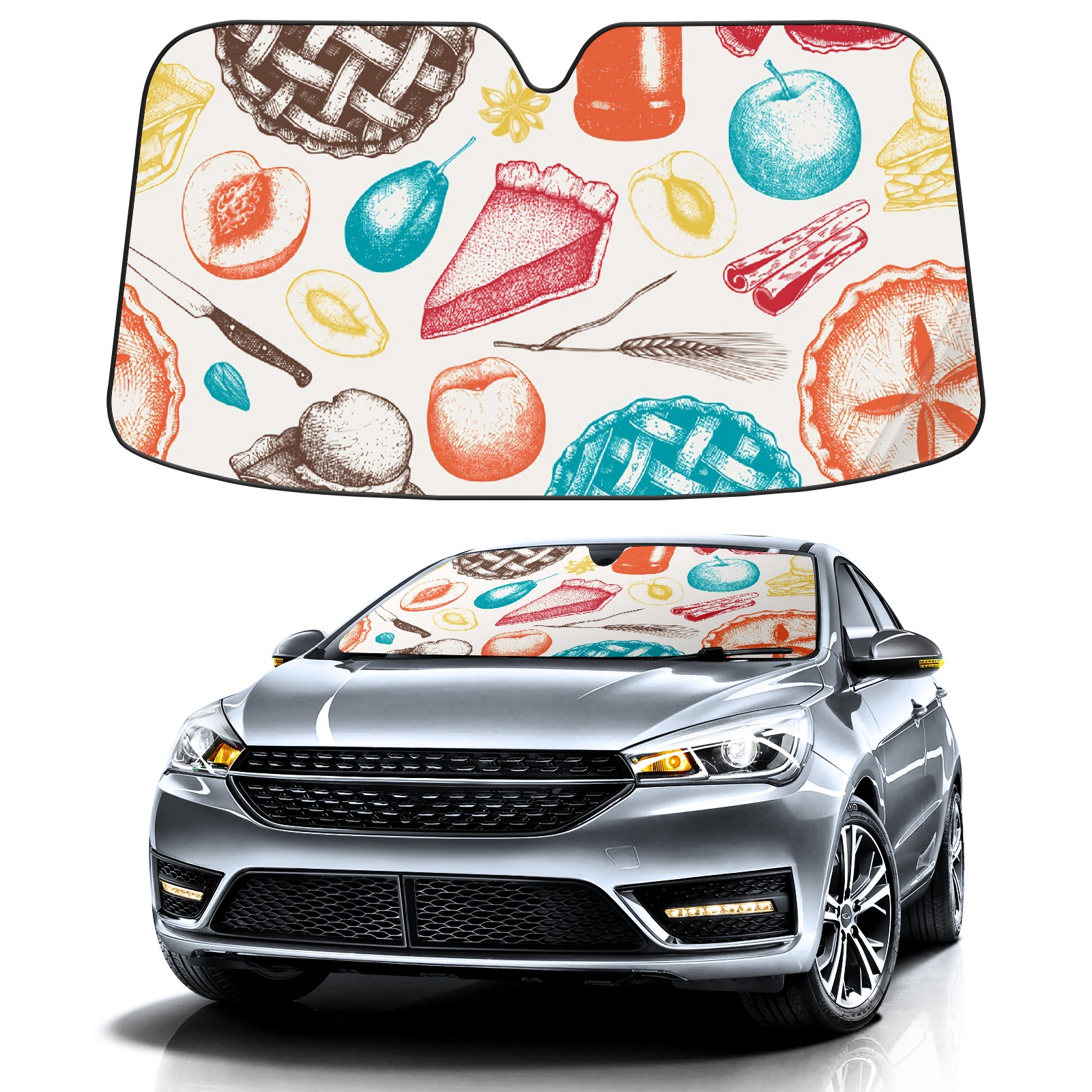 Car Windshield Sun Shade For Front Window Vintage Baking Pattern Foldable Vehicle Windshield Car Sun Visor Covers Automotive Window Protector Car Camping Privacy Sun Blocker